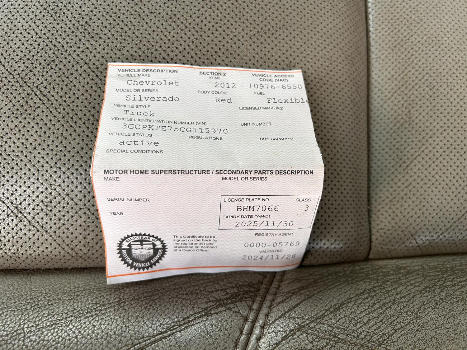 Copy of registration on hand. - Sales Rep: