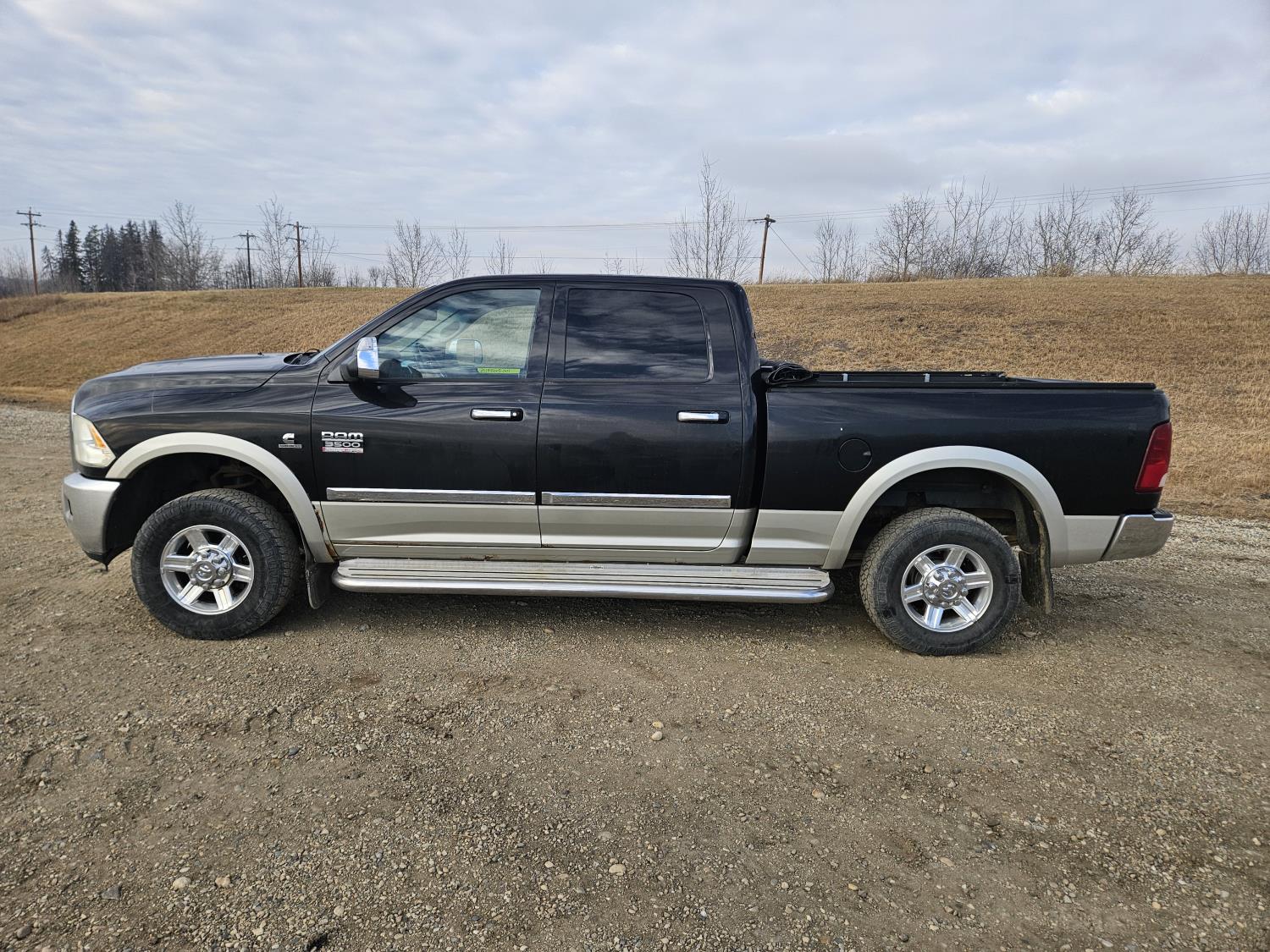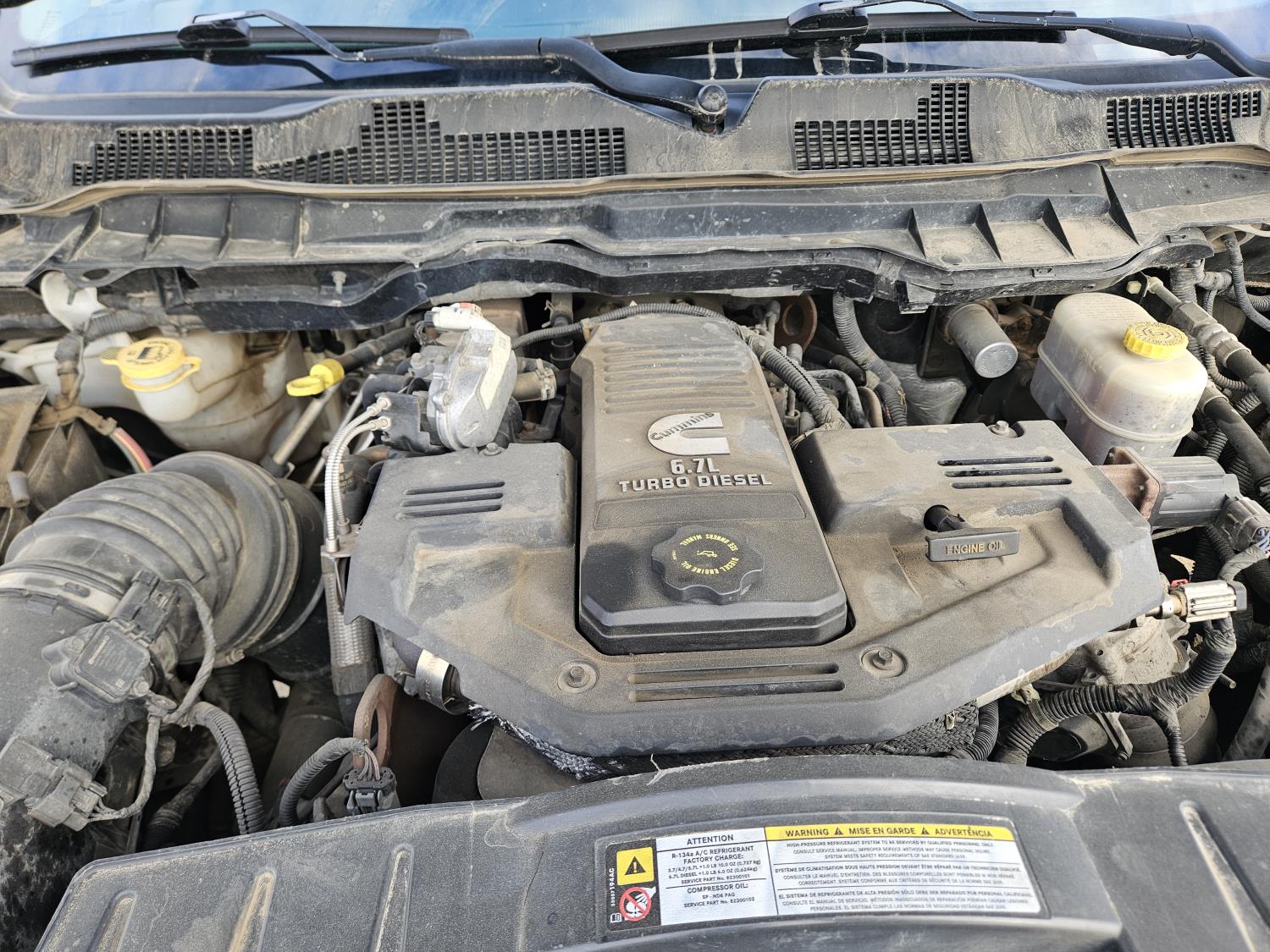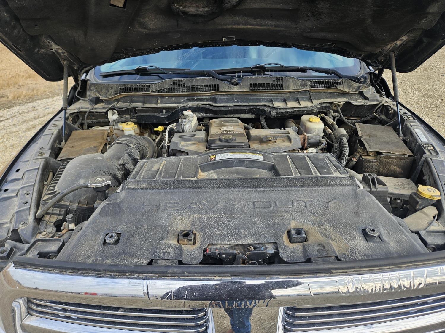 6.7 L, diesel, automatic transmission, leather, P/W, P/L, A/C, sunroof, heated and cooled seats, running boards, 6.5 ft box, soft roll up tonneau cover, g/n ball hitch, red exclamation mark check engine light on, 265/70R17 tires