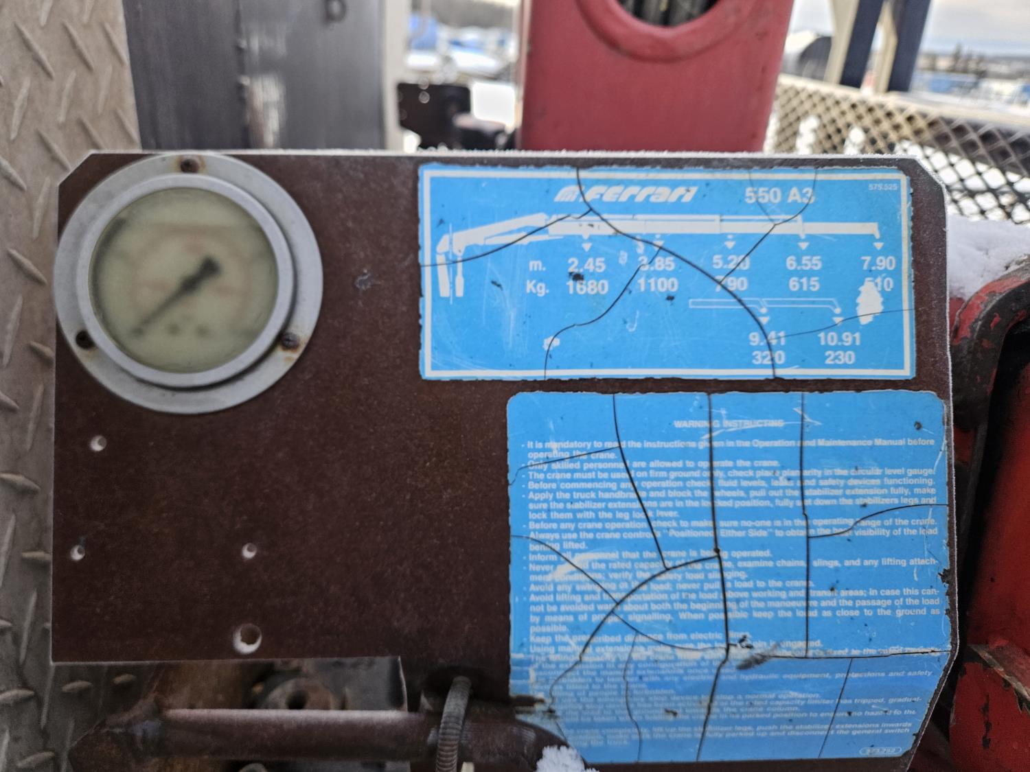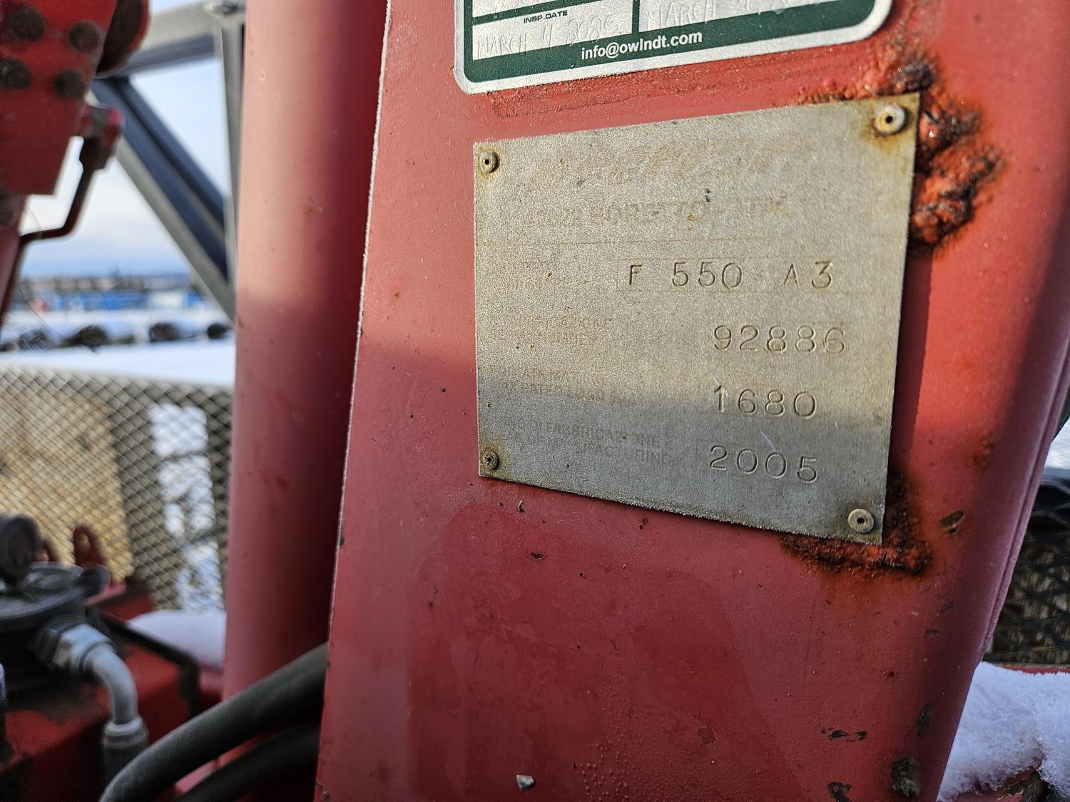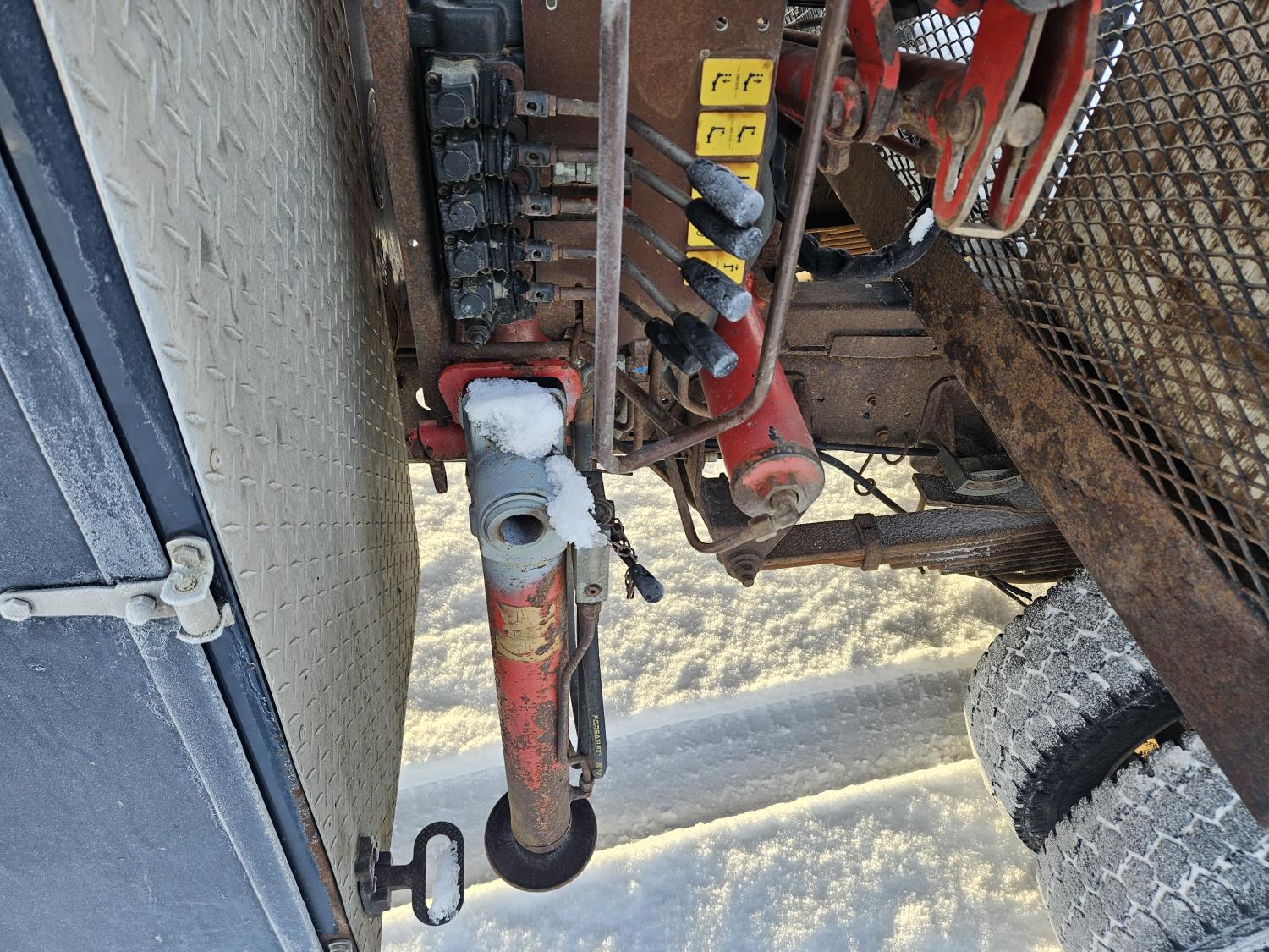 Cummins 6.7 L 6 cylinder diesel engine, engine brake, electric engine block heater, positive air shutoff, automatic transmission, A/C, P/W, P/L, cruise control, stereo, running boards, 94 inch x 7 ft deck, Ferrari 550 4 section 35 ft knuckle crane, outriggers, current inspection good until March 2026, spring suspension, 7,000 lb front axle, 13,500 lb rear axles, work orders provided for reman transmission installed at appx 241,085 km , 225/70R19.5 tires