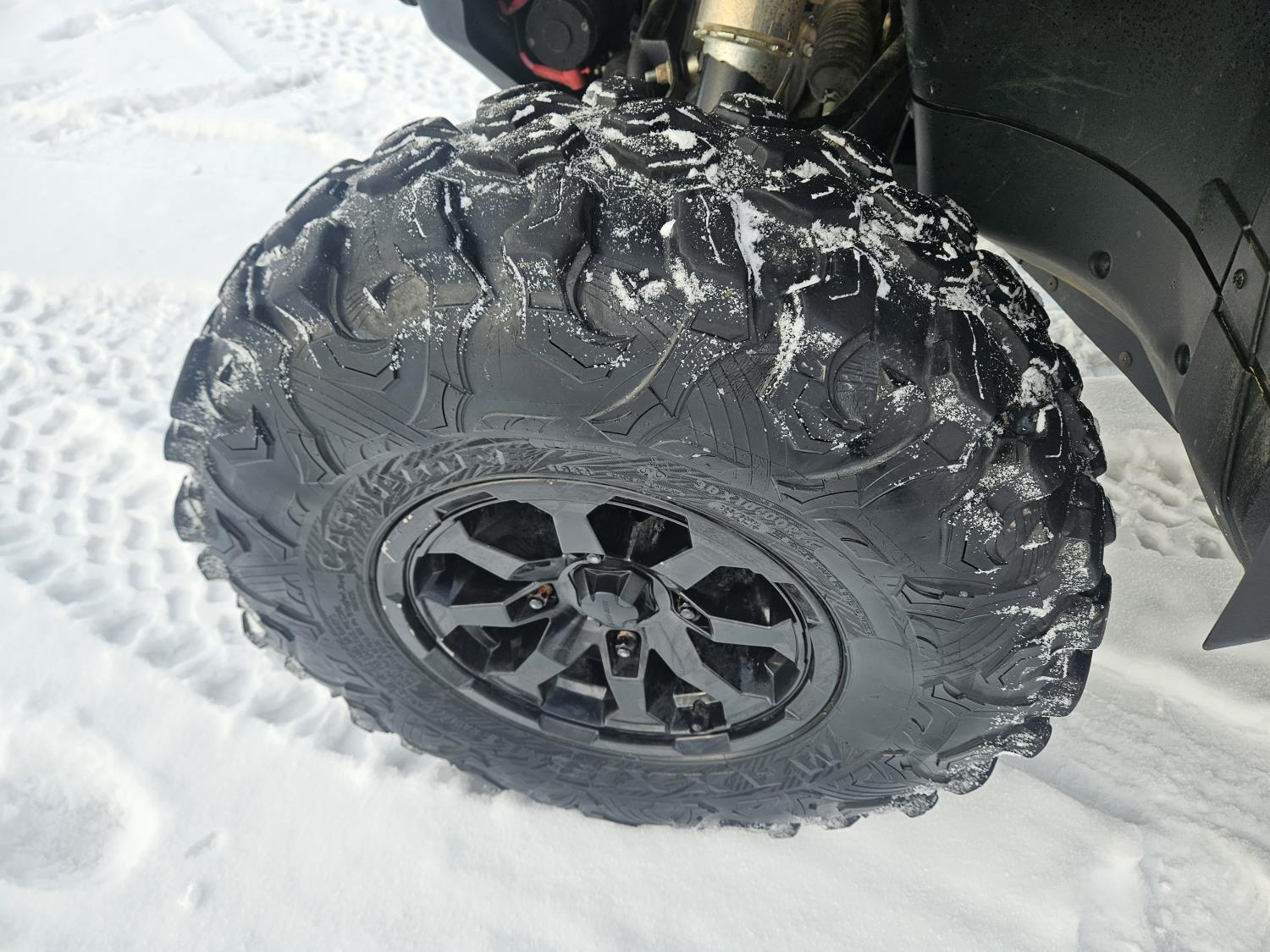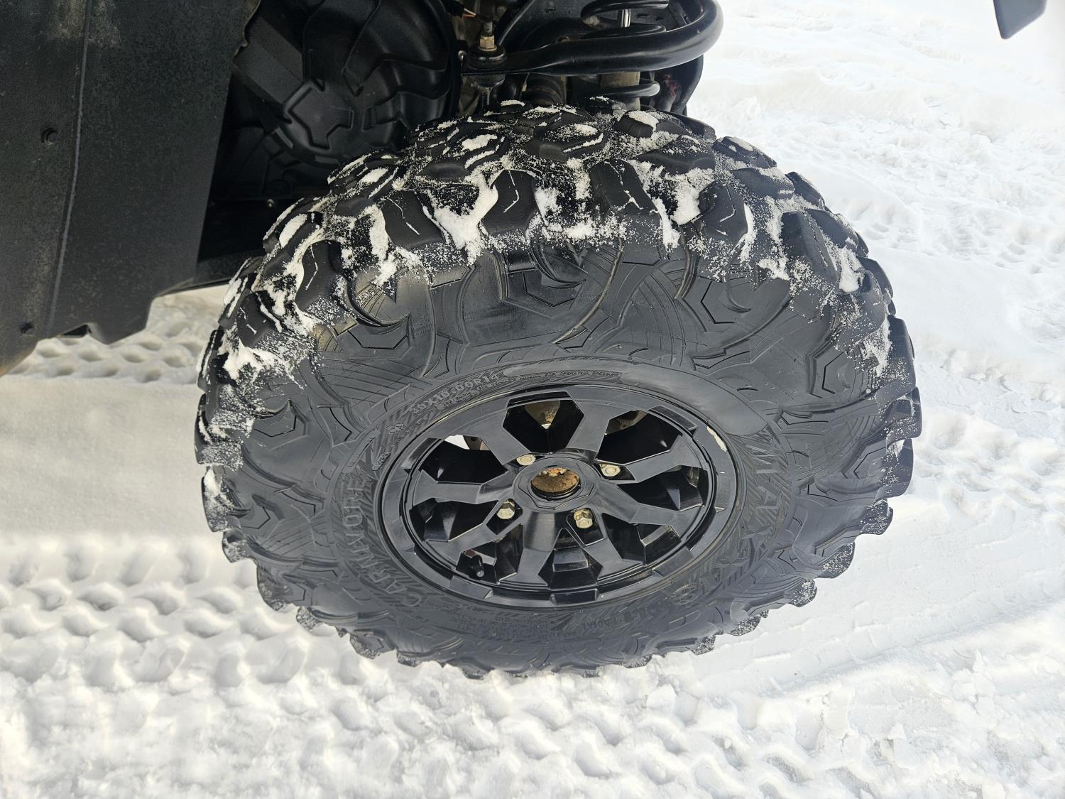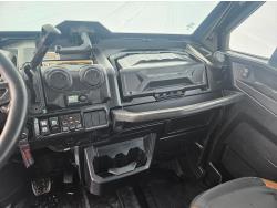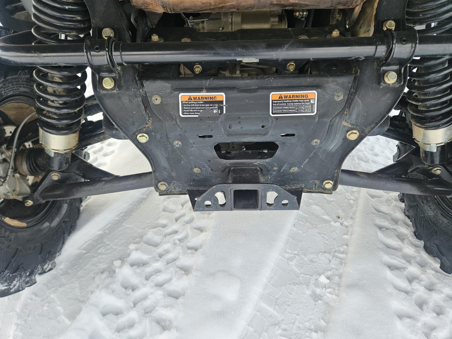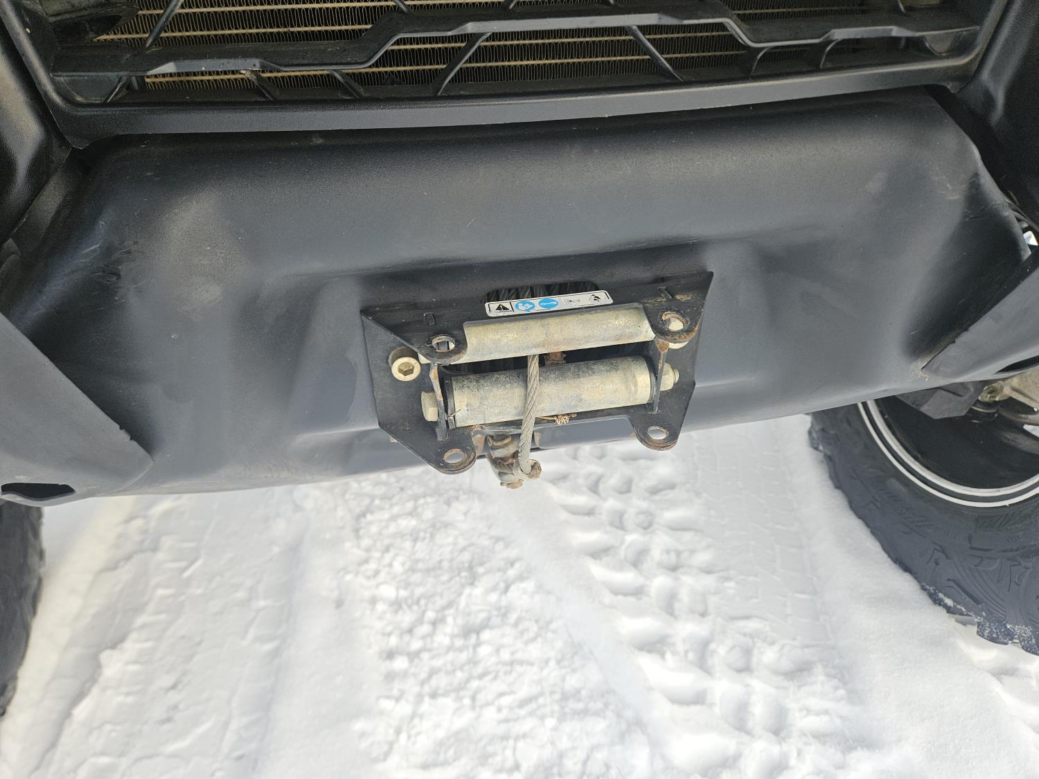 1000 cc fuel injected water cooled engine, automatic transmission, Hi/Lo range, reverse, 4 door enclosed cab, 6 passengers, heater, windshield, P/W, power steering, front winch, manual dump box, receiver hitch, independent suspension, aluminum wheels, 30X10.00R14 tires