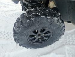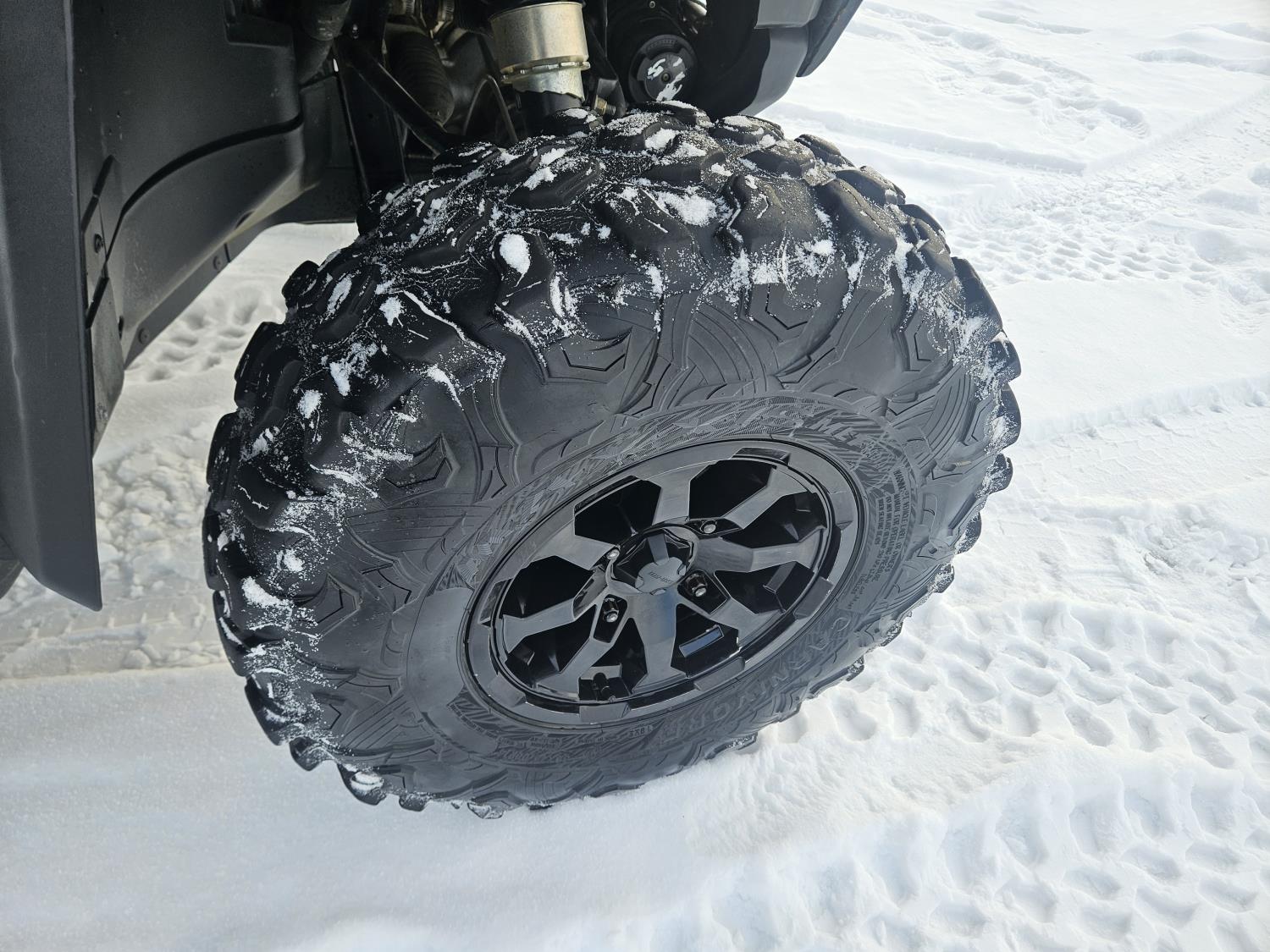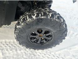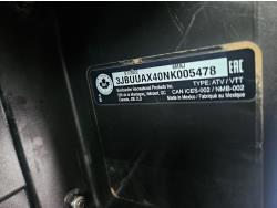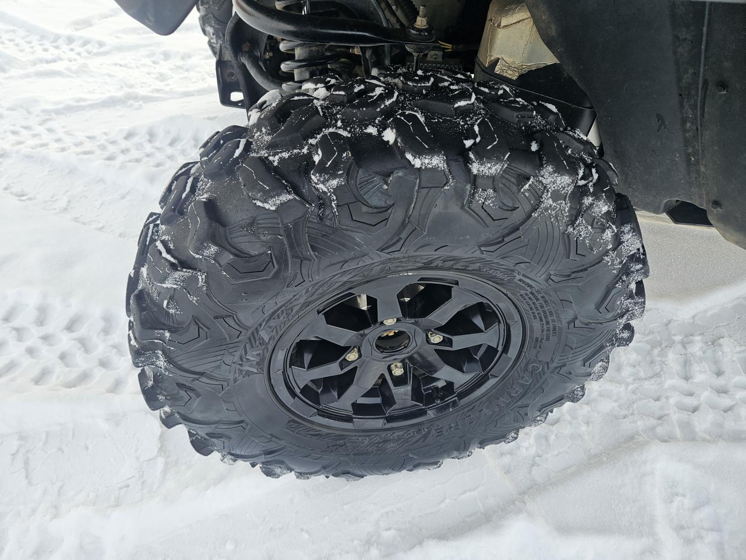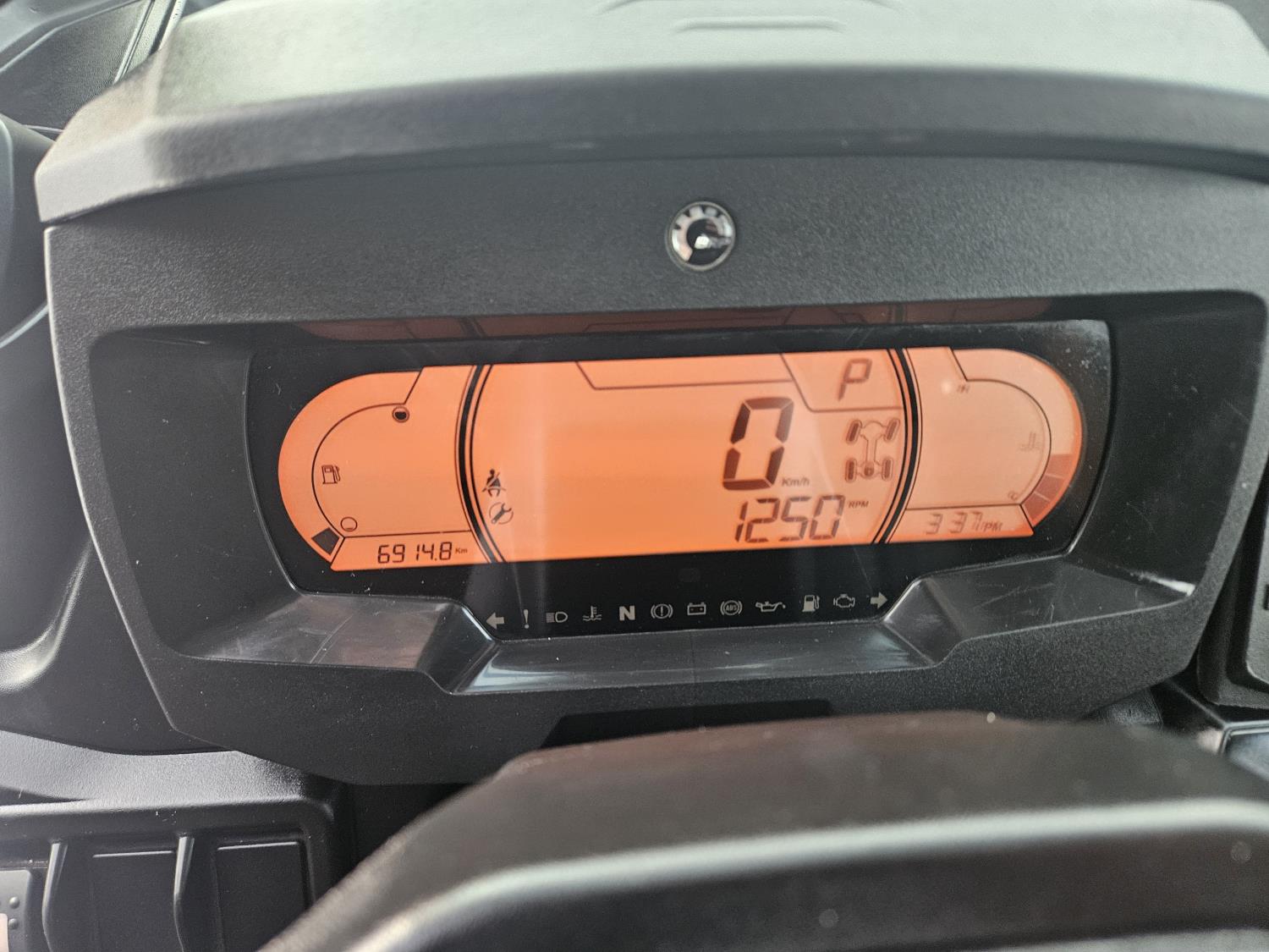1000 cc fuel injected water cooled engine, automatic transmission, Hi/Lo range, reverse, 4 door enclosed cab, 6 passengers, heater, windshield, P/W, power steering, front winch, manual dump box, receiver hitch, independent suspension, aluminum wheels, 30X10.00R14 tires