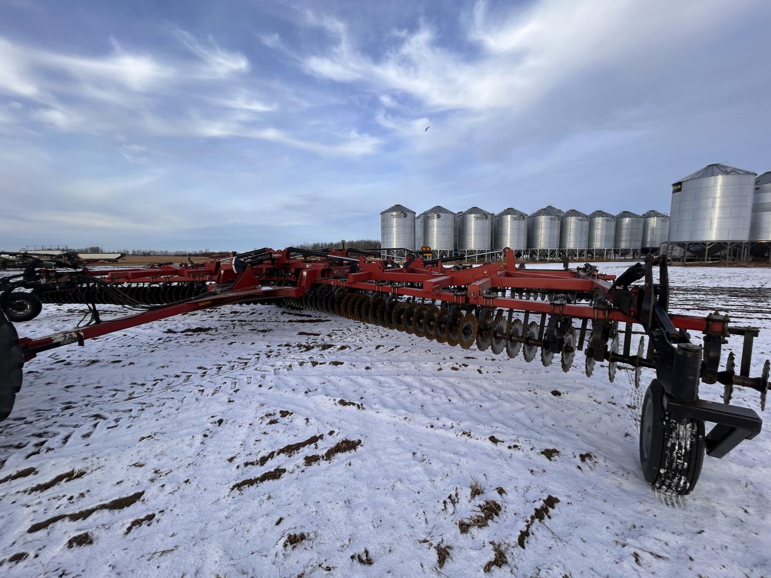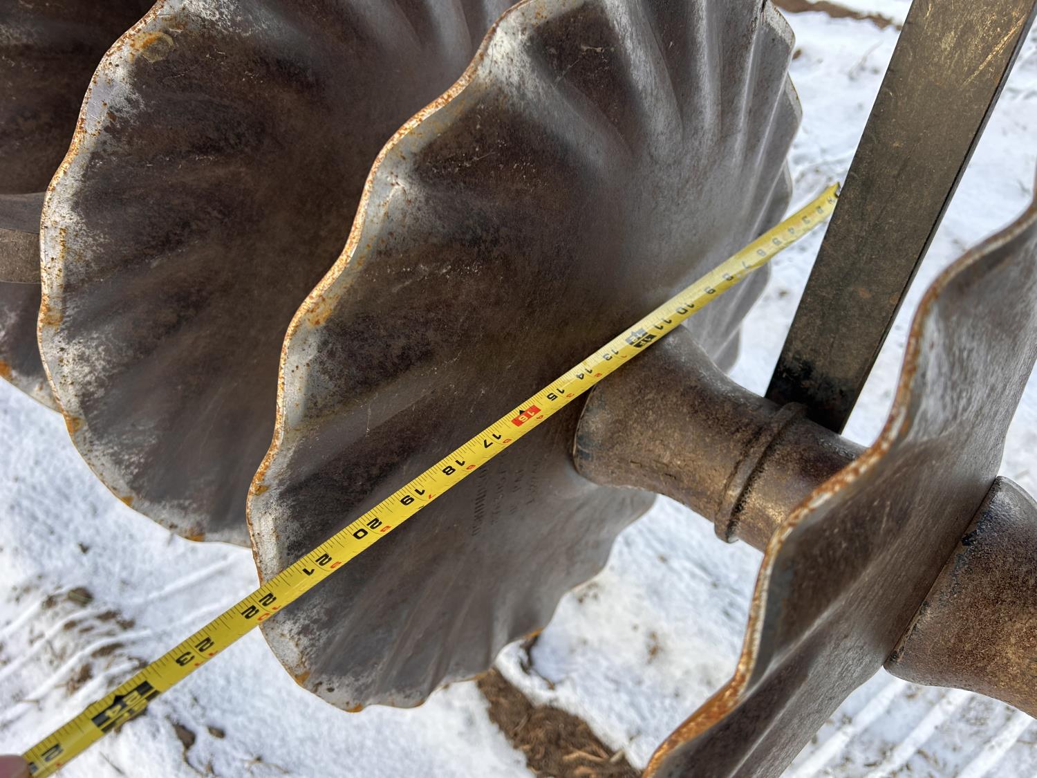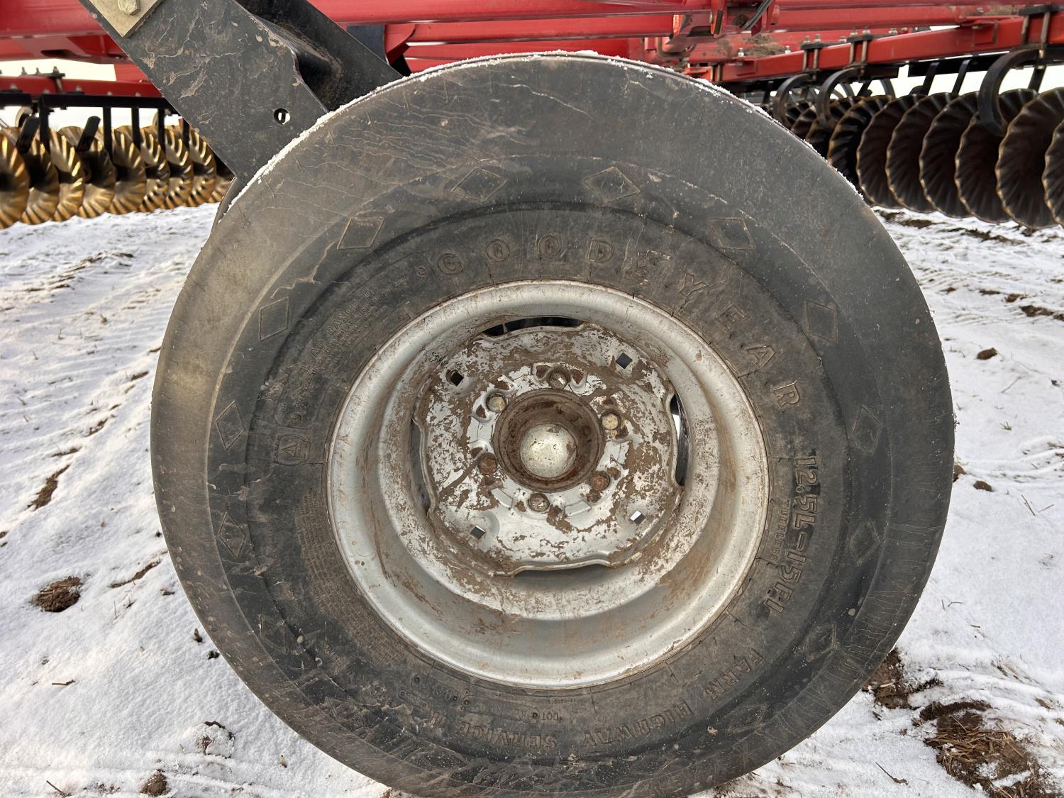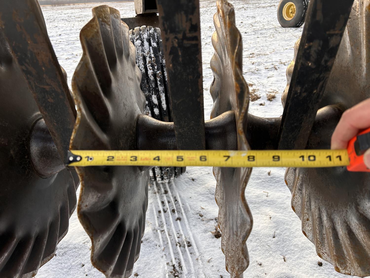 front: 7.5 inch spacing wavy 20.5 inch discs, rear: 7.5 inch spacing wavy 22 inch discs, floating hitch, hitch leveling, scrapers, roller cage baskets, duals main frame and wings, Baskets are being repaired and will be installed before sale date, more pictures to come., 440/55R18 main frame tires, 12.5L-15 FI wing tires