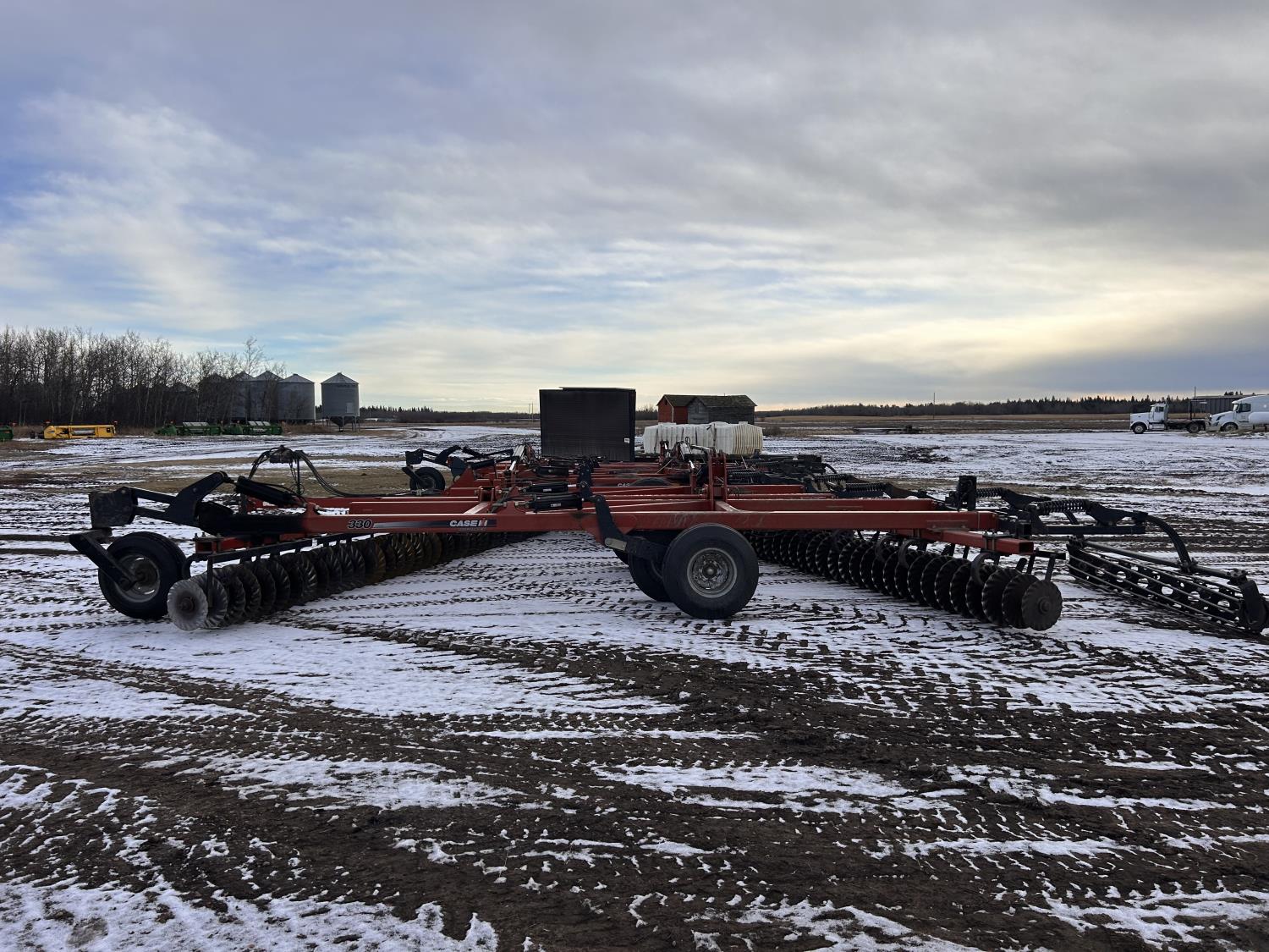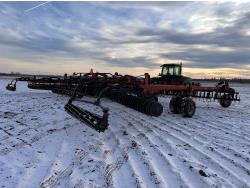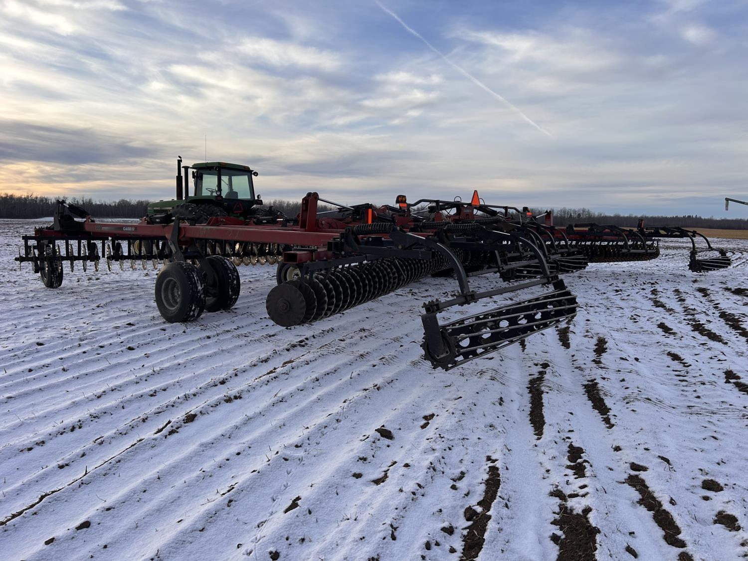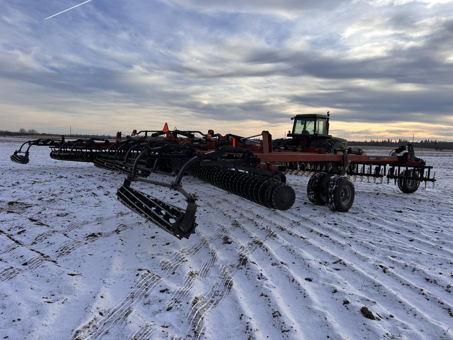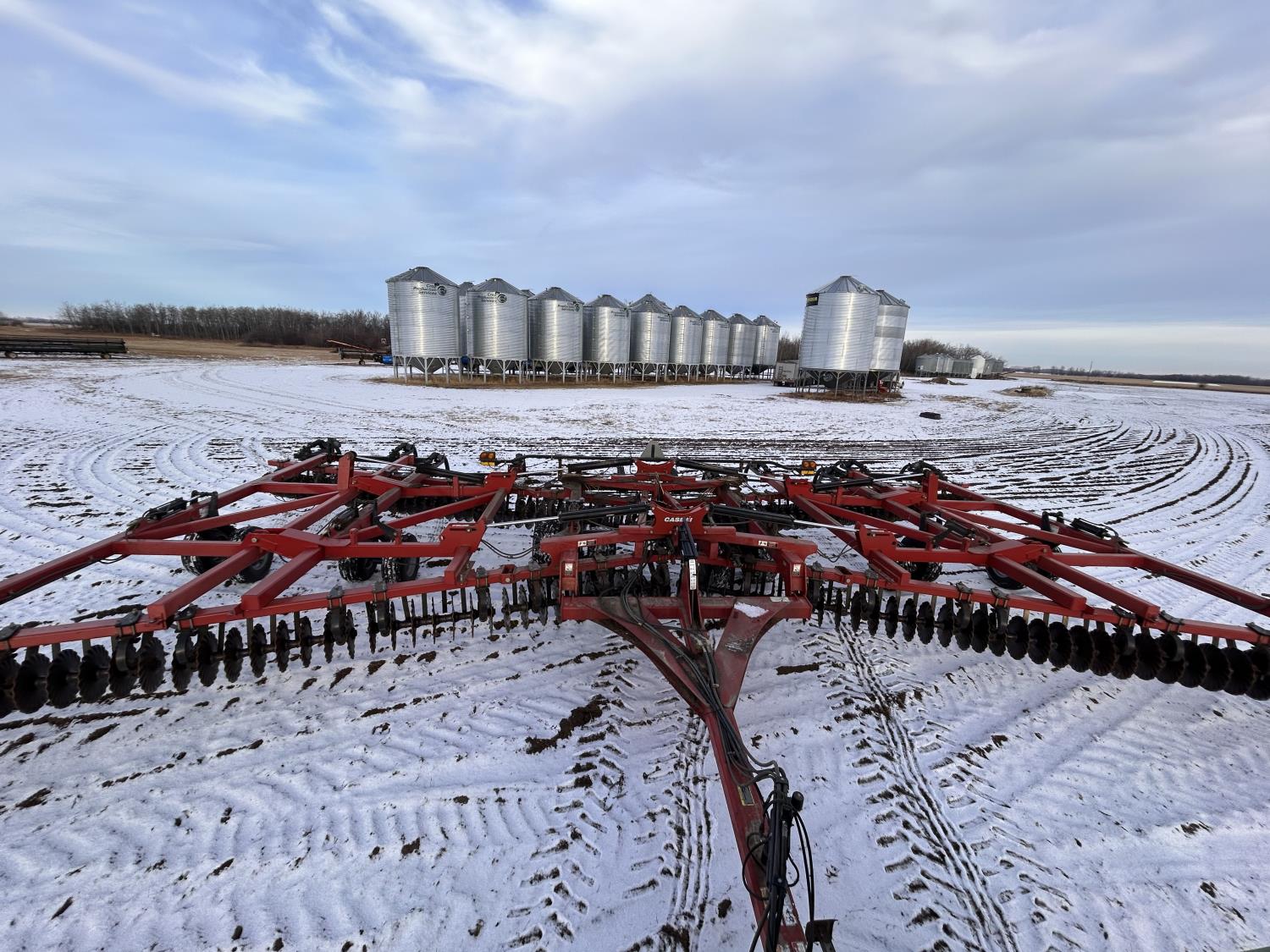 front: 7.5 inch spacing wavy 20.5 inch discs, rear: 7.5 inch spacing wavy 22 inch discs, floating hitch, hitch leveling, scrapers, roller cage baskets, duals main frame and wings, Baskets are being repaired and will be installed before sale date, more pictures to come., 440/55R18 main frame tires, 12.5L-15 FI wing tires