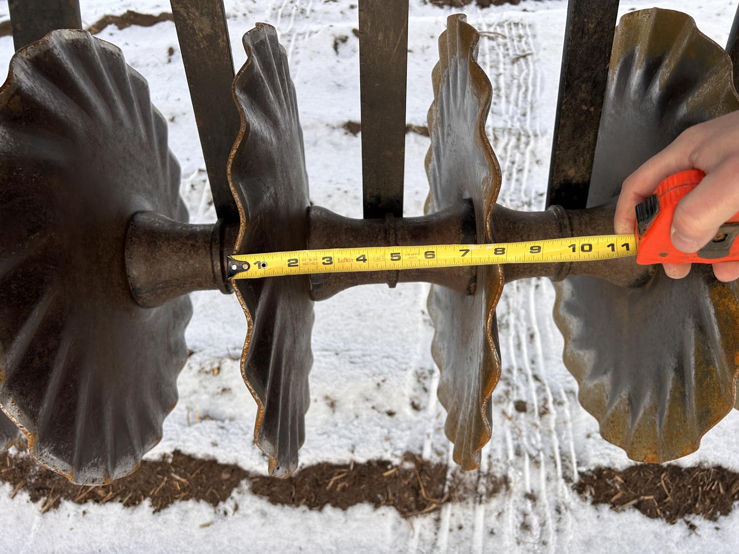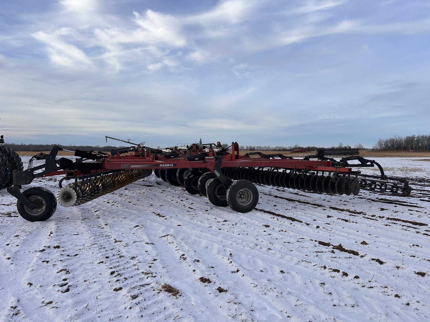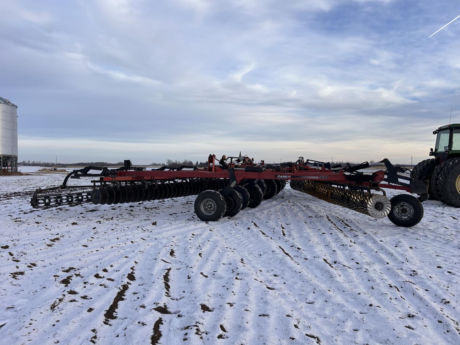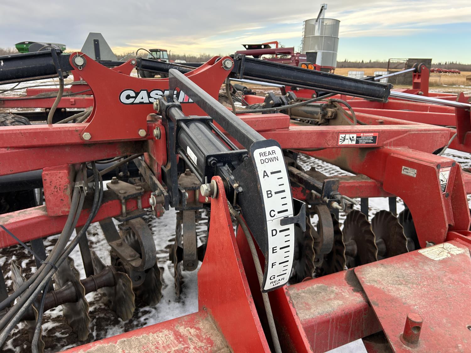 front: 7.5 inch spacing wavy 20.5 inch discs, rear: 7.5 inch spacing wavy 22 inch discs, floating hitch, hitch leveling, scrapers, roller cage baskets, duals main frame and wings, Baskets are being repaired and will be installed before sale date, more pictures to come., 440/55R18 main frame tires, 12.5L-15 FI wing tires