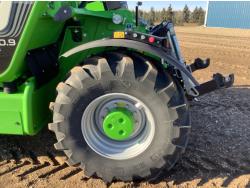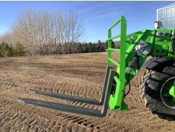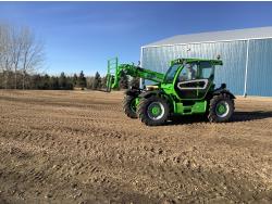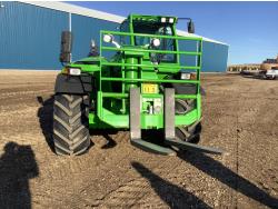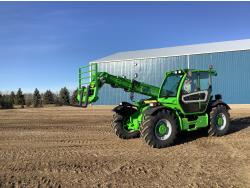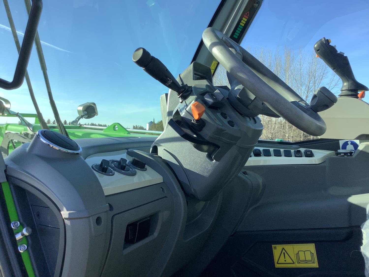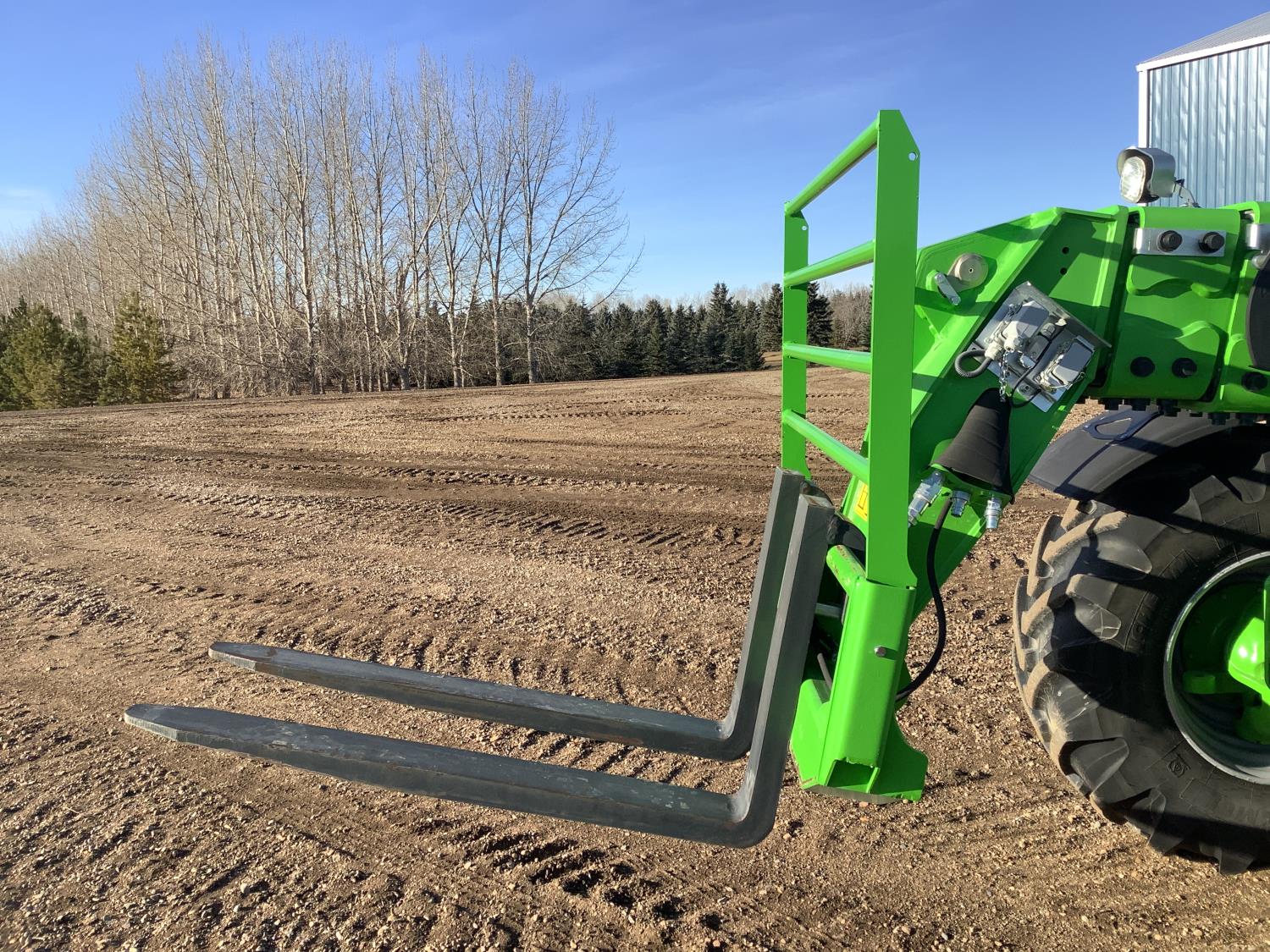 28 ft 10 inch reach, Enclosed cab, A/C, CVT transmission, left hand reverser, pallet forks, 4 rear auxiliary hydraulics, 3 Pt hitch, rear 540/1000 PTO, 500/70R24 tires