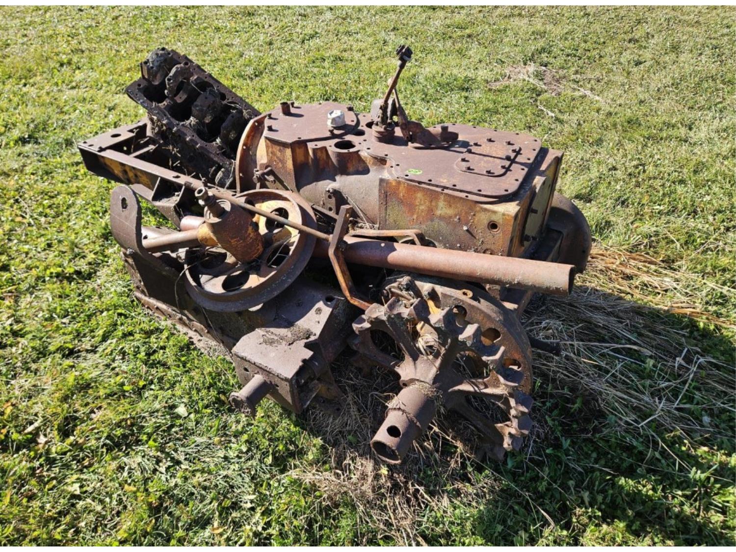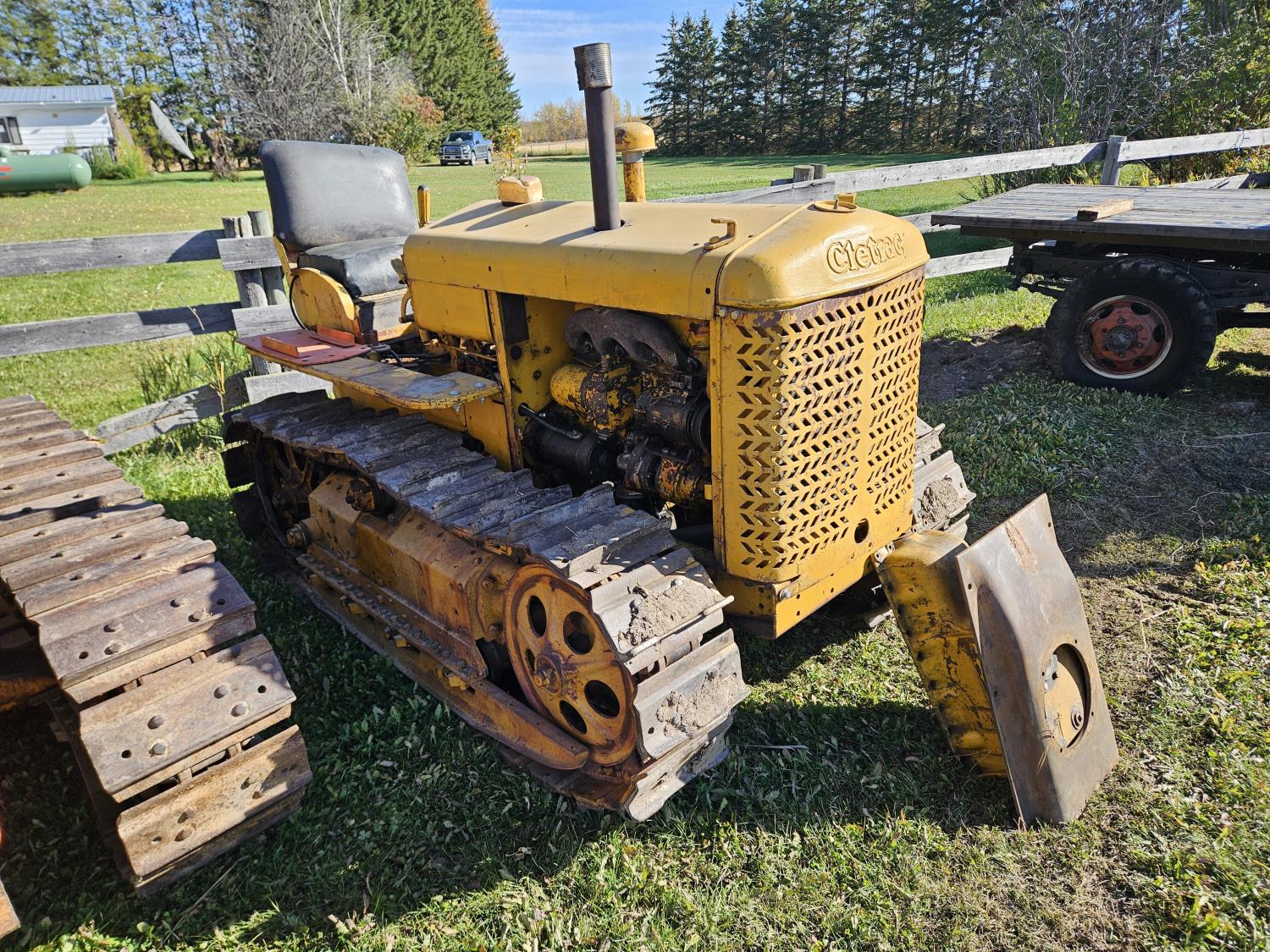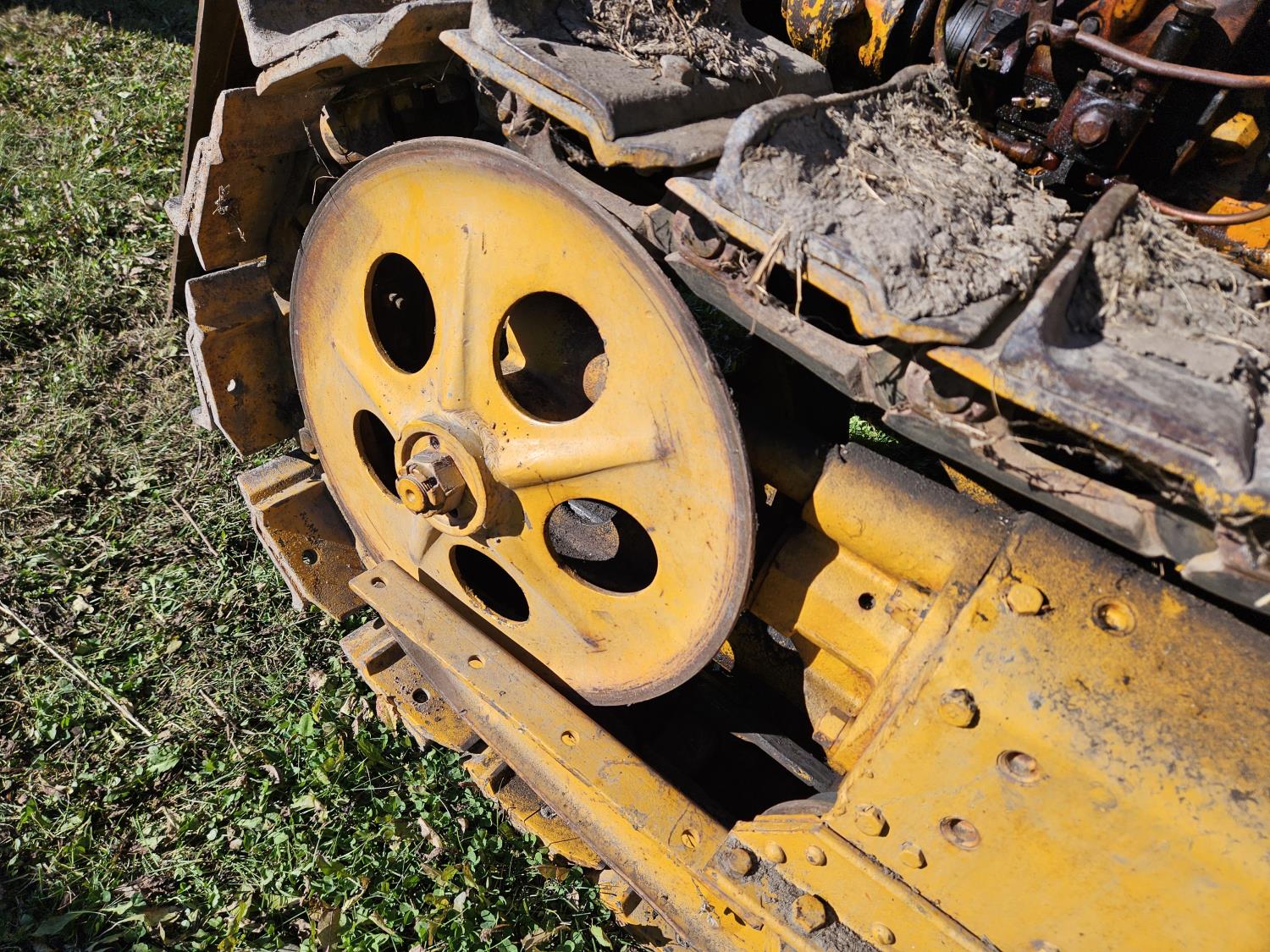 Open station, 4 cylinder Hercules diesel engine, 3 speed manual transmission, flywheel, was stored indoors, comes with additional parts, 12 inch track pads, single grousers