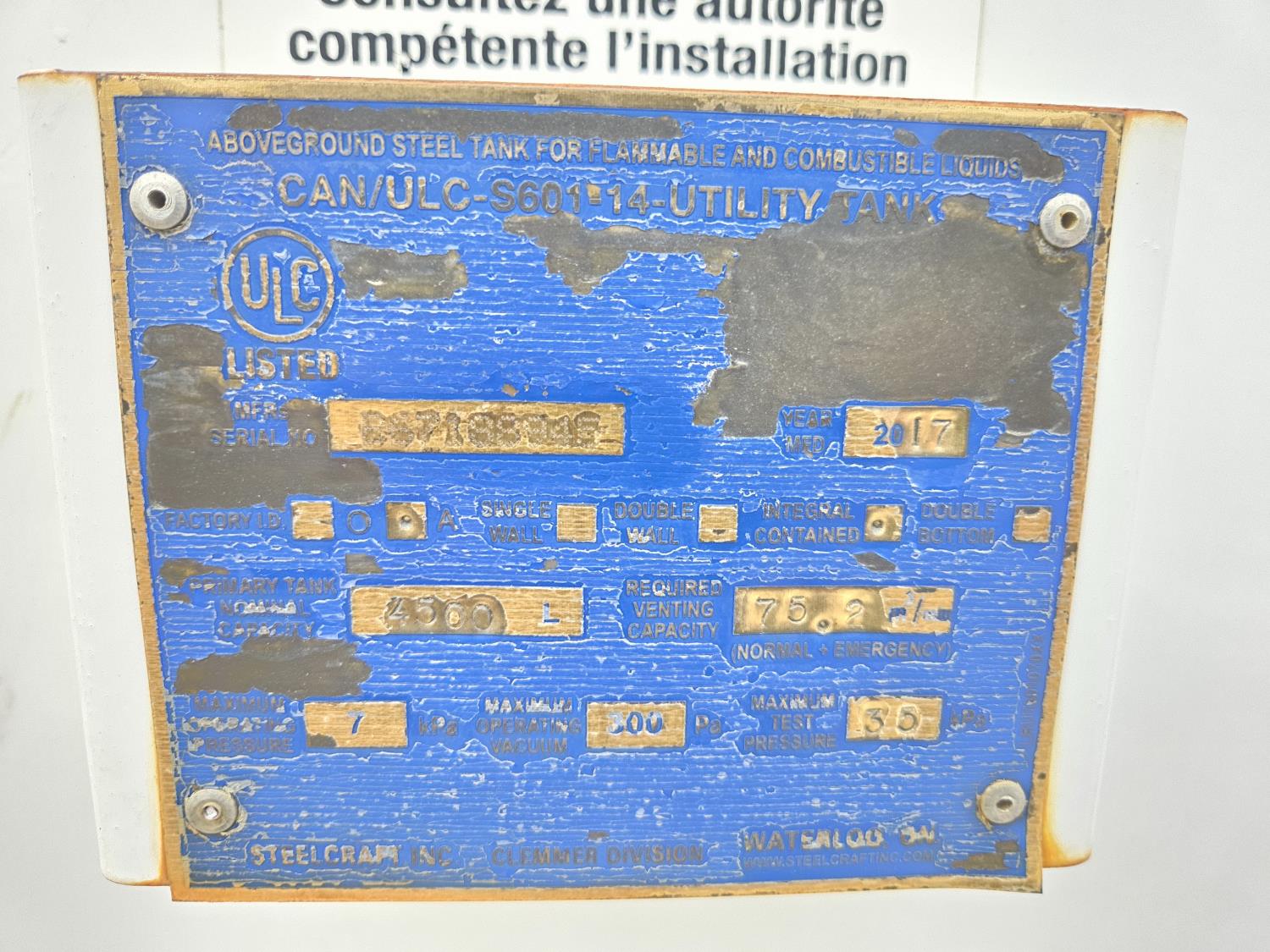 70 2017 Steelcraft 4500L Double Wall Fuel Tank