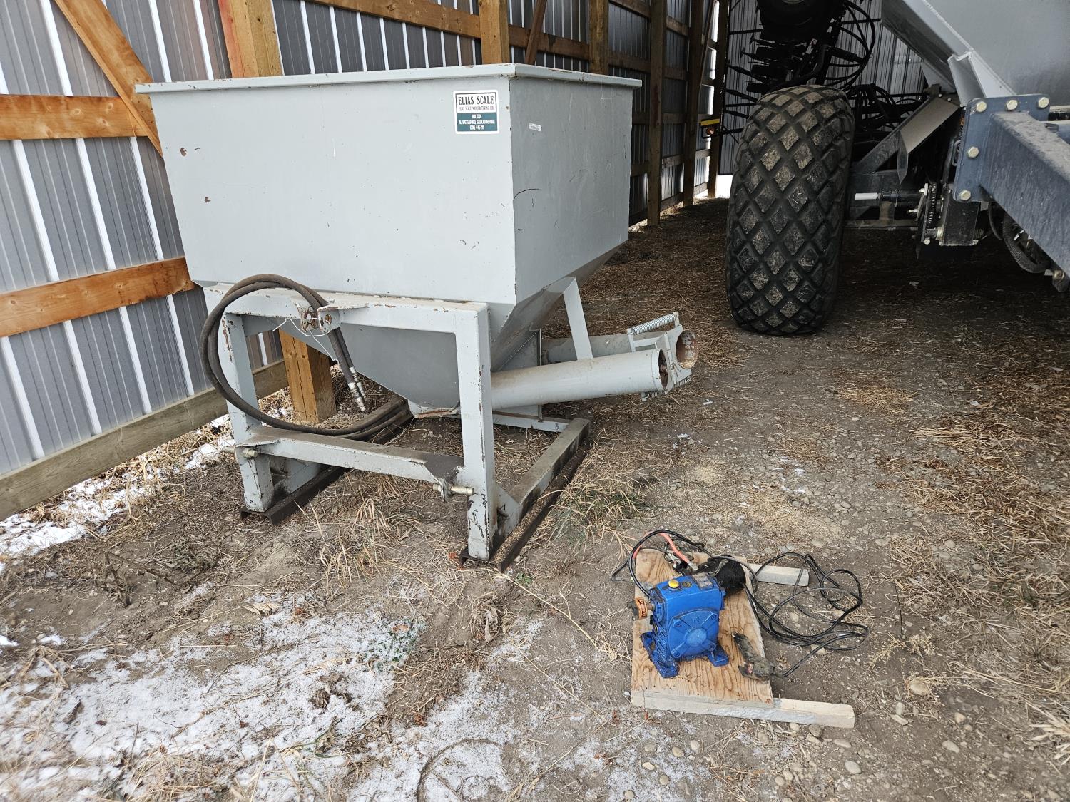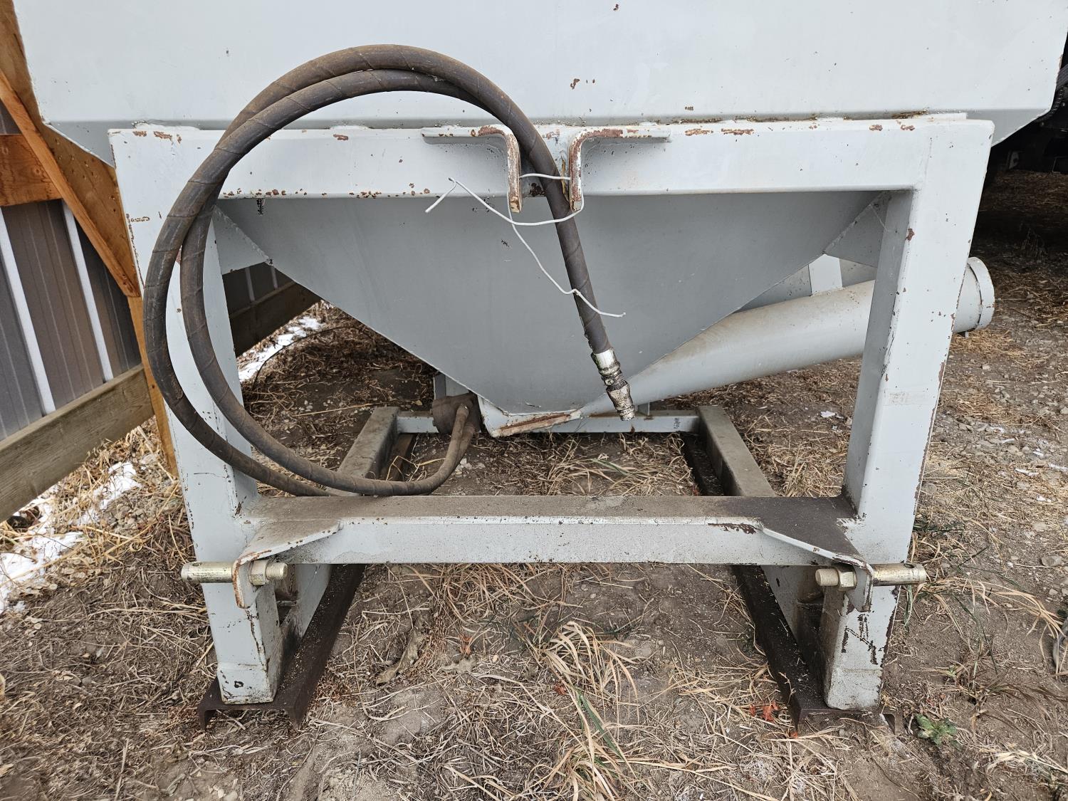 6 inch auger, set up for Front end loader, 3 PT or skid steer, c/w electric over hydraulic with controls for a pick up, is good for unloading grain and cubes. 48 inch x 48 inch.