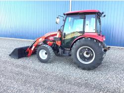 Case IH 360A loader, Q/A, 72 inch bucket, mid mount hydraulic connection, FPT 3 cylinder 54 HP, diesel engine, 43 PTO HP, hydro 3 range transmission, cab, rear differential lock, joystick, A/C, heat, 540 PTO, 3 point hitch, 2 rear hydraulic outlets, rear wheel weights, 12-16.5 front tires, 17.5L-24 rear tires