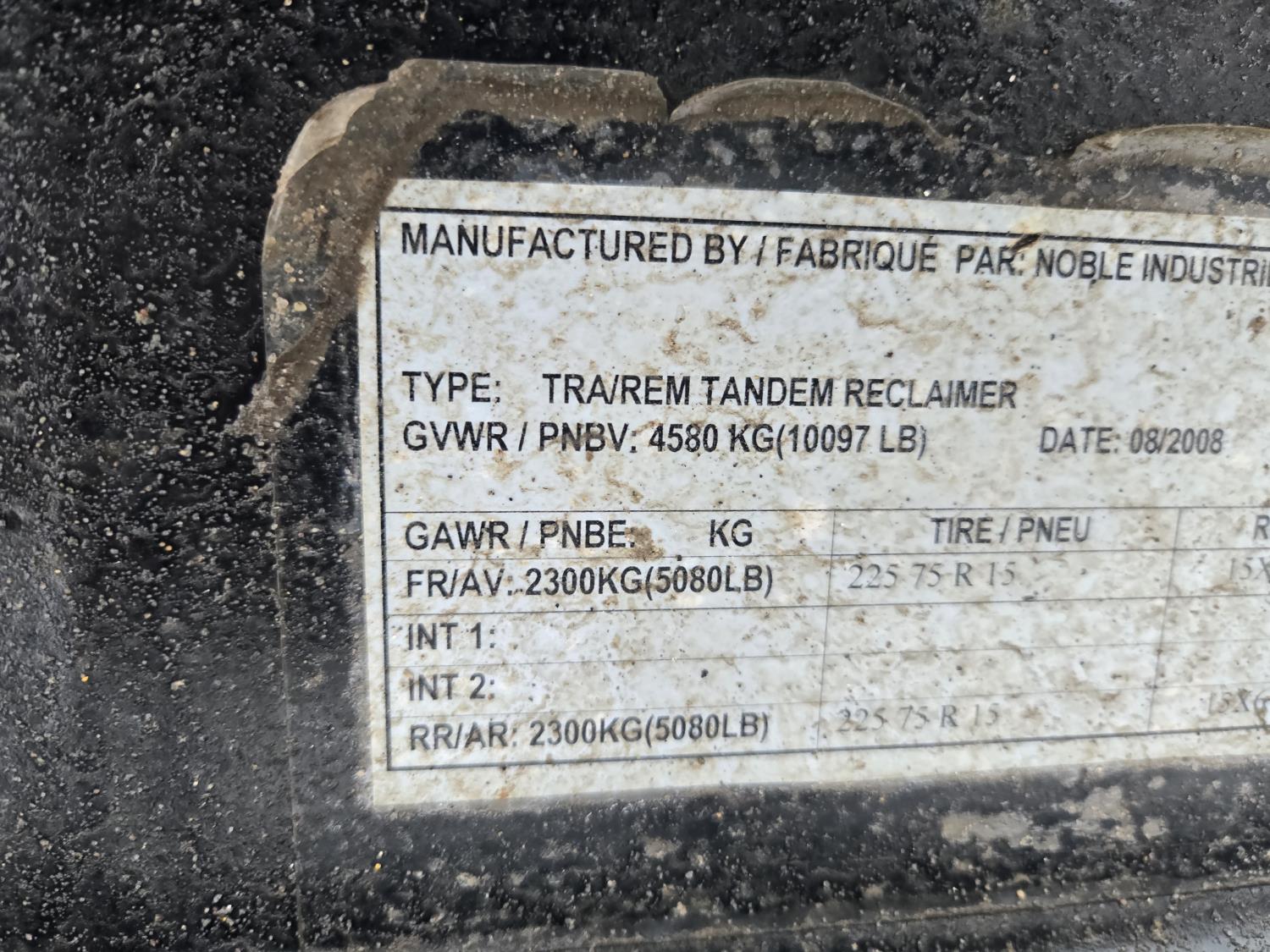 100 lb propane bottle, pintle hitch, spring suspension, 225/75R15 tires