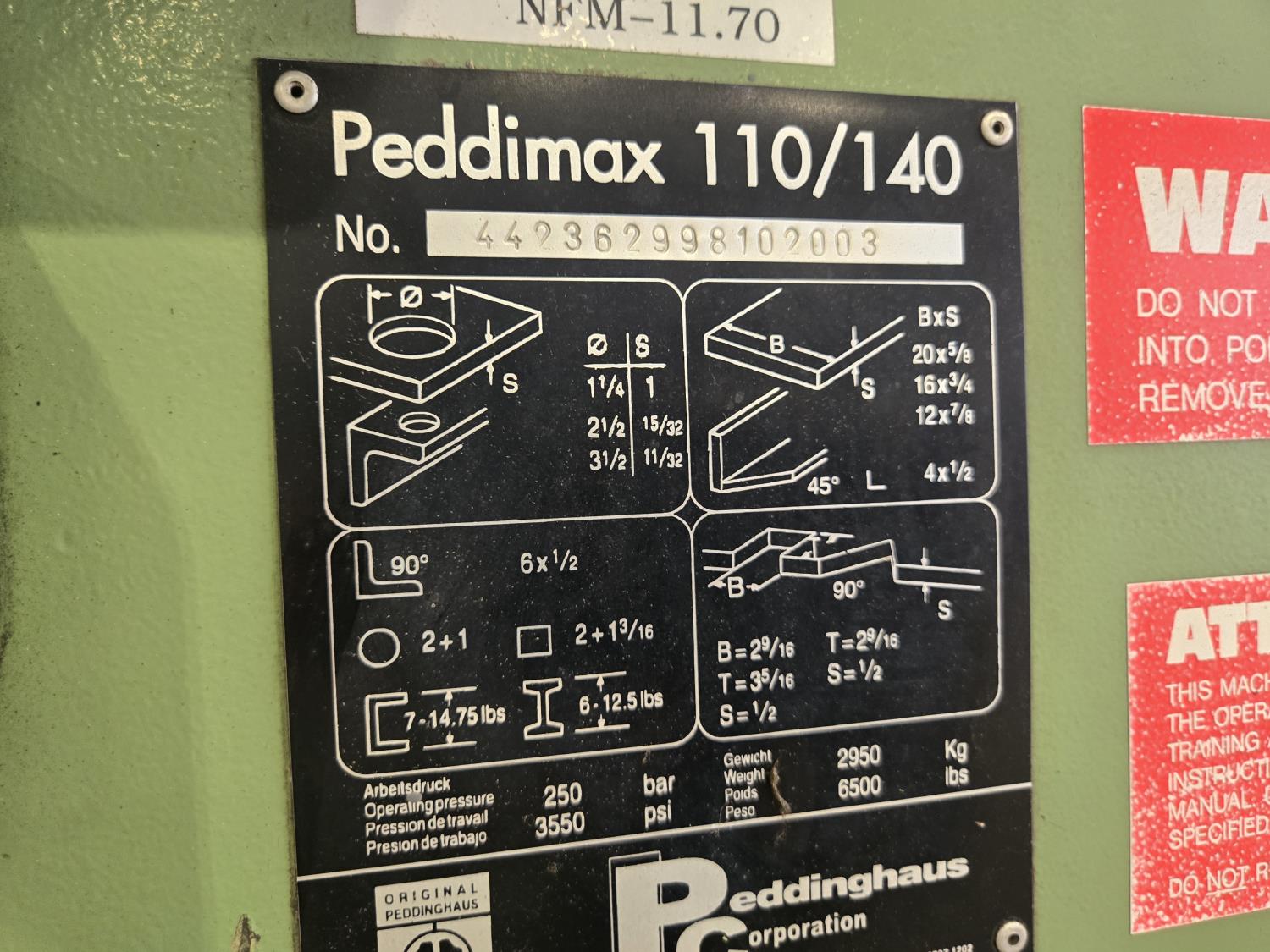 65 Peddimax 110/140 110 Ton Industrial Iron Worker