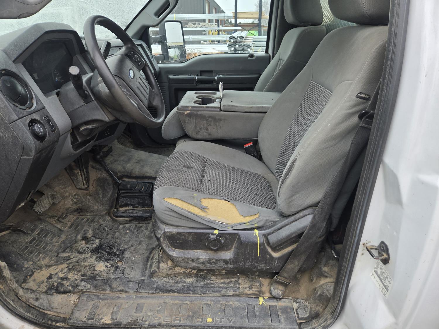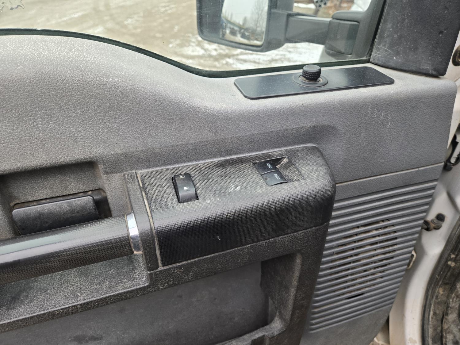 Ford 6.8 L V10 gas engine, automatic transmission, A/C, P/W, P/L, 8 ft 6 inch x 15 ft deck, 12" expanded metal fold down sides, under deck storage boxes, pintle trailer hitch, 4X4, 225/70R19.5 tires
