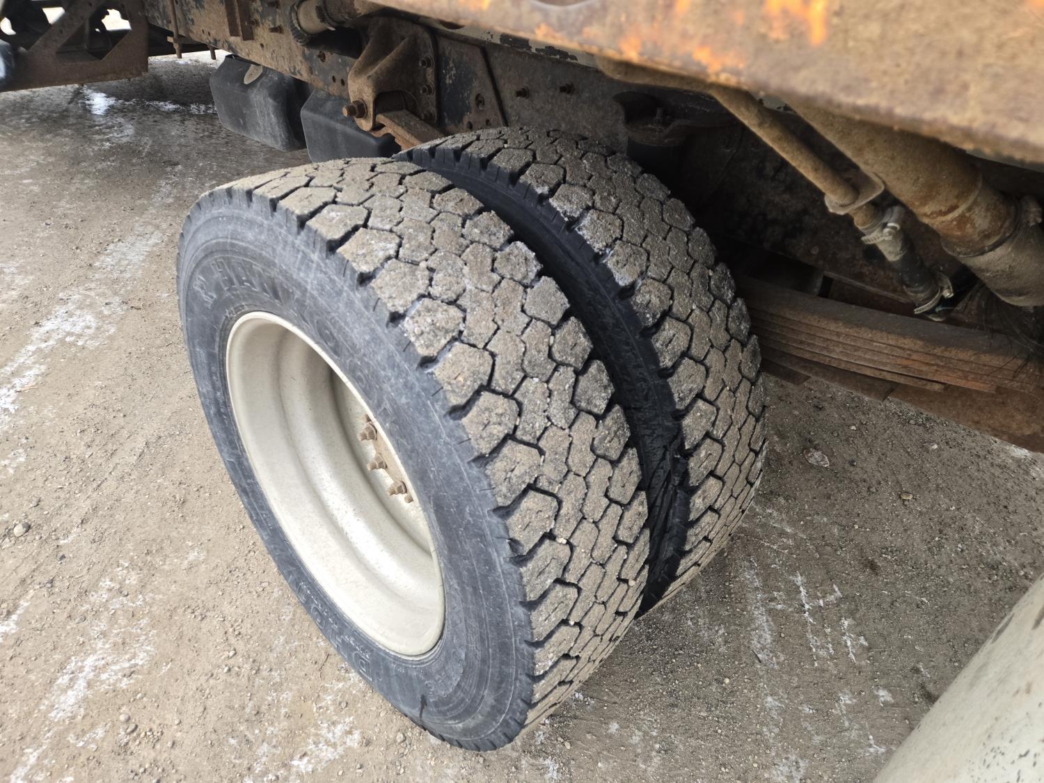 GMC DURAMAX 6.6 L V8 diesel engine, automatic transmission, 8 ft x 12 ft 6 inch deck, spring suspension, 2WD dually, 245/70R19.5 tires