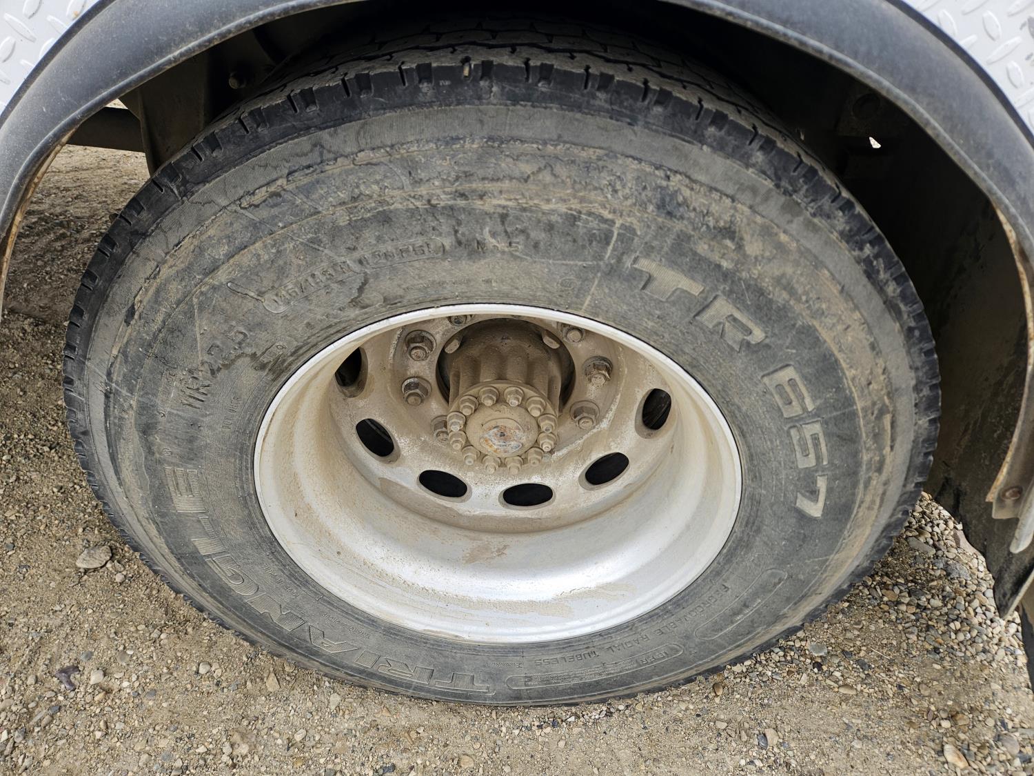 Cummins 6.7 L 6 cylinder diesel engine, DEF deleted, engine brake, engine block heater, automatic transmission, fifth wheel king pin hitch, A/C, cruise control, radio, steel tool boxes, 8 ft x 18 ft deck, 12 volt crane w/3000lb winch, remote control, 3 new batteries, upgraded air suspension seats, water tank, feed bin(was used for alfalfa cubes) roll up tarp, LED head lights, air ride suspension, 10,000 lb front axle, 19,000 lb rear axles, 11R22.5 tires