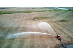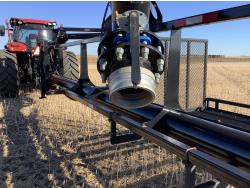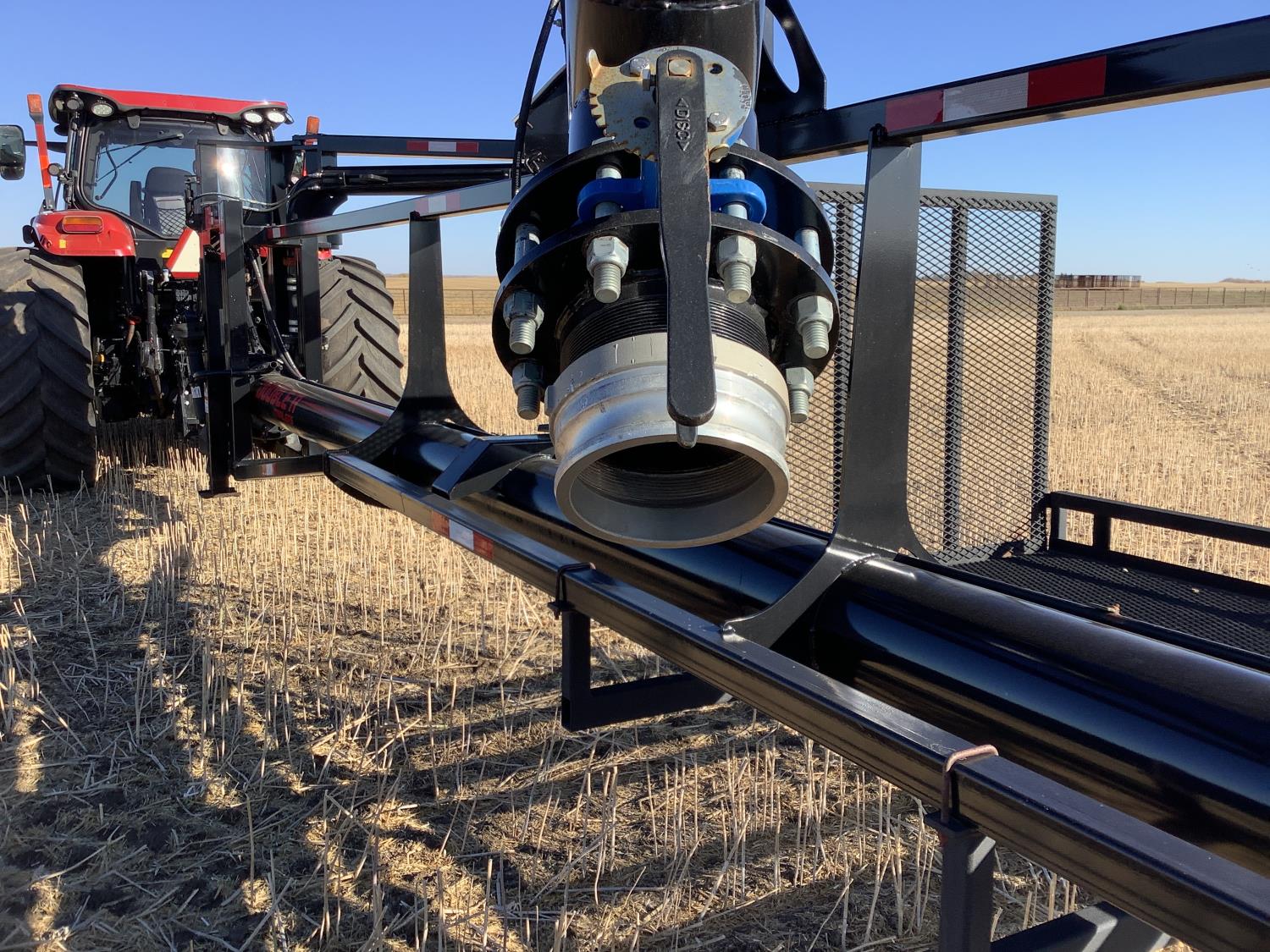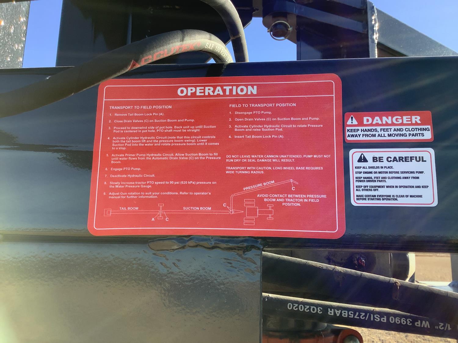 large 1000 PTO, 100 ft long in field position, dual nozzles with transfer flow of 4500 GPM, hose not included with pump