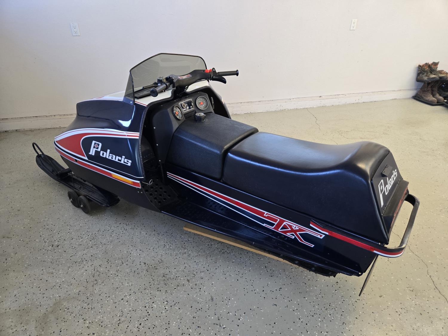 Snowmobiles are being stored indoors in our heated facility at Drayton Valley. This is probably the nicest collection of classic Polaris snowmobiles you will ever find. This collection comes from Stan Roszko any questions call Stan at 780-674-7826.