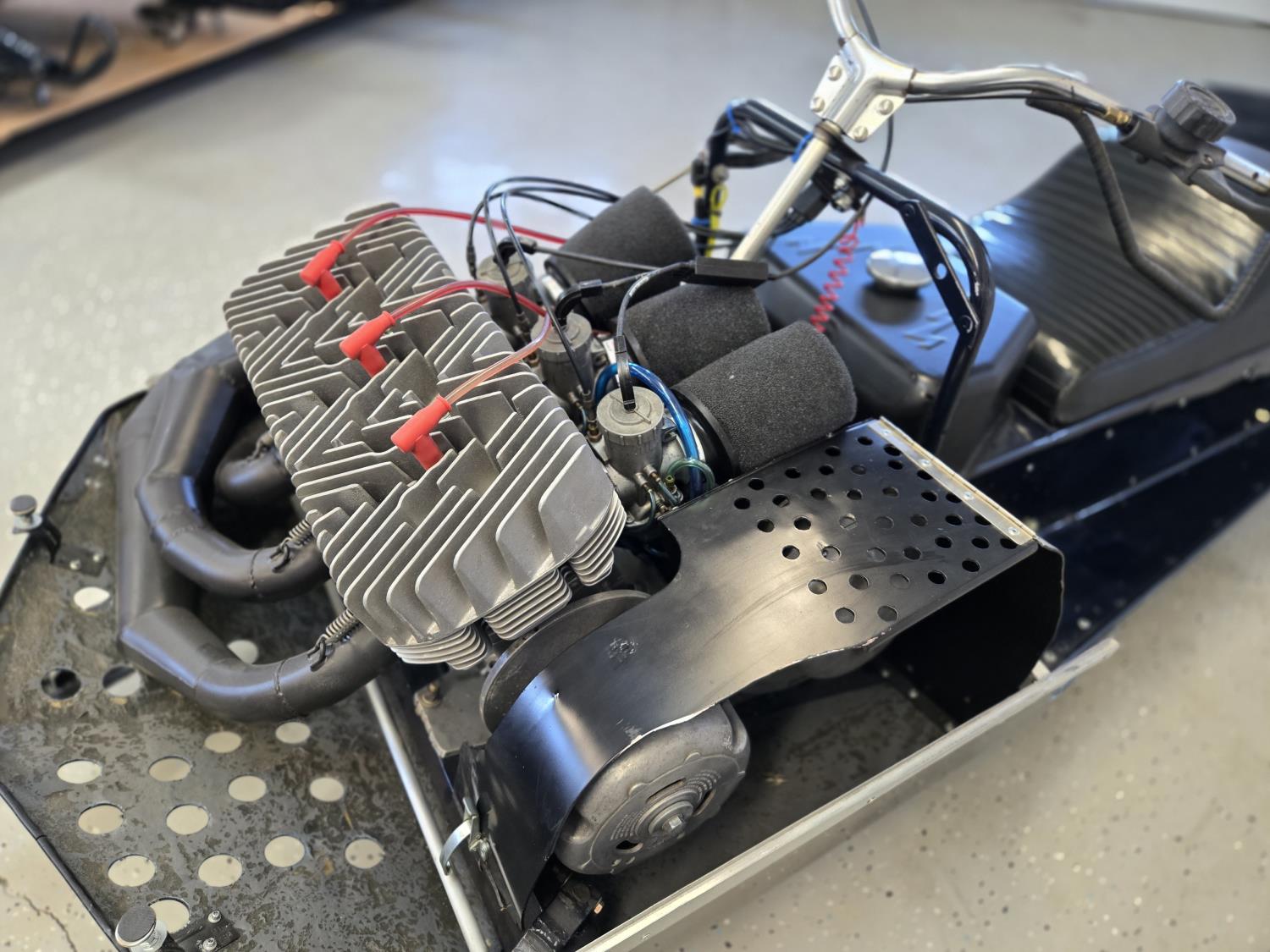 Polaris engine, big cylinder 650 / wide angle heads, possibly one of 20 PDC’s ( profession drivers circuit ) built by the Polaris racing team prior to the 1974’ season , bull session back in 11/22/2013 on Vintage sleds regarding its history , always stored in a climate-controlled garage, purchased several years ago off Vintage sleds in the state of Michigan