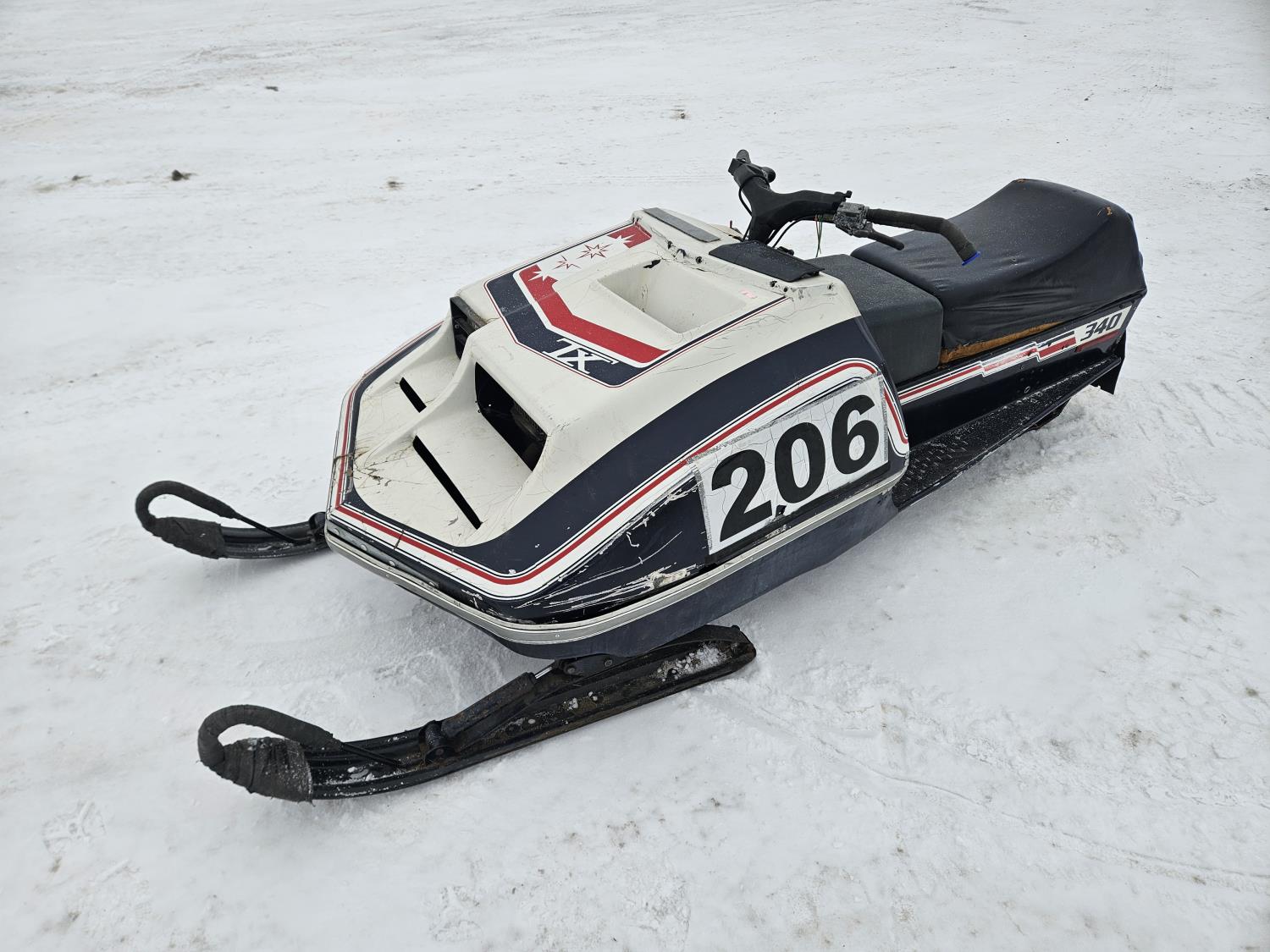 340 cc free-air twin 2 cylinder 2 stroke engine, 15 inch wide track, cleated track, needs tether switch to run