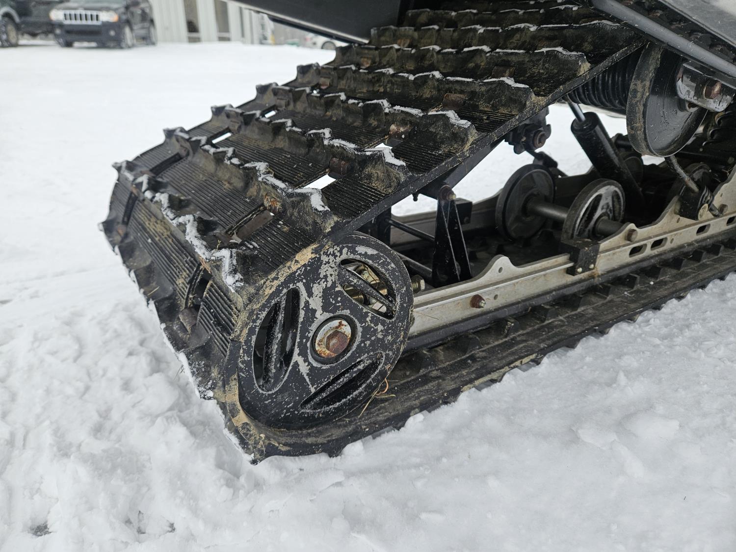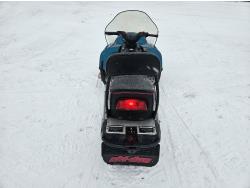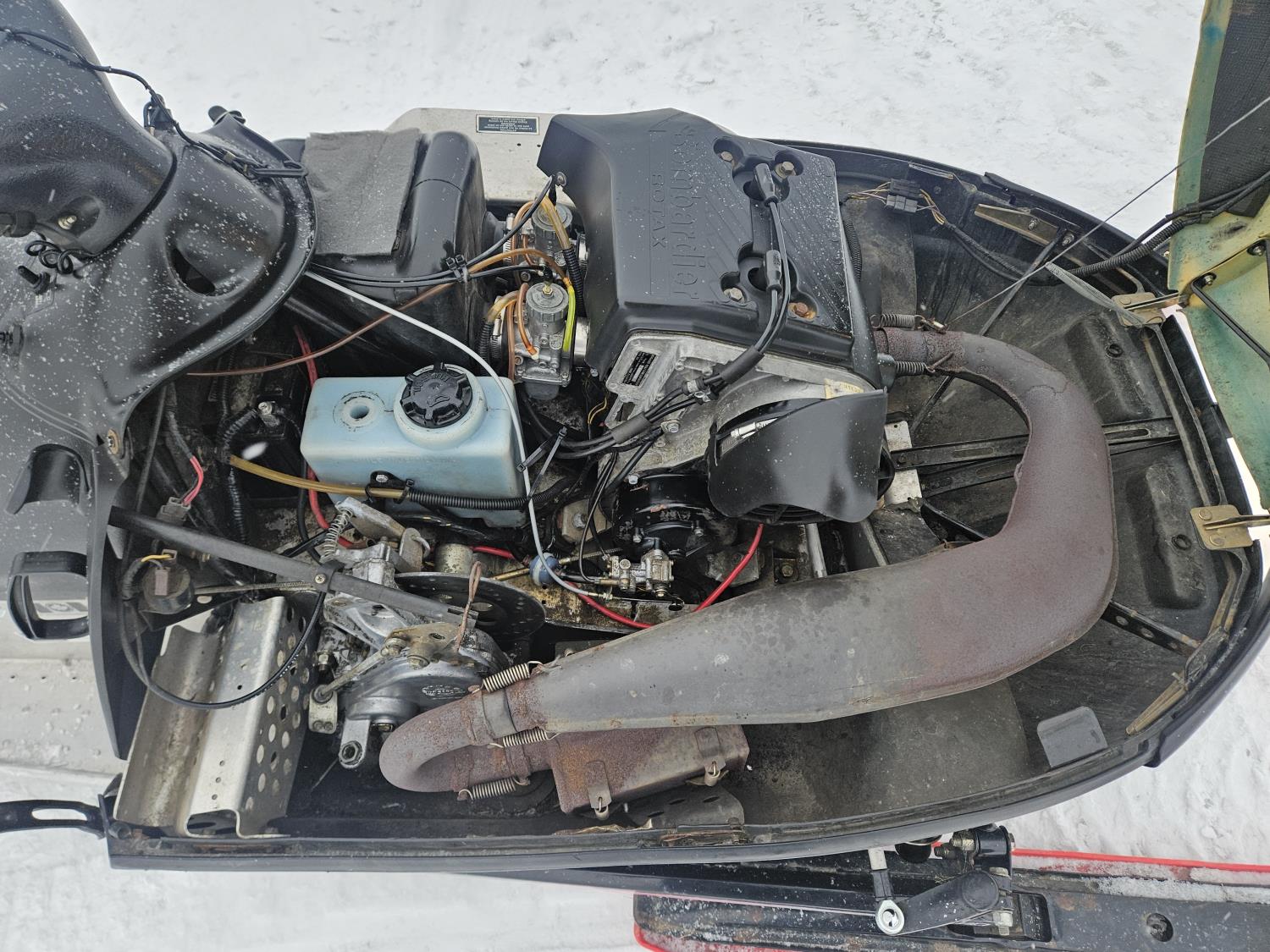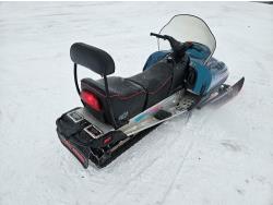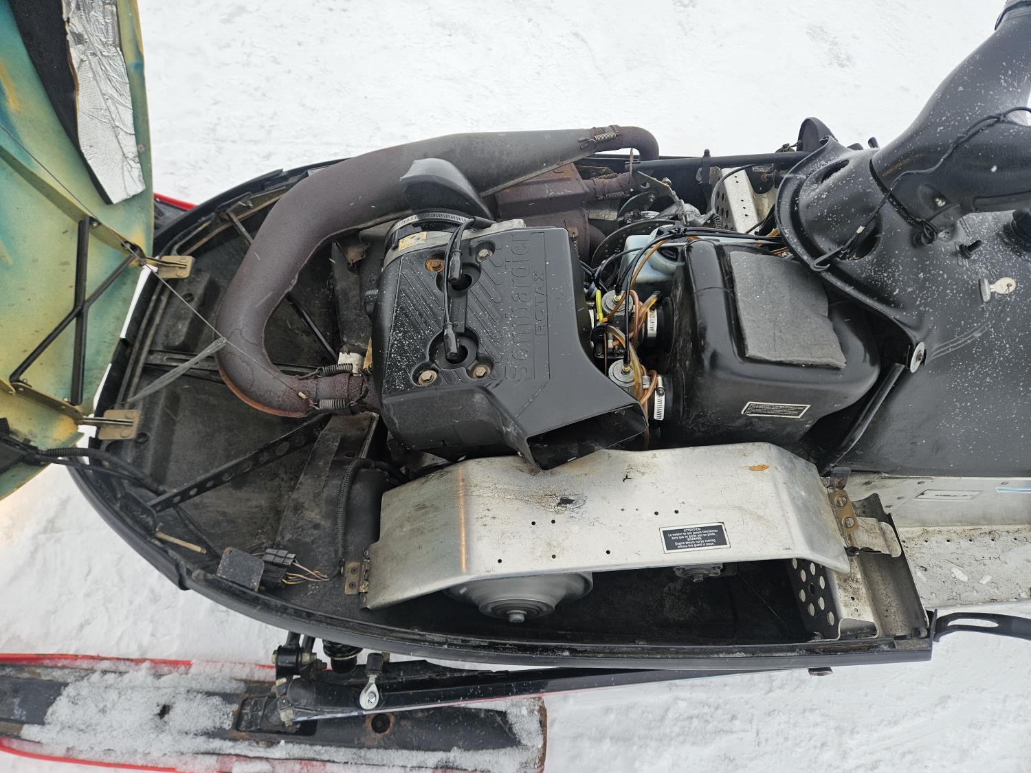 500 cc 2 cylinder 2 stroke Fan cooled engine, electric start, reverse, windshield, hand and thumb warmers, 2 up seat with backrest, 136 inch long track, 15 inch wide track, rear tow hitch, ski skins, new gas gauge, new tie rods