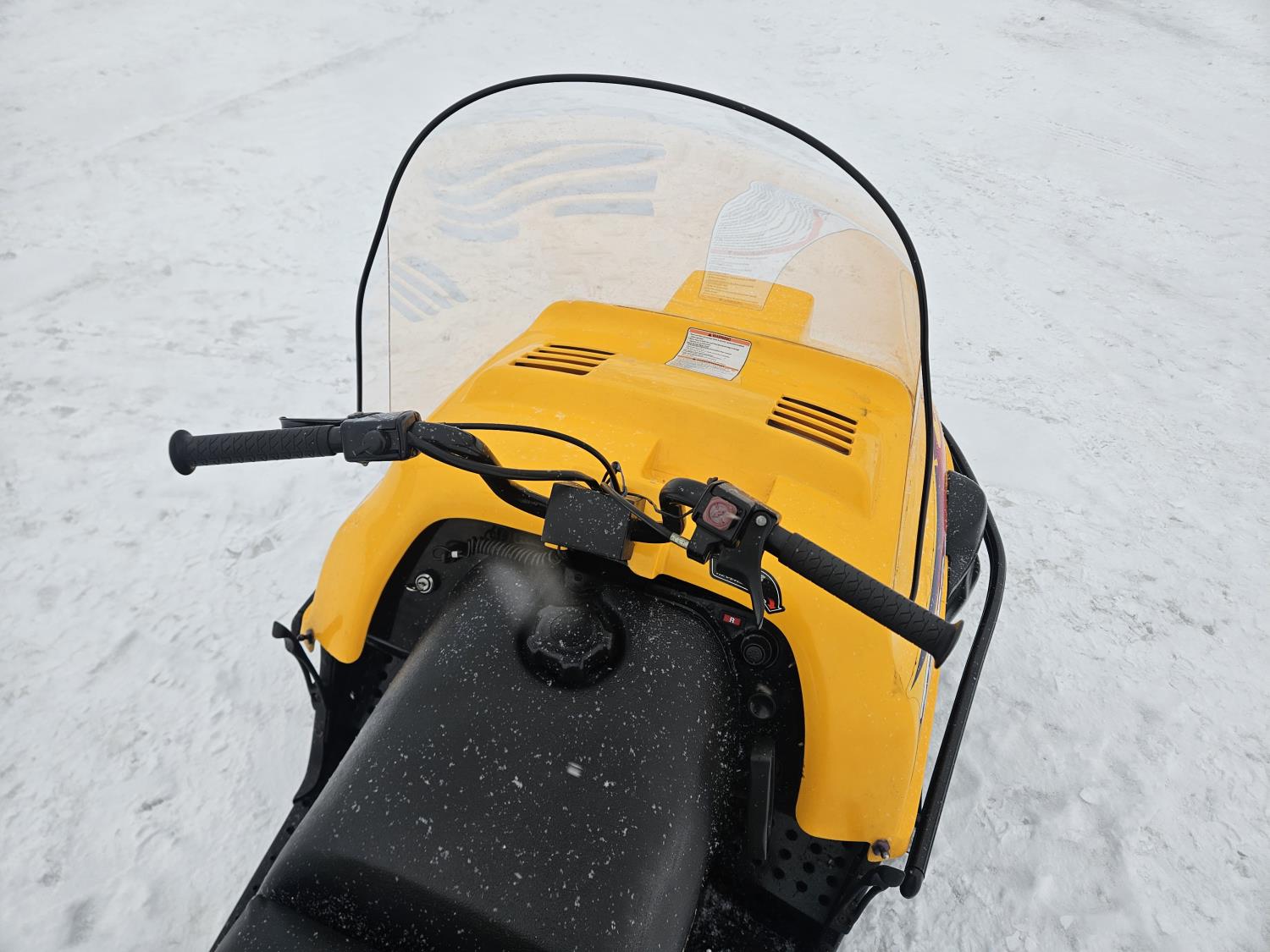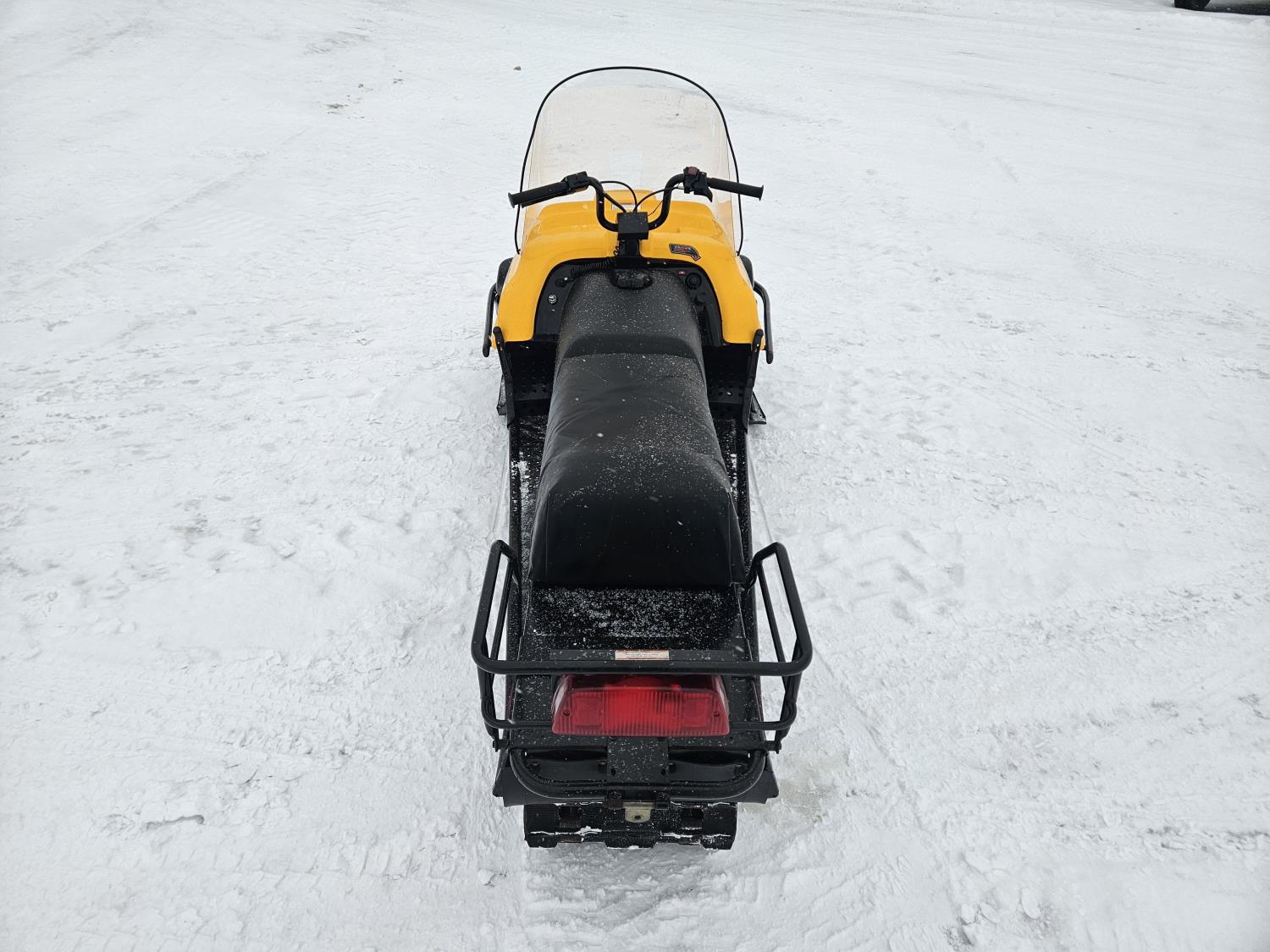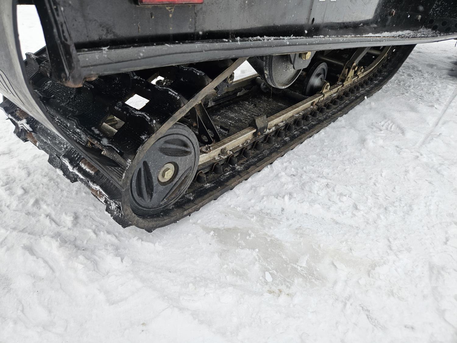 300 cc 1 cylinder 2 stroke Fan cooled engine, reverse, 139 inch long track, 15 inch wide track, rear tow hitch, new windshield