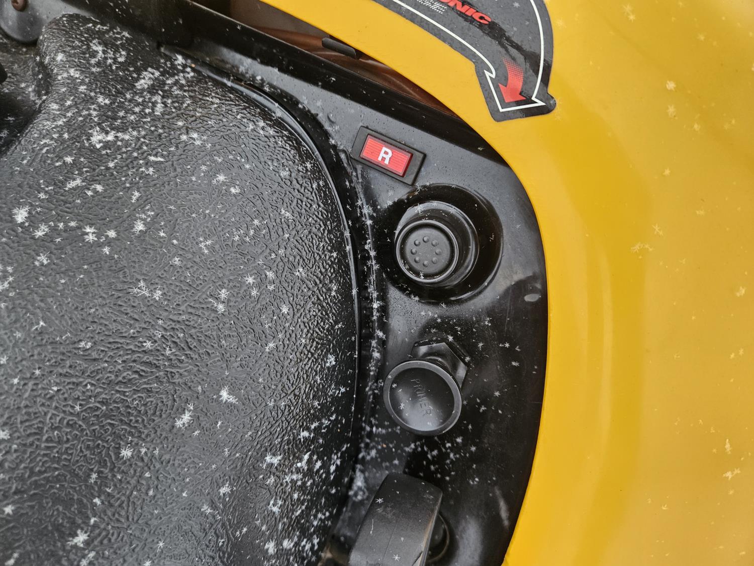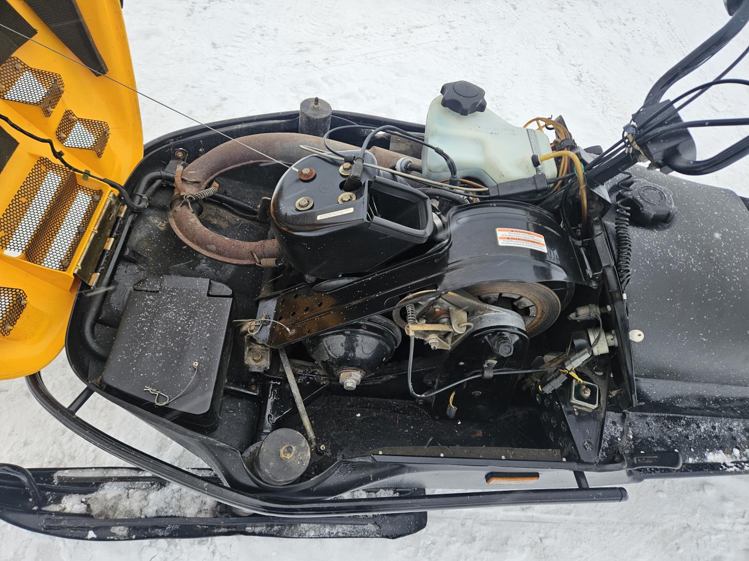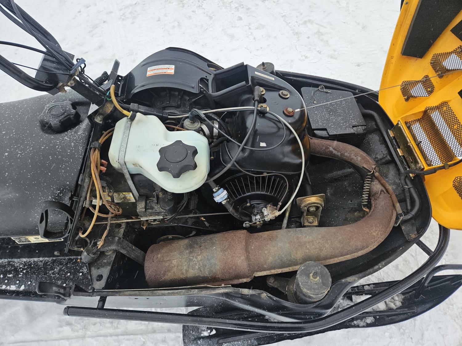 300 cc 1 cylinder 2 stroke Fan cooled engine, reverse, 139 inch long track, 15 inch wide track, rear tow hitch, new windshield