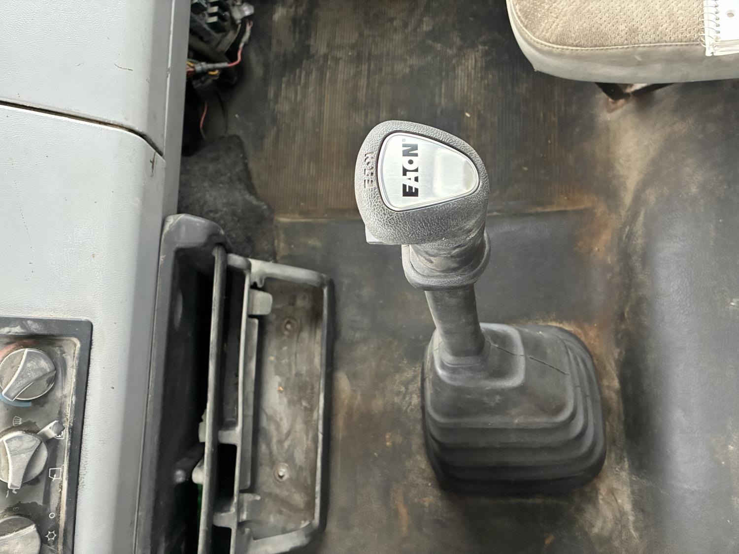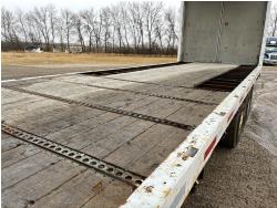 Cummins M11 370 HP diesel engine, engine block heater, Eaton Fuller 10 speed manual transmission, A/C, cruise control, air ride driver seat, steel tool boxes, 102 inch x 26 ft deck, Was originally a Curtain-Side body, NO CURTAINS, has rear forklift holder, side tie-down winches, air ride suspension, 12,000 lb front axle, 20,000 lb rear axles, diff lock, 11R22.5 tires