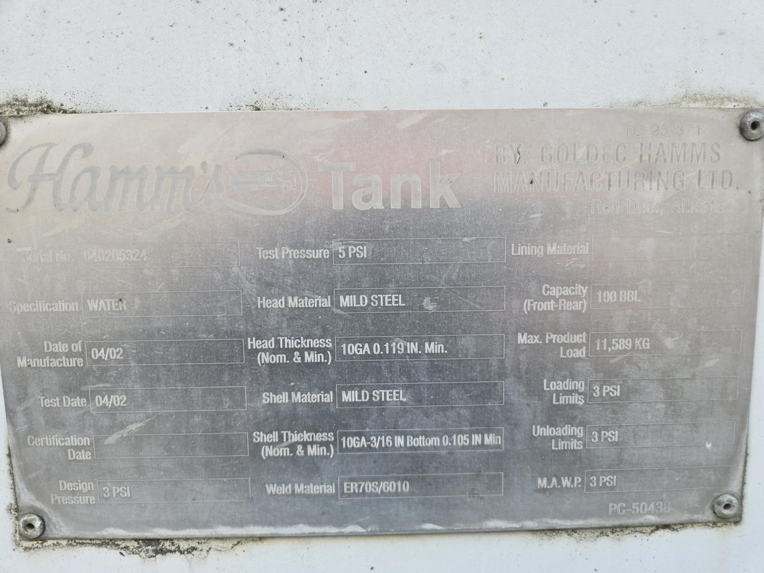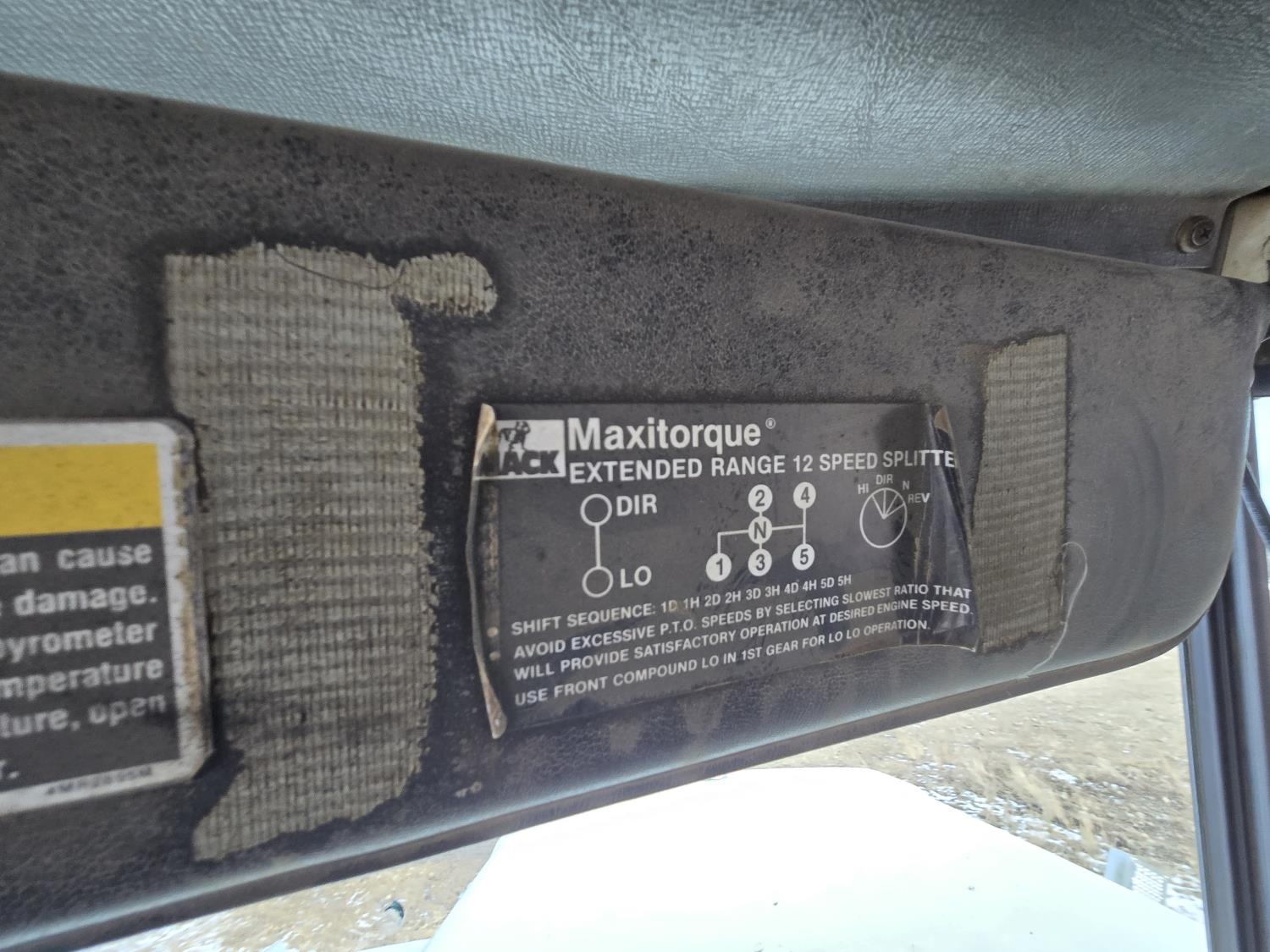 Mack 6 cylinder engine, Mack 12 speed manual transmission, hydraulic wet kit, 3" hydraulic pump, Hamms tank, 100 barrel single compartment tank, spring suspension, 199 inch WB, 11R22.5 front tires, 11R24.5 rear tires