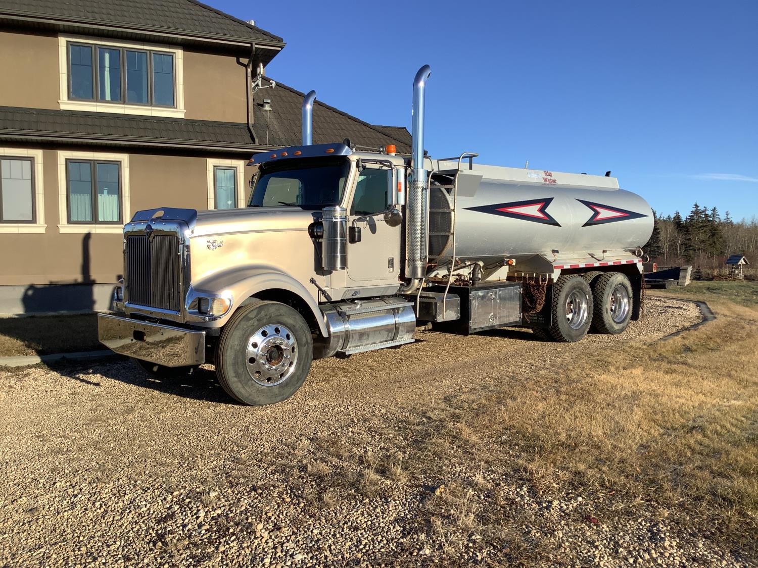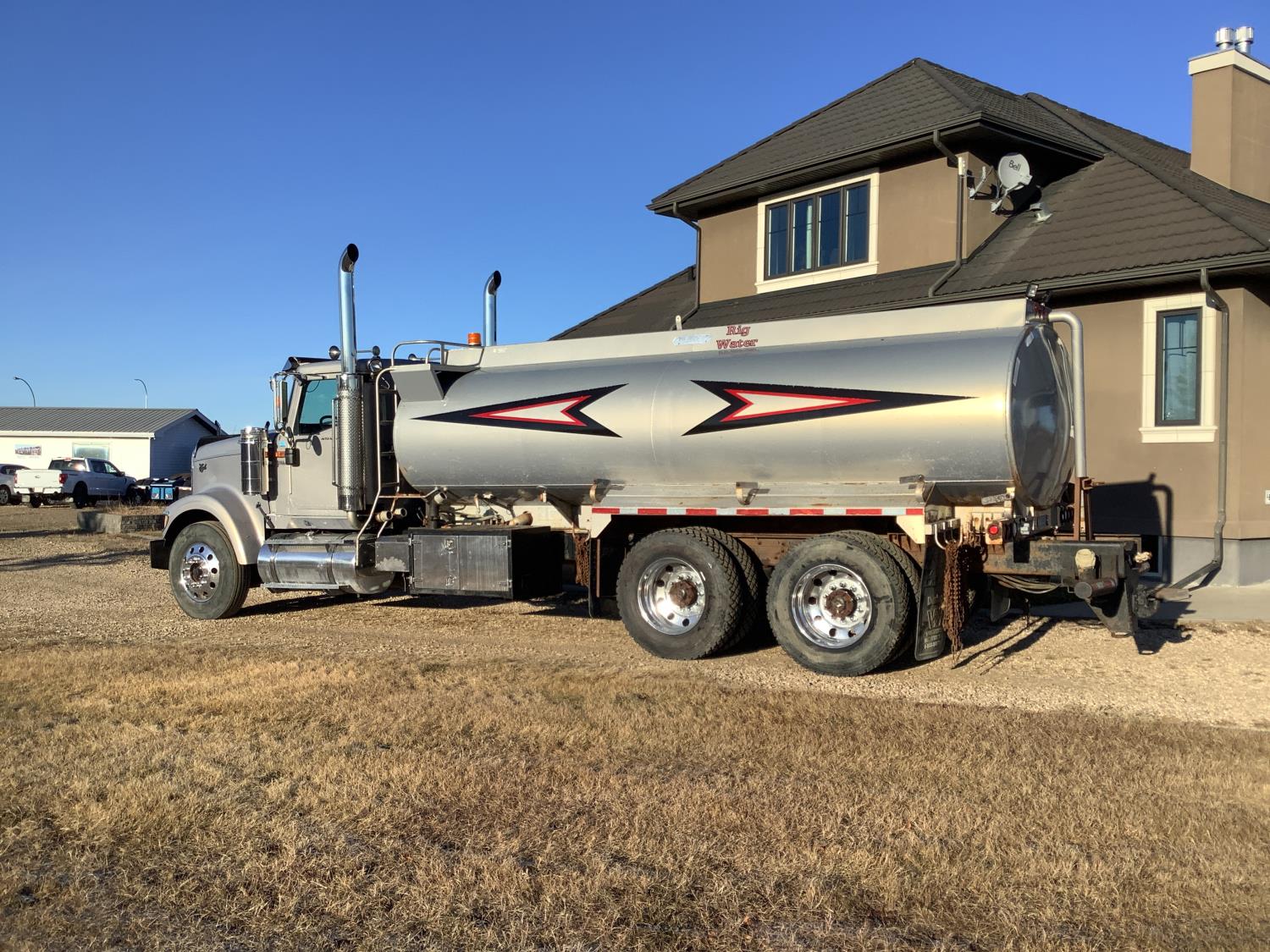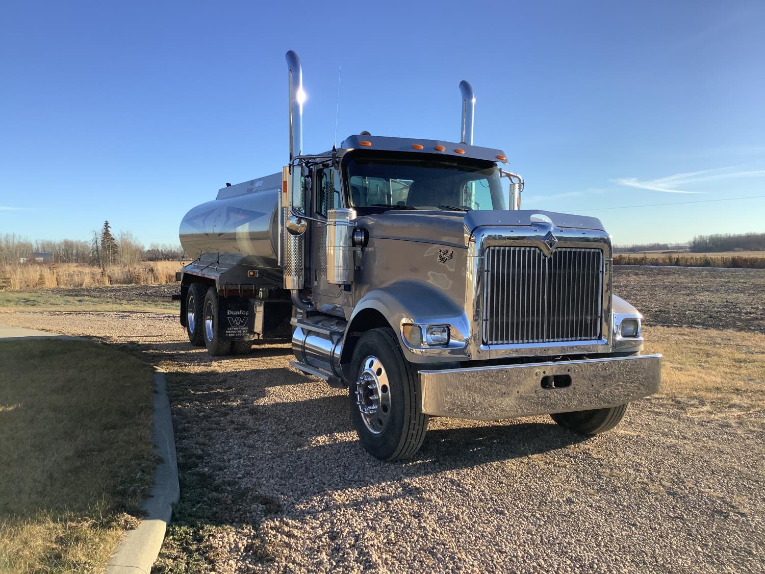 Cummins ISX 475 6 cylinder engine, engine brake, 18 speed manual transmission, A/C, radio, P/W, PL, heated power mirrors, Eagle cab package, Advance 16,000 Liter water tank c/w hydraulic drive pump in heated box, rear pintail hitch with trailer air supply and electric brakes, 12,800 lb front axle, 40,000 lb rear axles, full lockers, all aluminum wheels, 11R24.5 tires