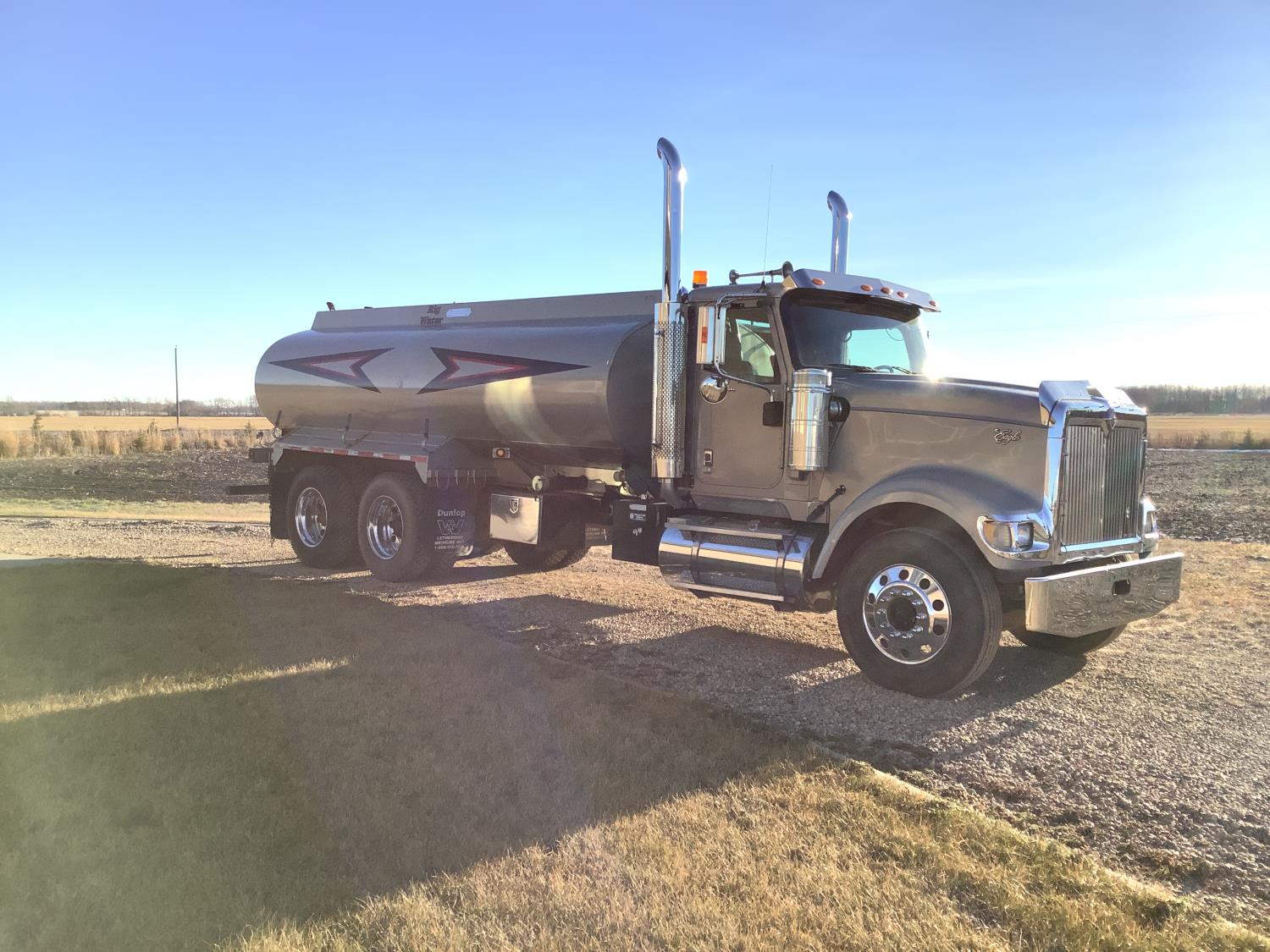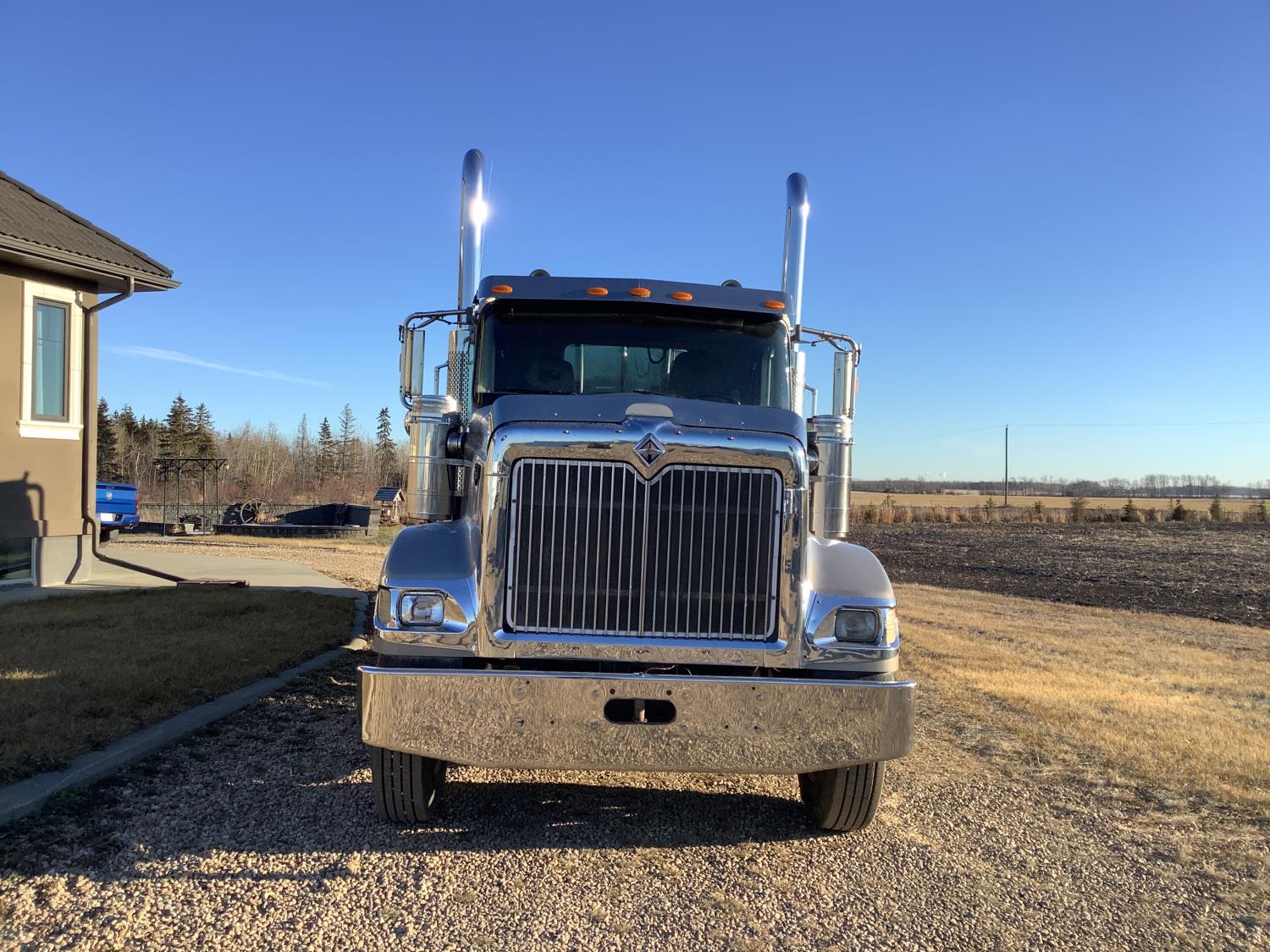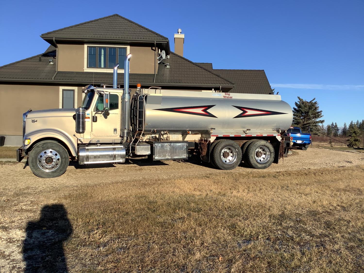 Cummins ISX 475 6 cylinder engine, engine brake, 18 speed manual transmission, A/C, radio, P/W, PL, heated power mirrors, Eagle cab package, Advance 16,000 Liter water tank c/w hydraulic drive pump in heated box, rear pintail hitch with trailer air supply and electric brakes, 12,800 lb front axle, 40,000 lb rear axles, full lockers, all aluminum wheels, 11R24.5 tires