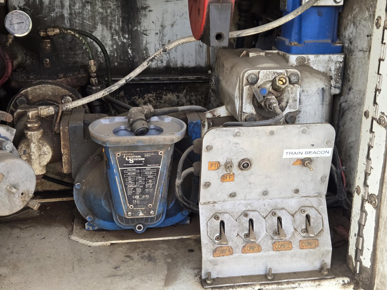 6 cylinder diesel engine, engine brake, engine block heater, positive air shutoff, Allison automatic transmission, Dependable 20000 liter 4 compartment aluminum tank, Hendrickson air ride suspension, 18,000 lb front axle, 46,000 lb rear axles, differential lock, 236 inch WB, hydraulic driven pump, 2 reels, dual steering boxes, double frame, all aluminum wheels, 315/80R22.5 front tires, 11R22.5 rear tires
