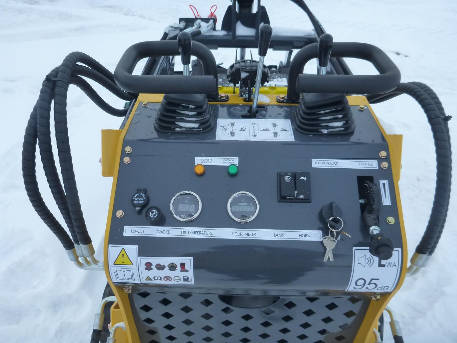 Open station, 15 Hp gas engine, 36 inch smooth bucket, 1 auxiliary hydraulics, 7 inch rubber tracks