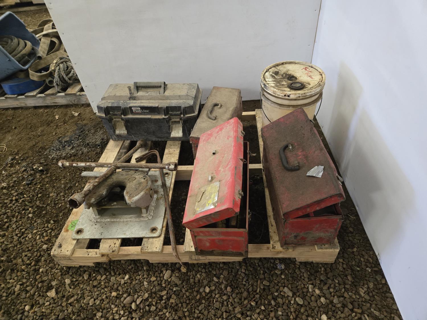 (4) Small Toolbox's with Contents, 5TH Wheel King Pin, Truck Lug Wrench