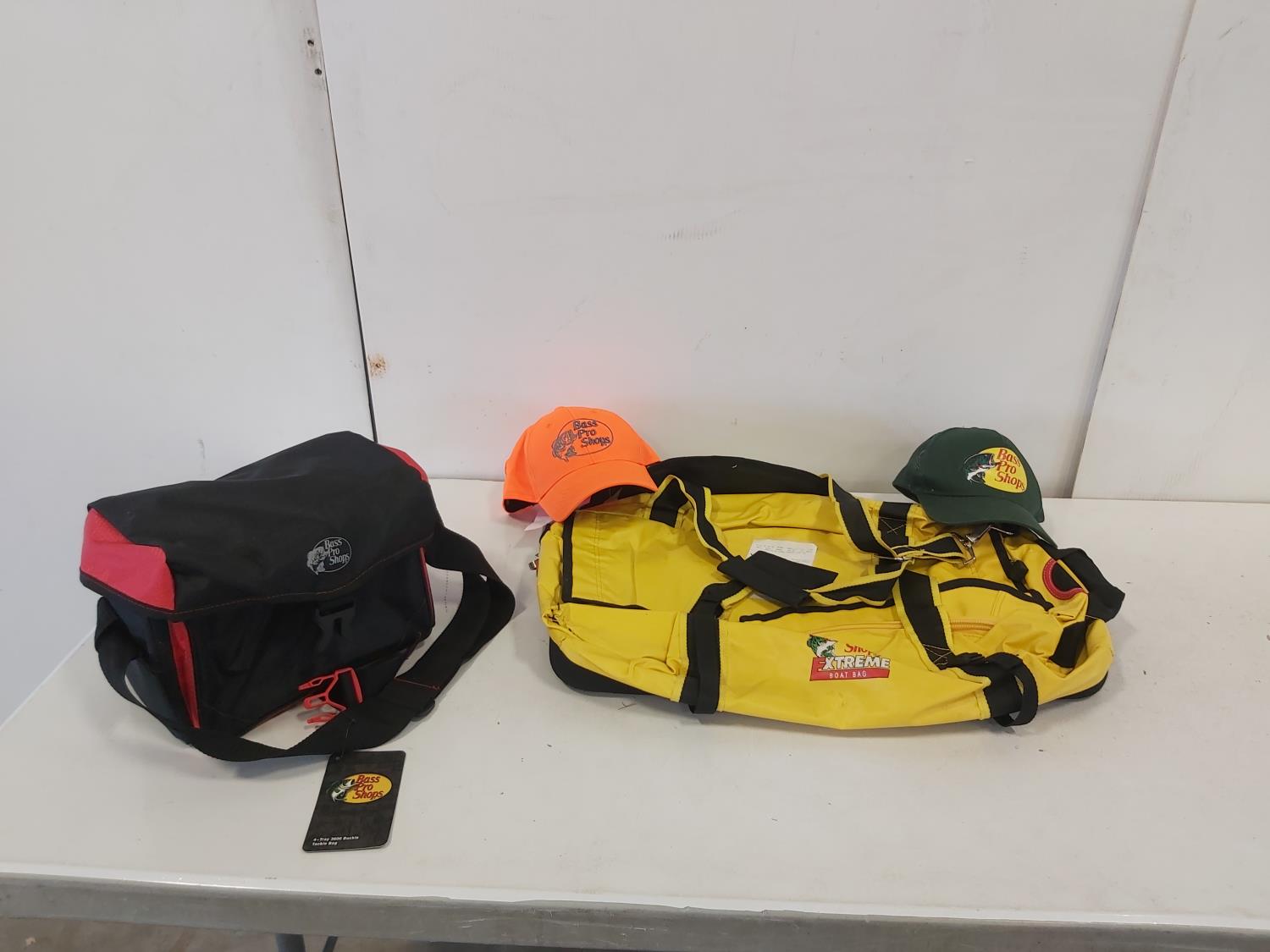 Bass Pro Shops Tackle Box, Boat Bag and (2) Hats