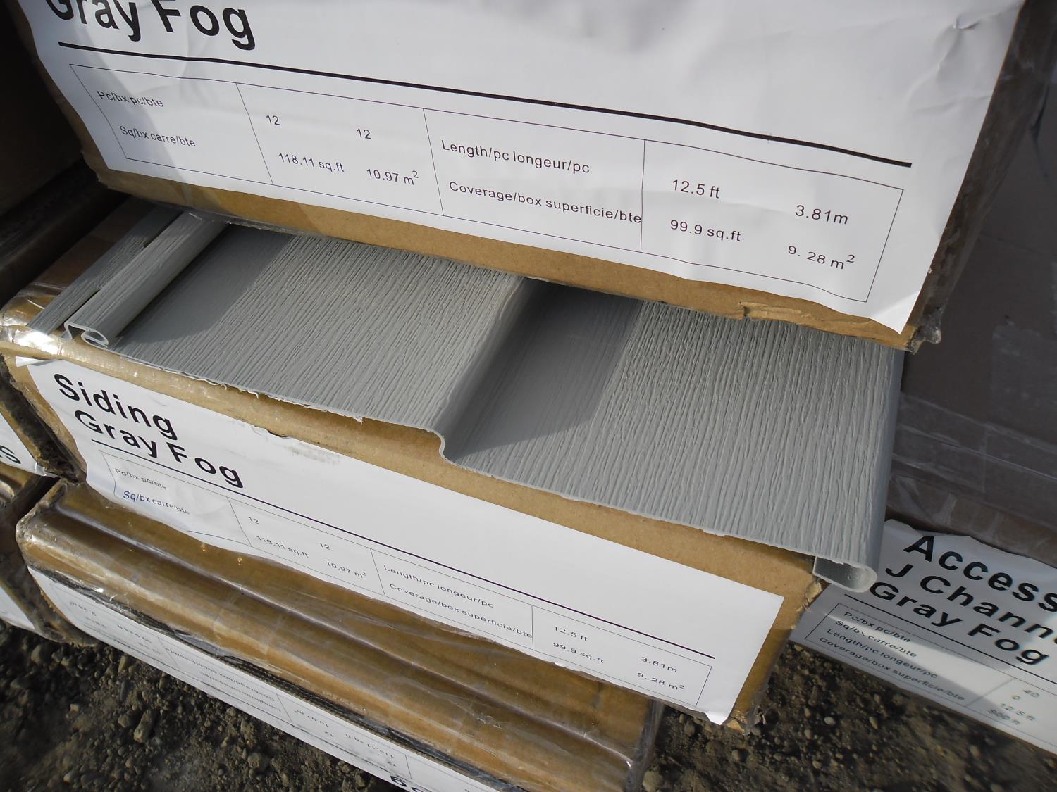 Large Qty of 12.5 Ft Grey Fog Vinyl Siding and J Channel (Unused)
