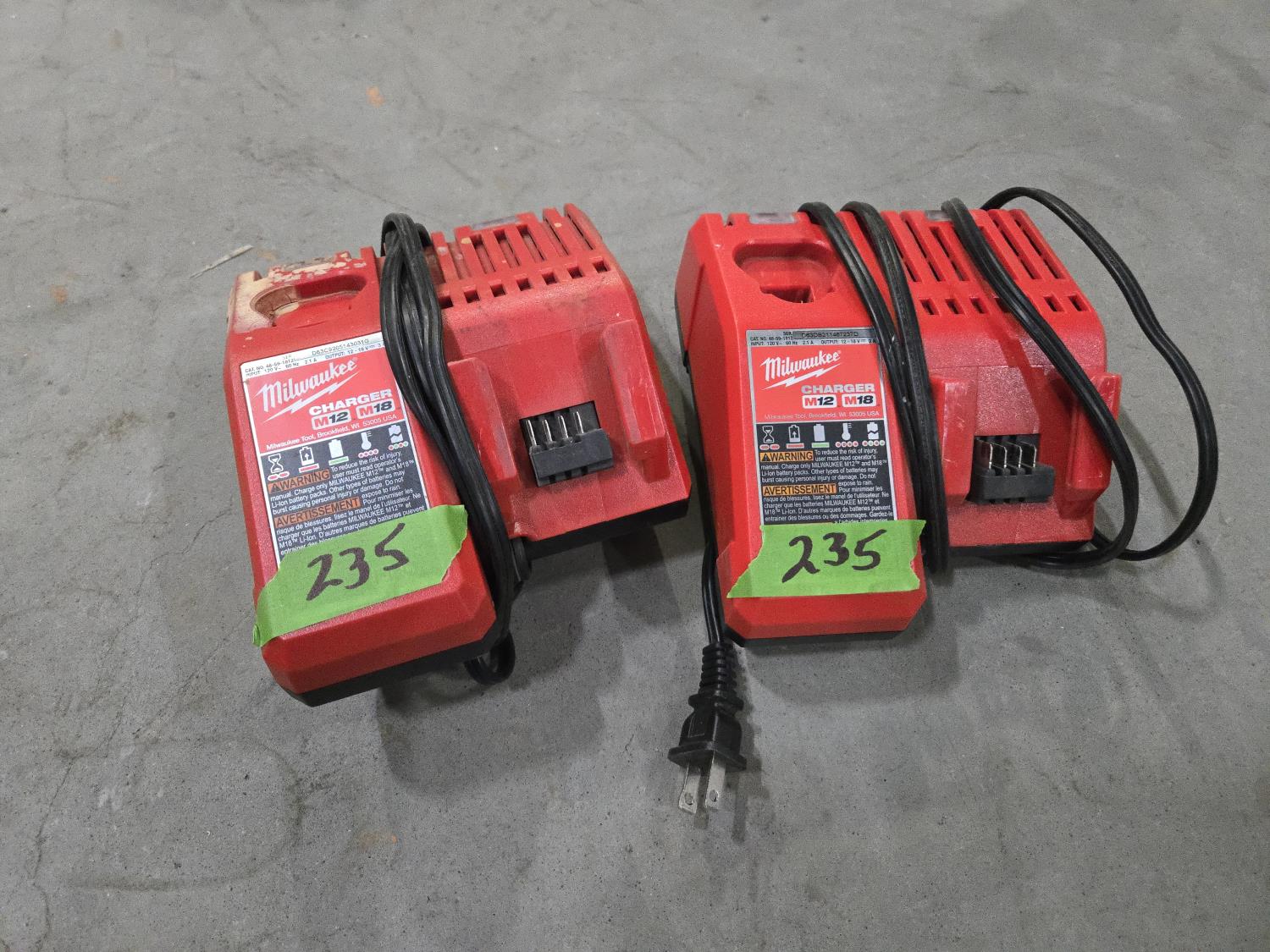 323 (2) Milwaukee M12/M20 Cordless Tool Chargers