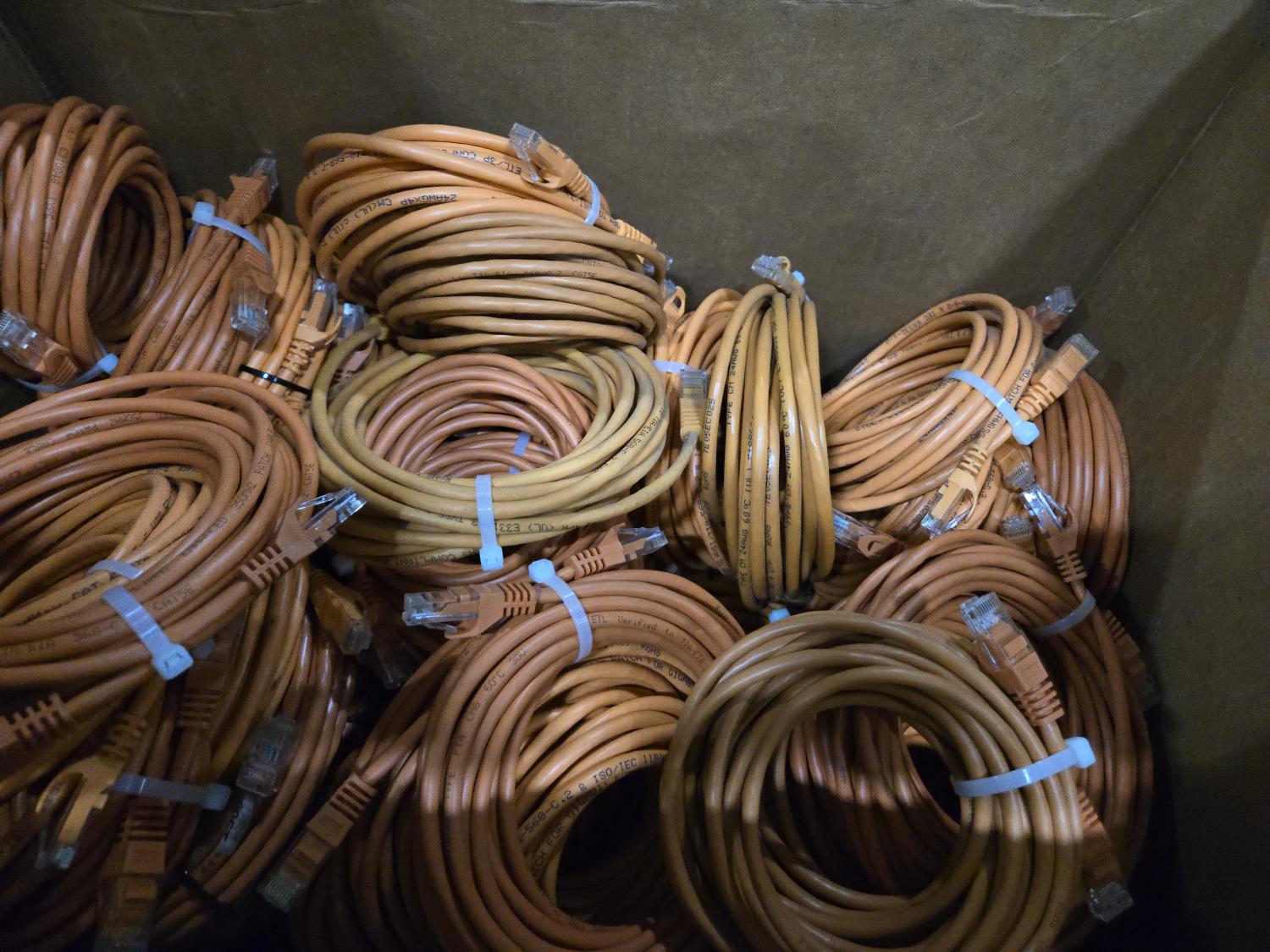 115 blue, 58 purple, 65 grey, 50 orange, mostly CAT 5E cables