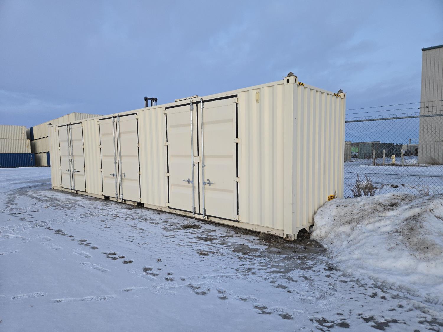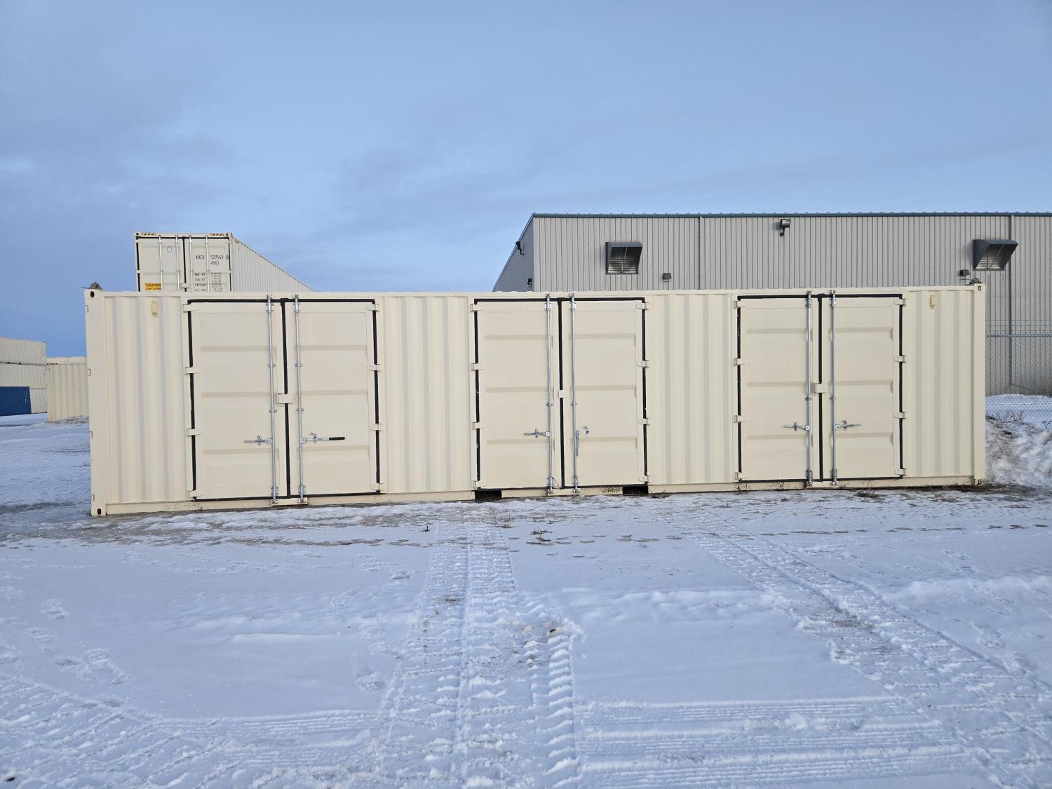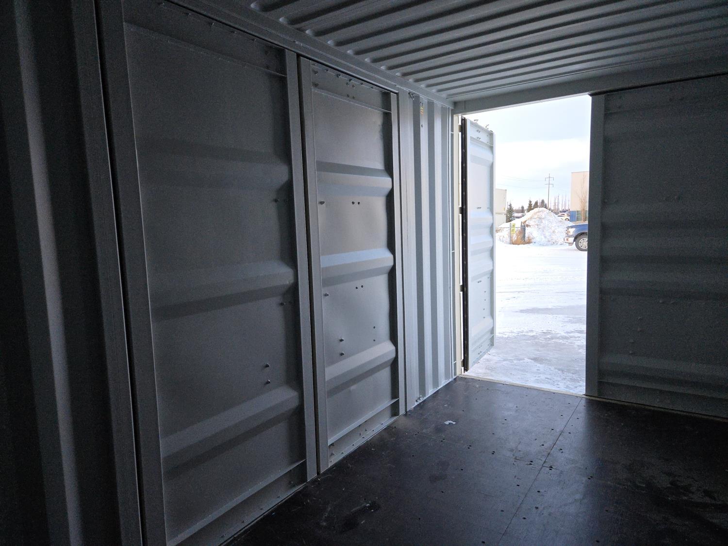 (3) side doors, (1) one end door, 9 ft 6 inch high, one time use container