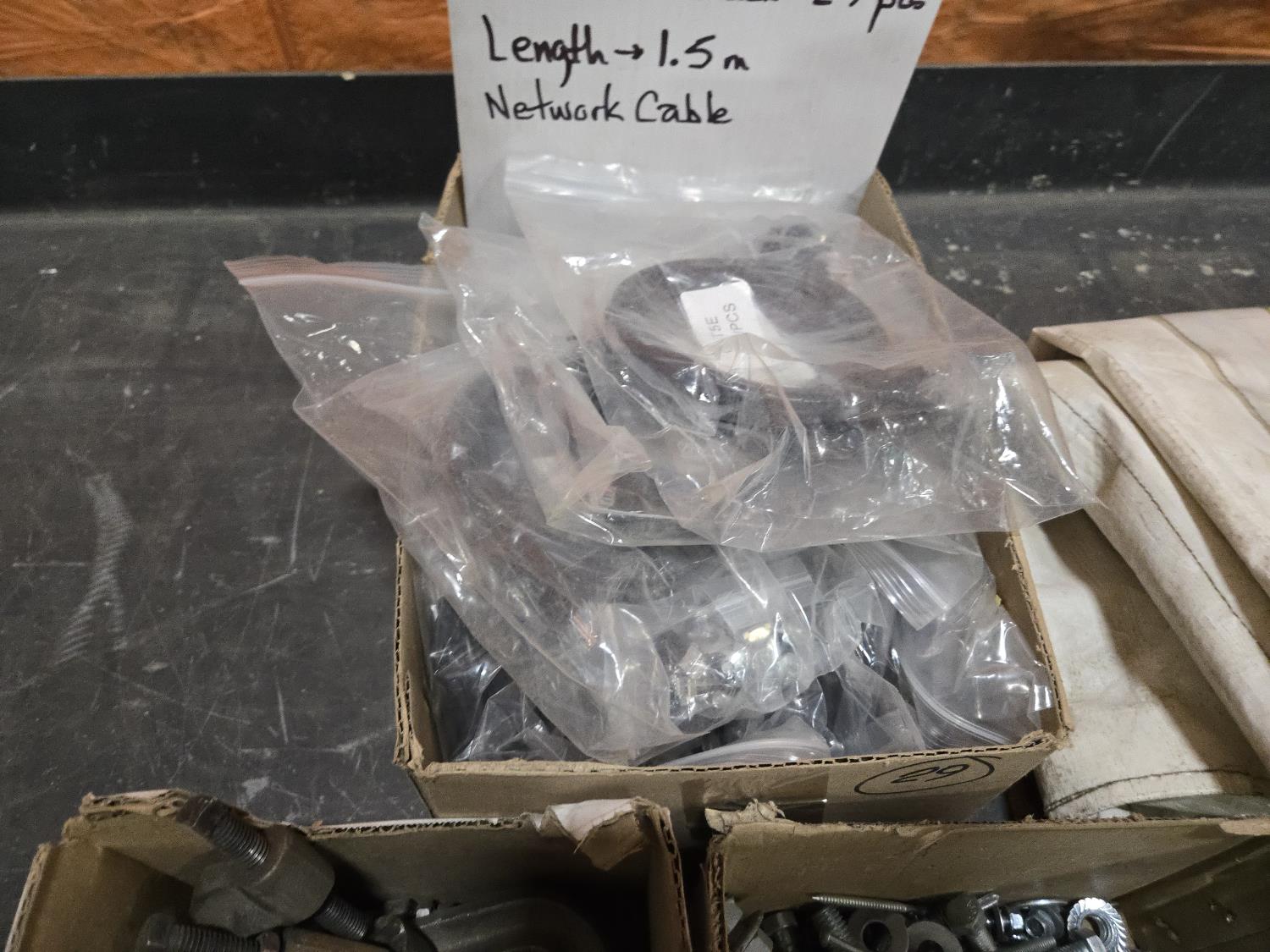 333 Qty of Hardware, (29) 1.5 M Cat 5 Network Cable, Norseman 7 Ft X 8 Ft Tarp