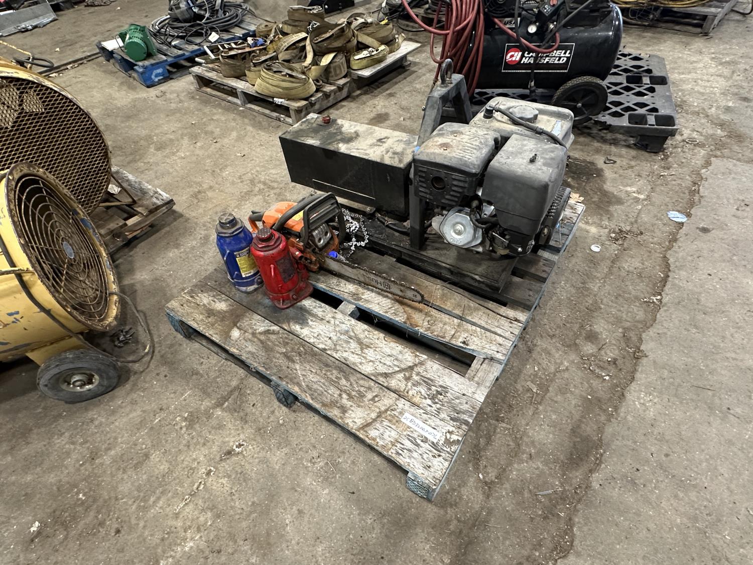 501 Pallet of Bottle Jacks, Hydraulic Power Unit and Power Saw