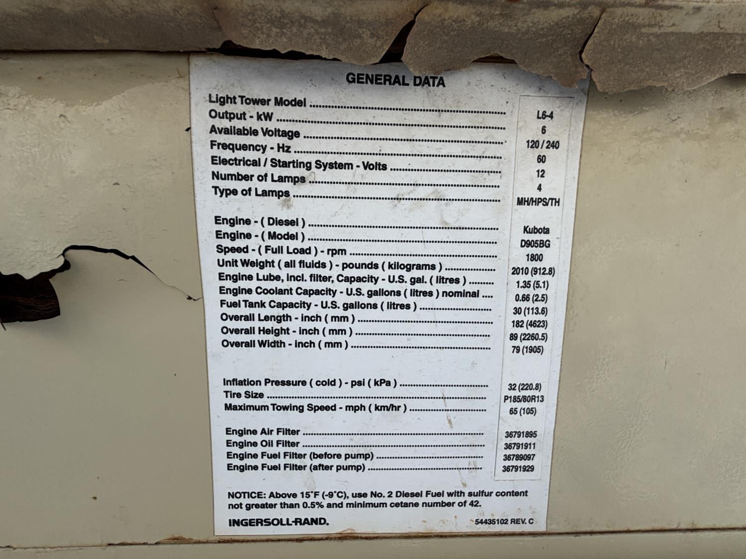 1322B 2001 Ingersoll Rand L6-4MH 6 Kw Light Tower