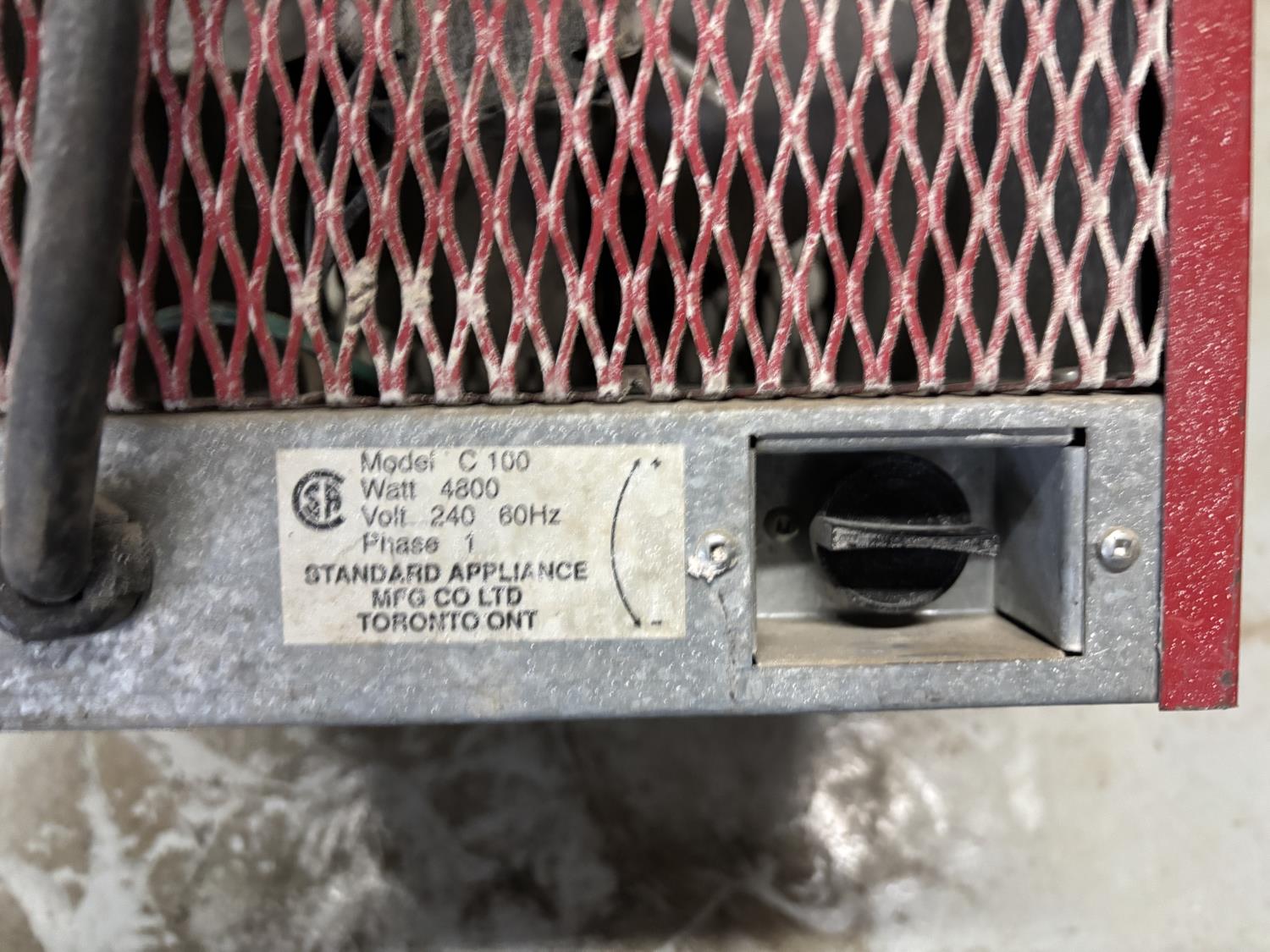 1199 Standard Appliance Mfg. Co. C100 240 Volt Heater