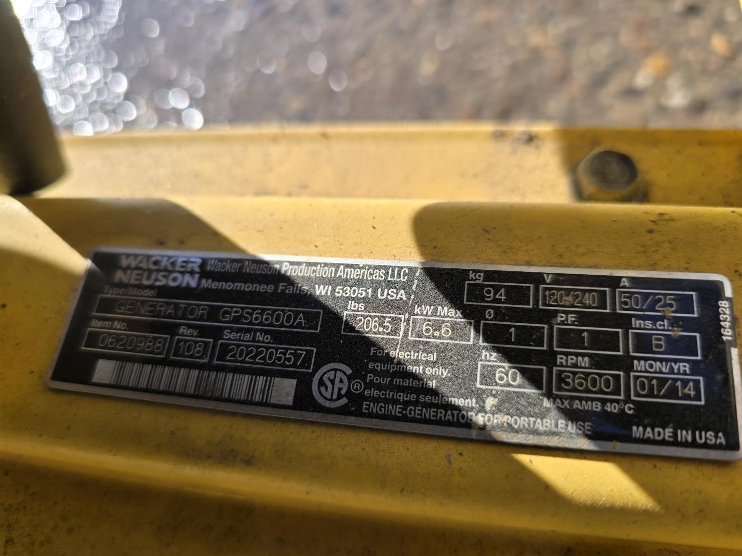 1365 Wacker Neuson GPS6600 6600 W Generator
