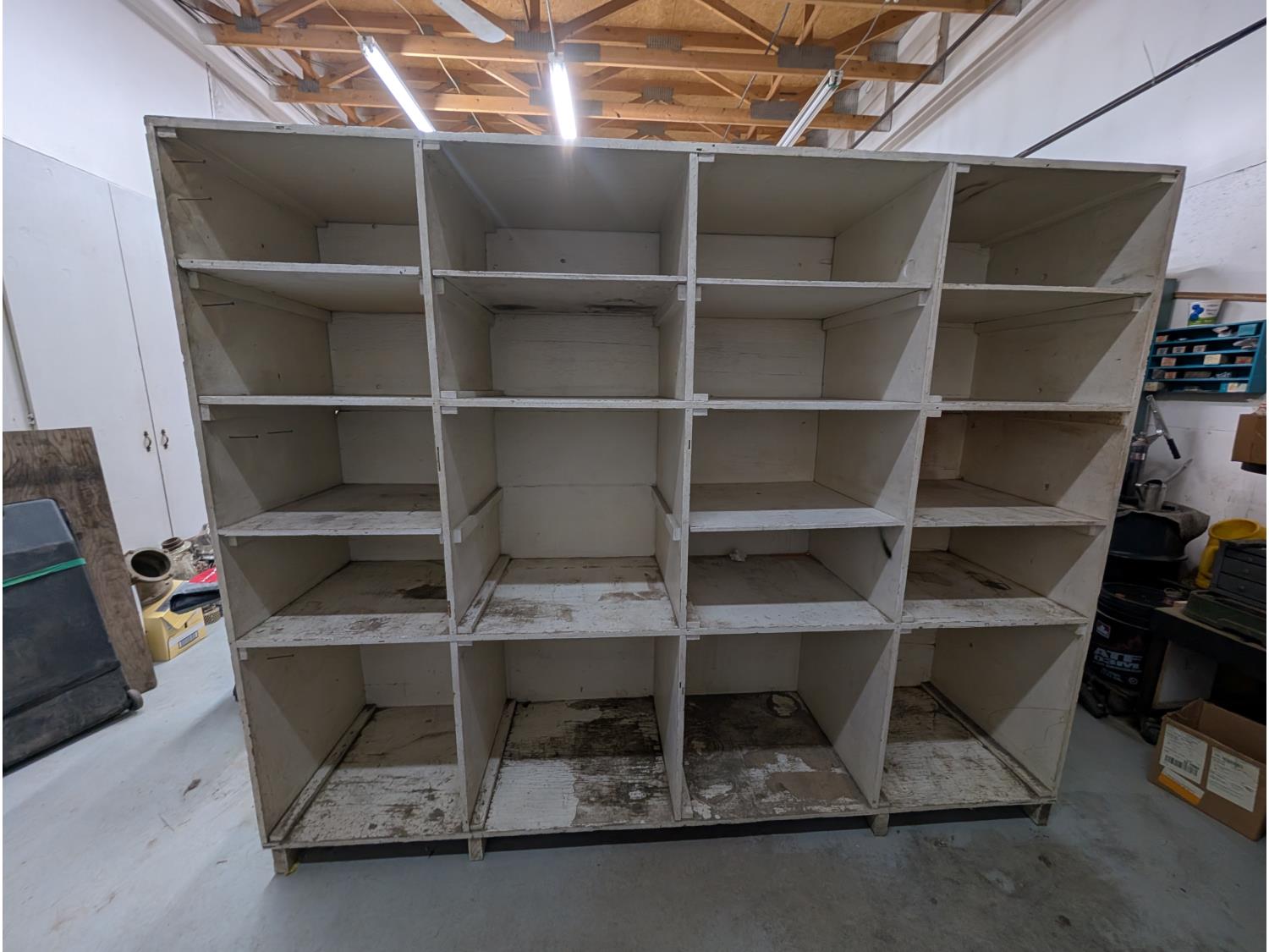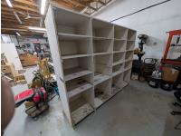 96 inch L x 24 inch W x 77 inch T, includes adjustable shelving on backside
