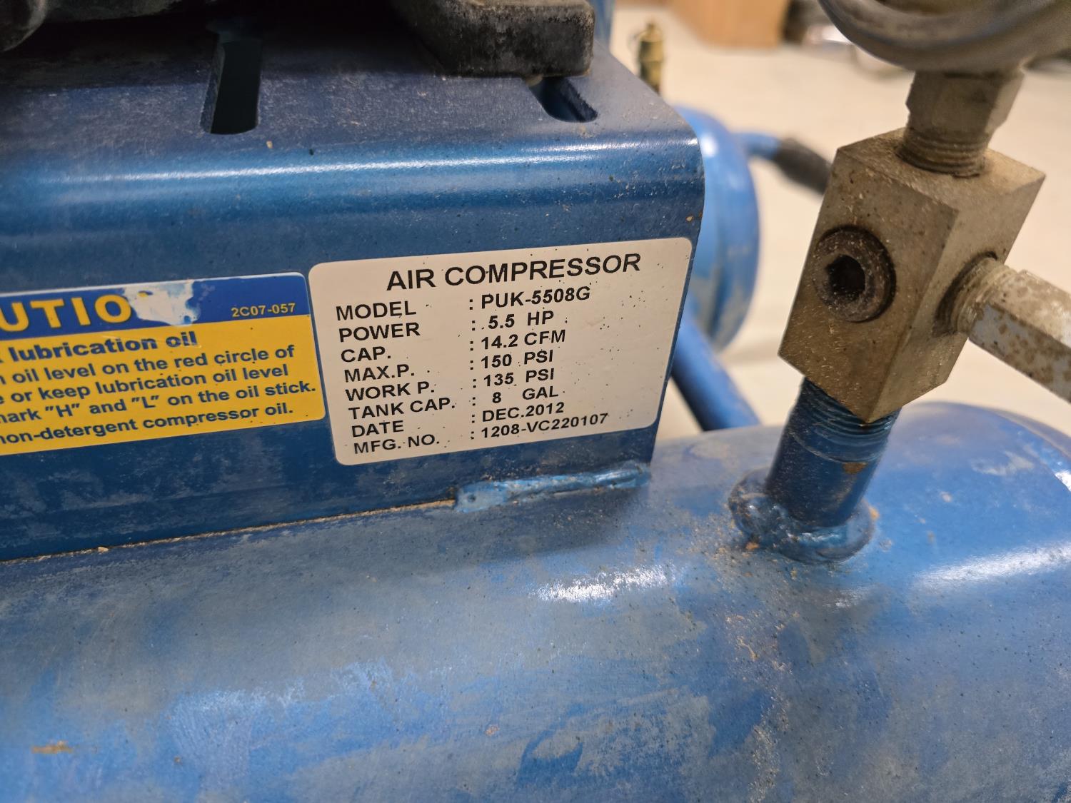1191 2012 Omega PUK-5508G 8 Gallon Air Compressor