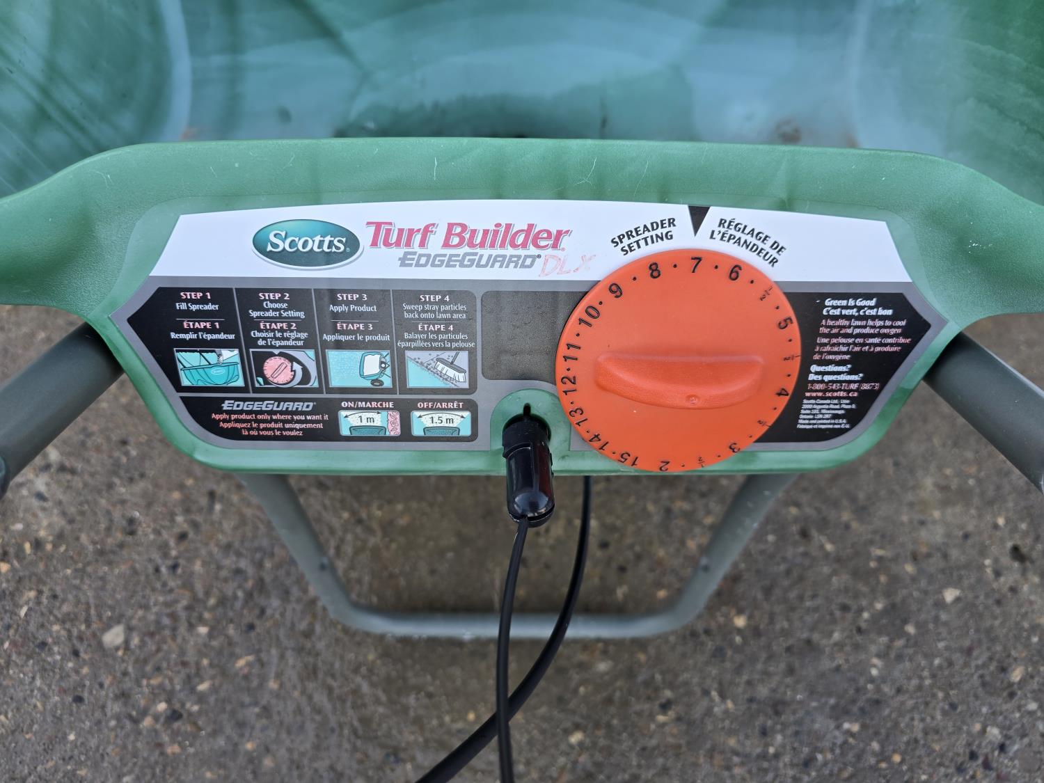 (1) 23 inch W lawn roller, (1) 24 inch W lawn roller, Scotts DLX Turf Builder broadcast spreader