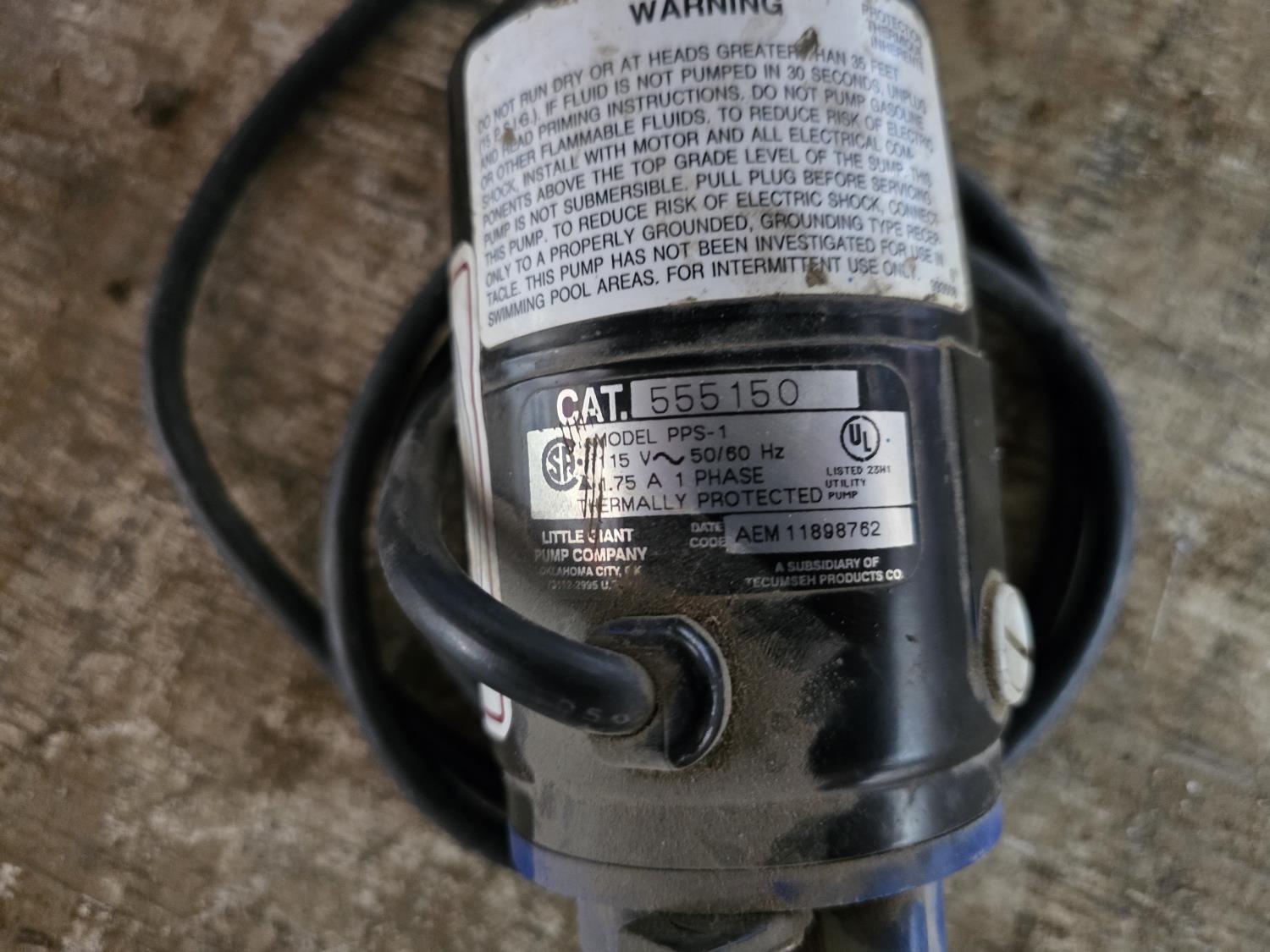 1386 Qty of (2) Little Giant Submersible Pumps w/ Little Giant Transfer Pump