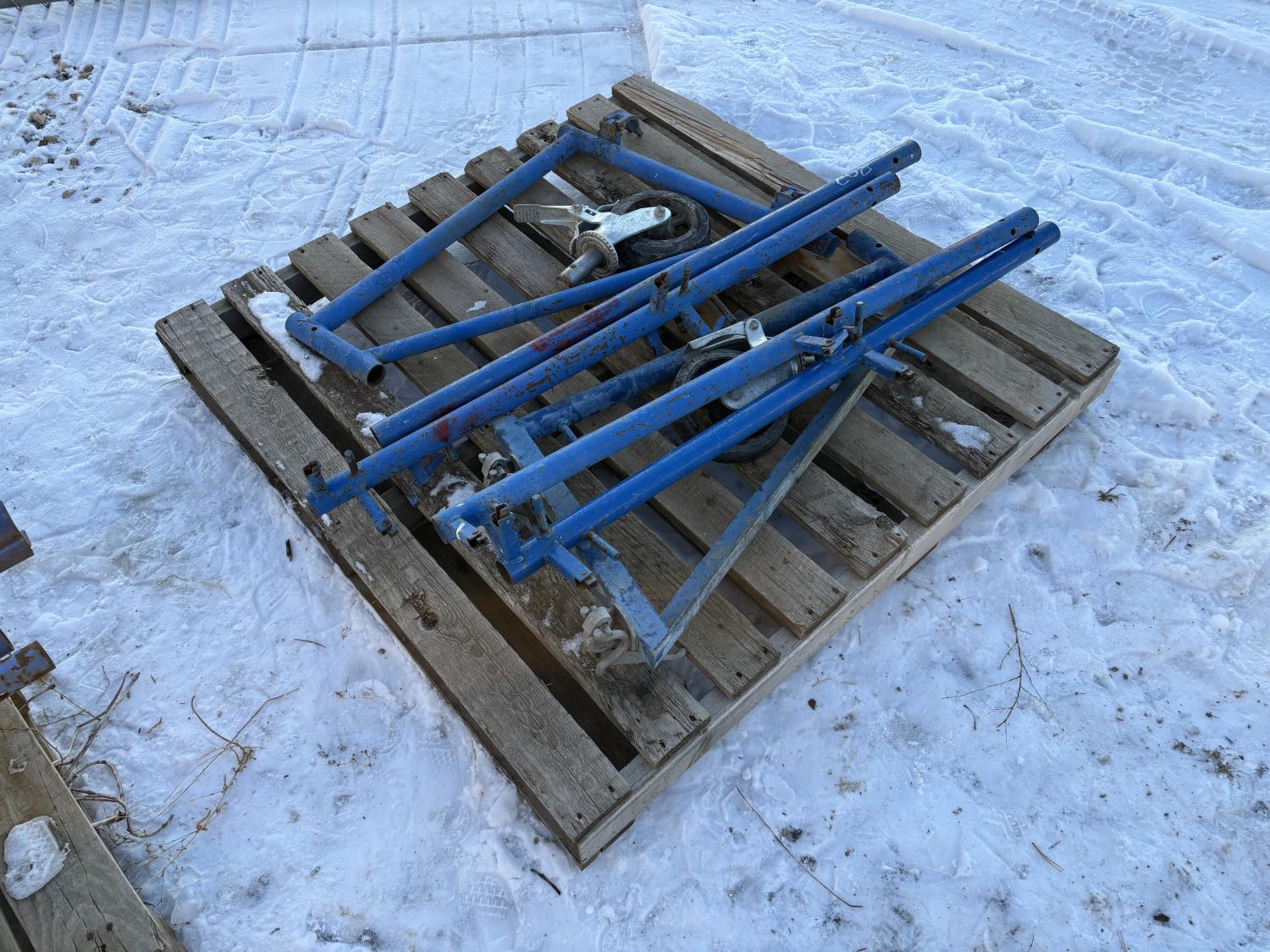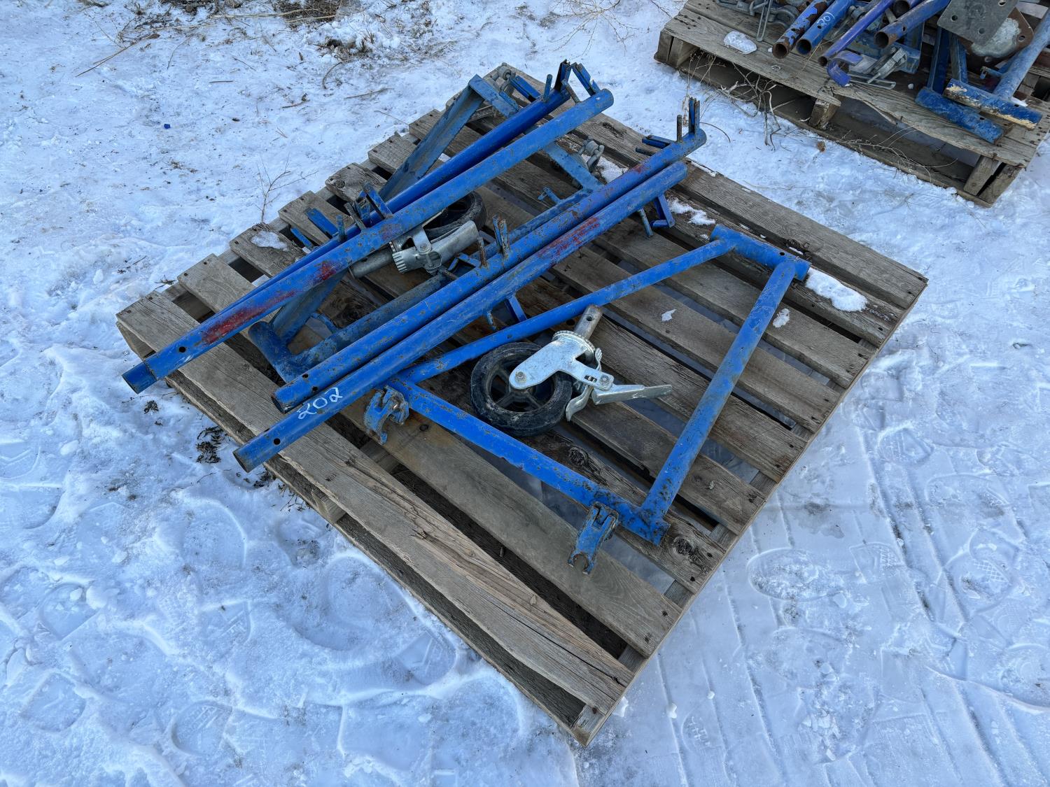 (2) outriggers, (2) caster wheels, (4) railing posts
