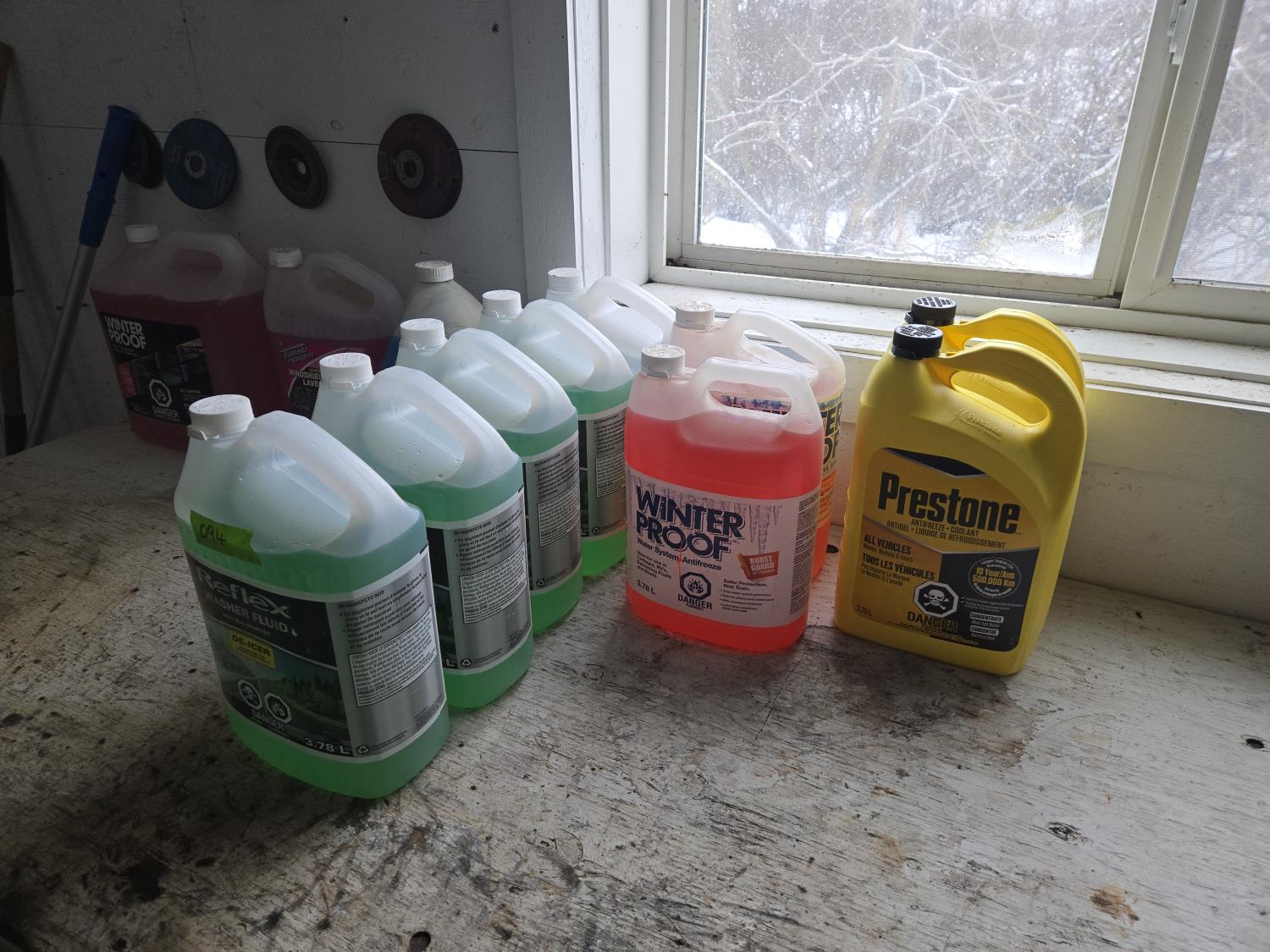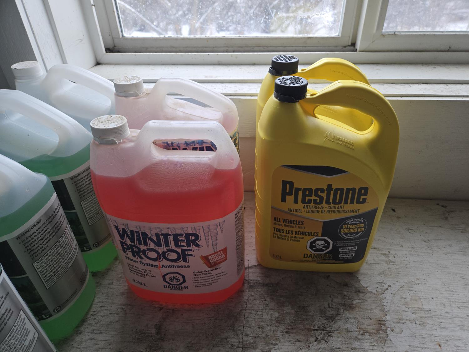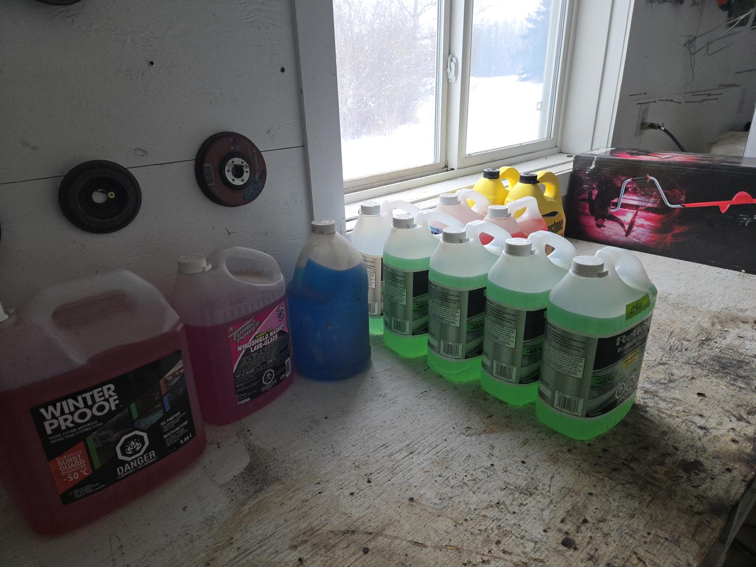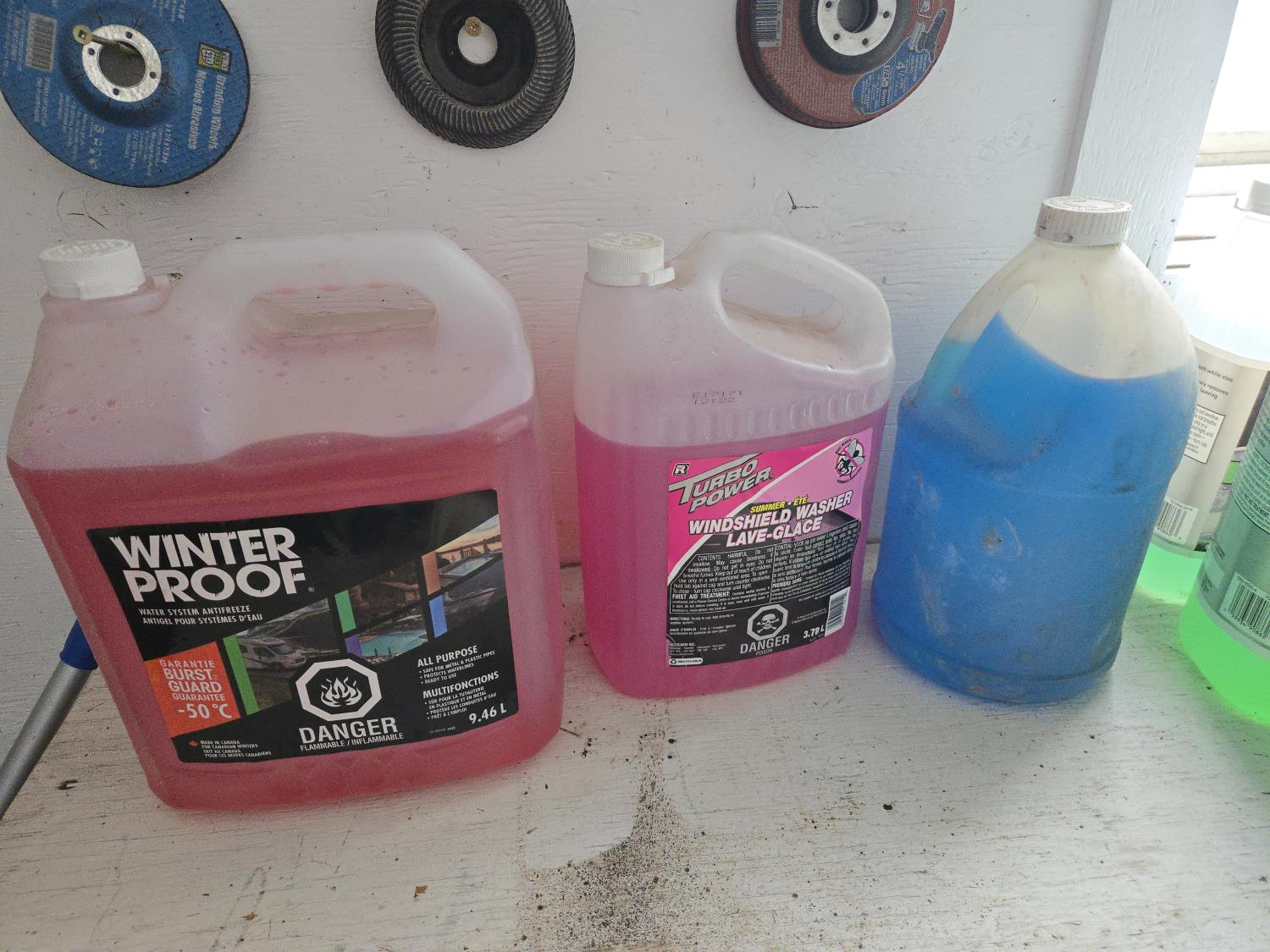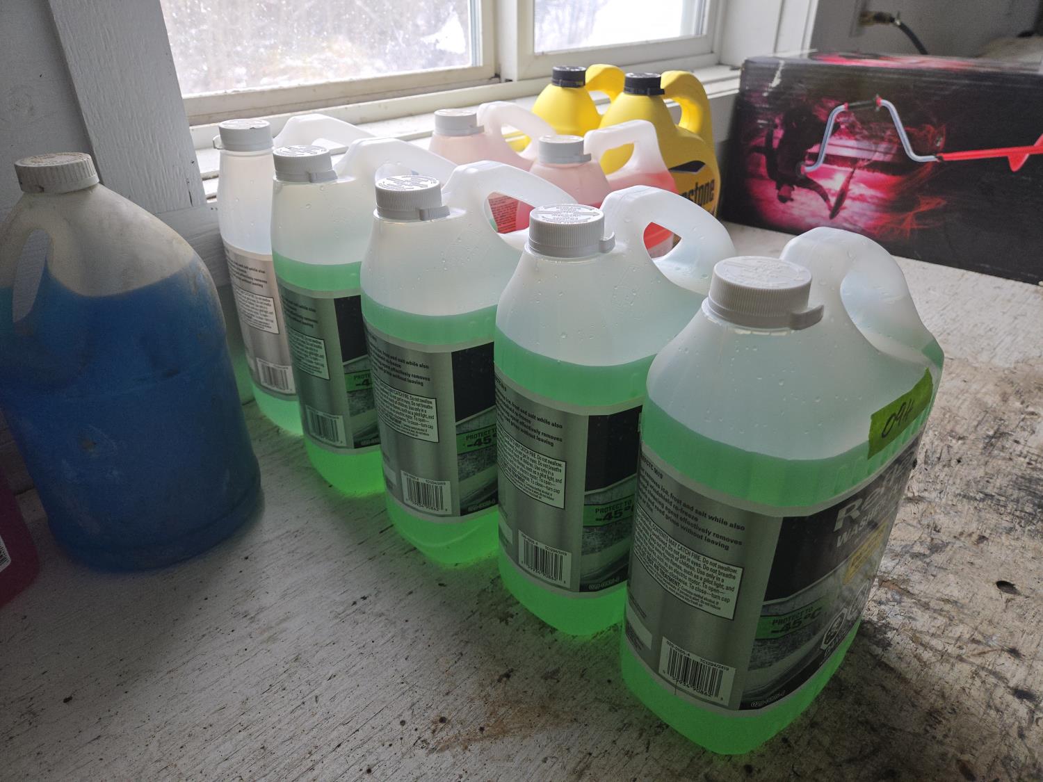 a couple of the windshield antifreeze are opened and partly used
