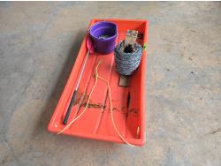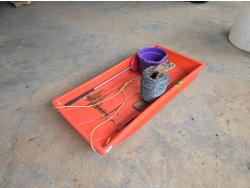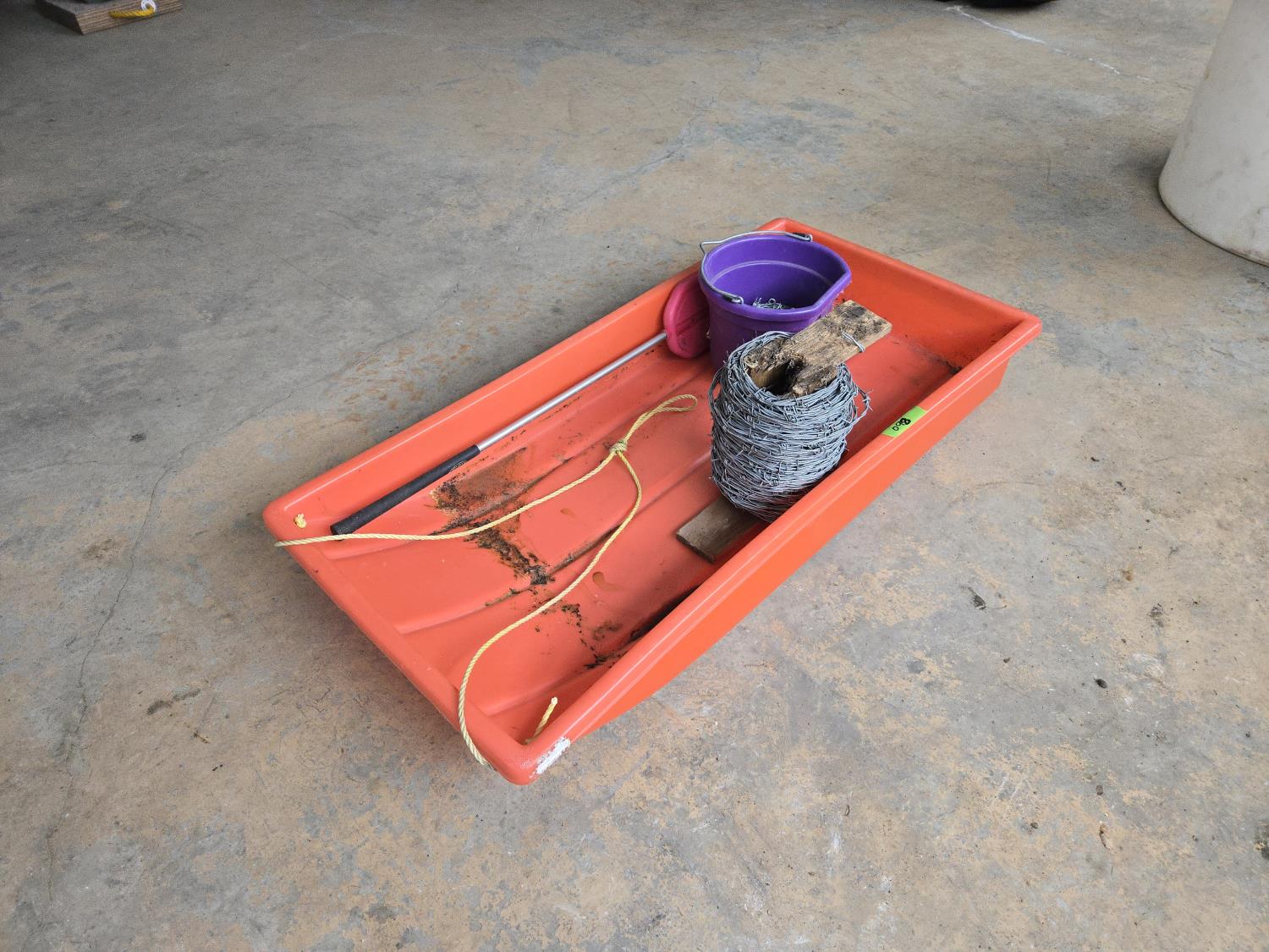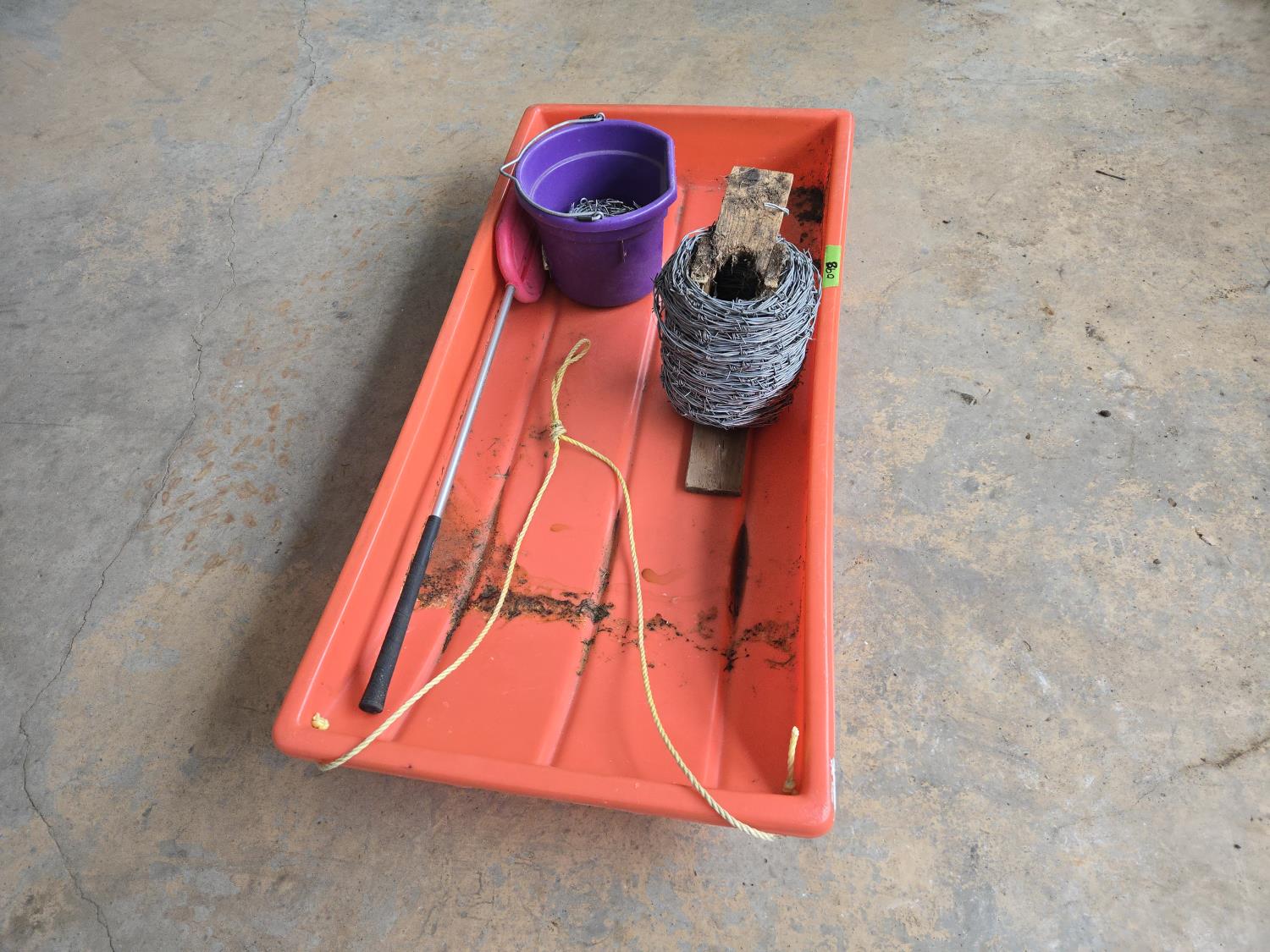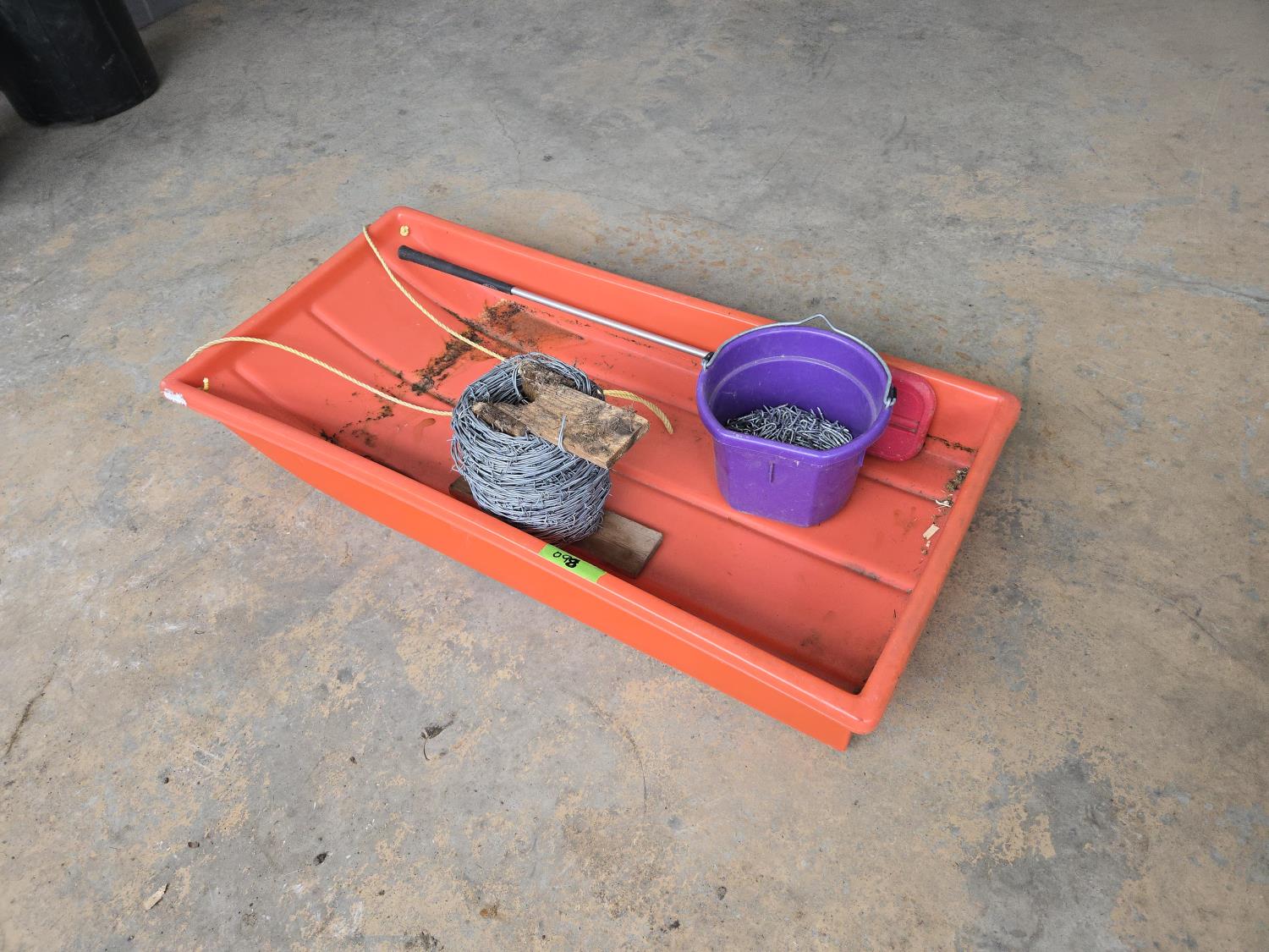 865 48 Inch Calf Sleigh, Cattle Paddle, Barb Wire & Fencing Staples
