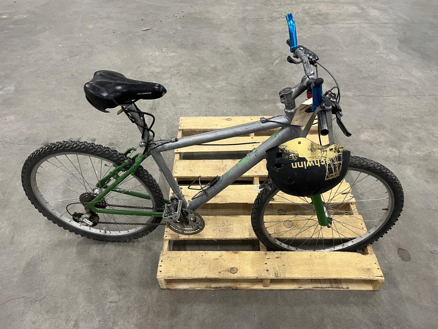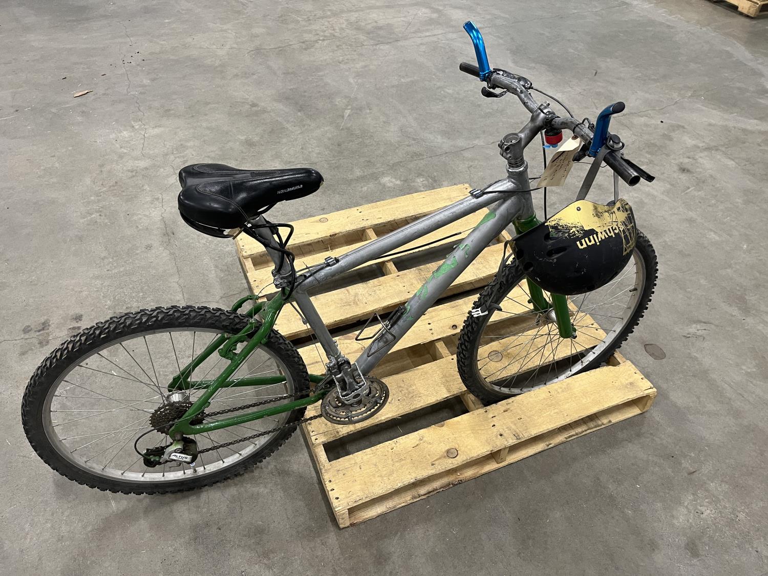 Black Revo Shift (18 Speed), Red Raleigh 6061 (Tire/Seat off), Blue Columbia Mazeno, Silver/Green Racing Handles With Helmet